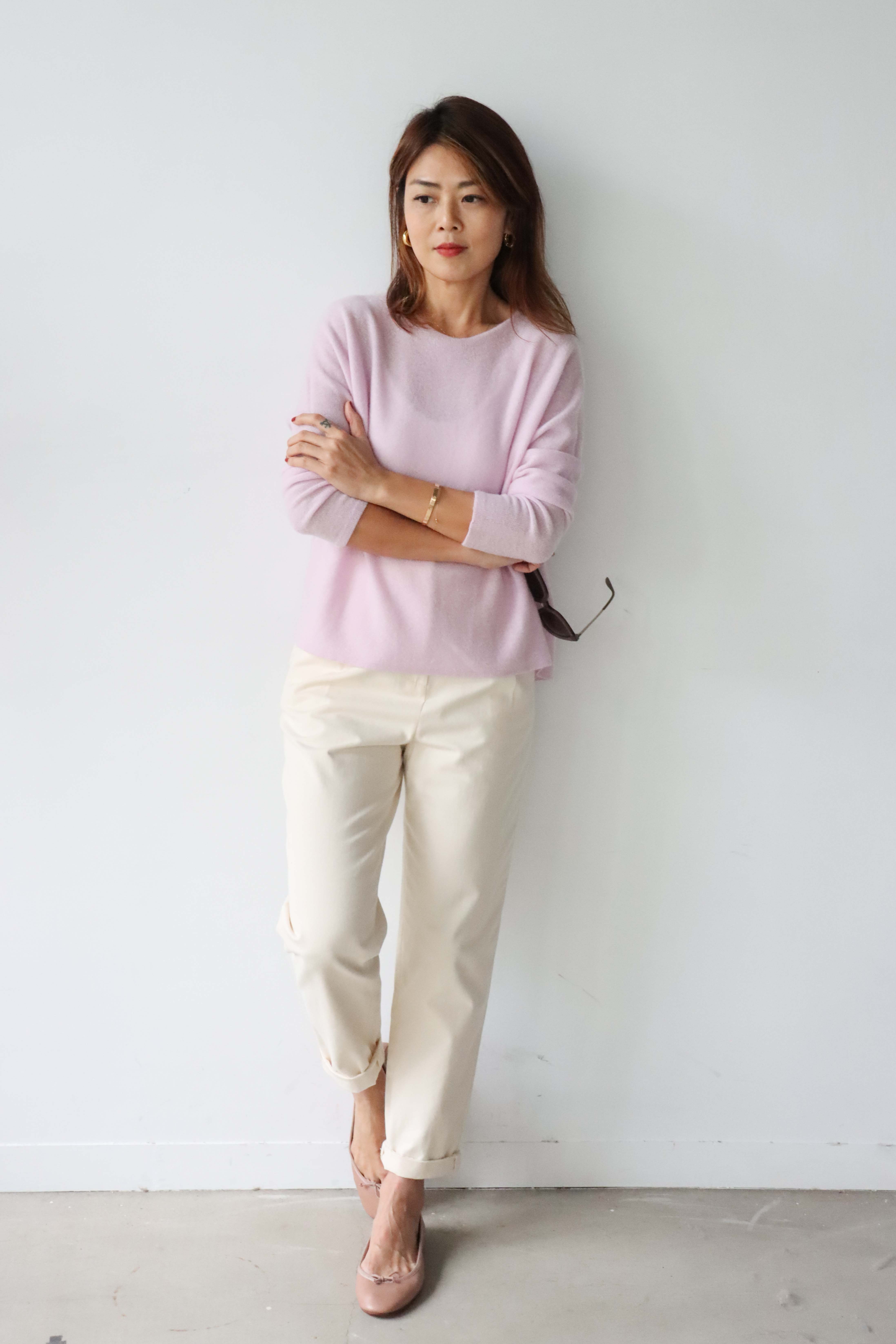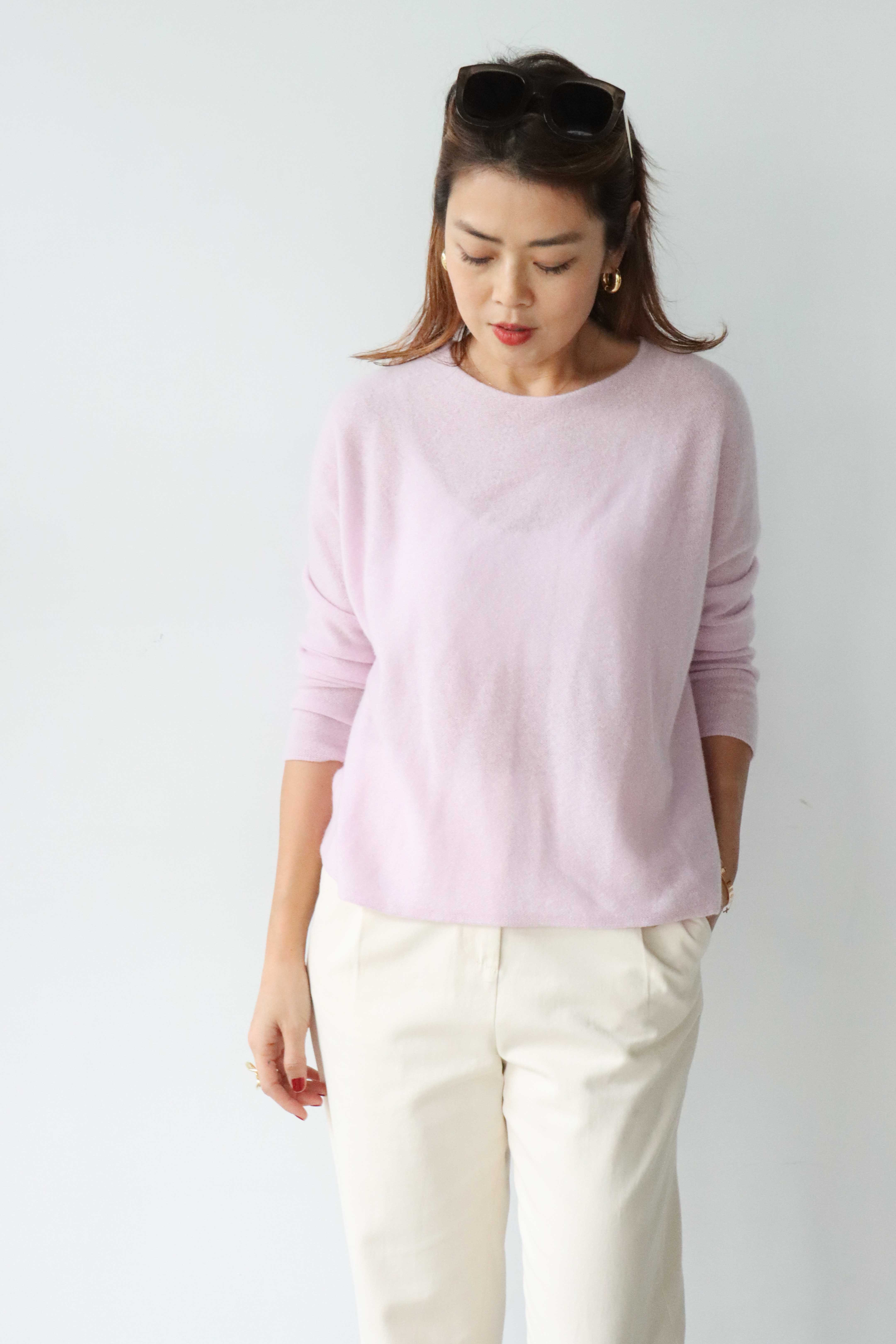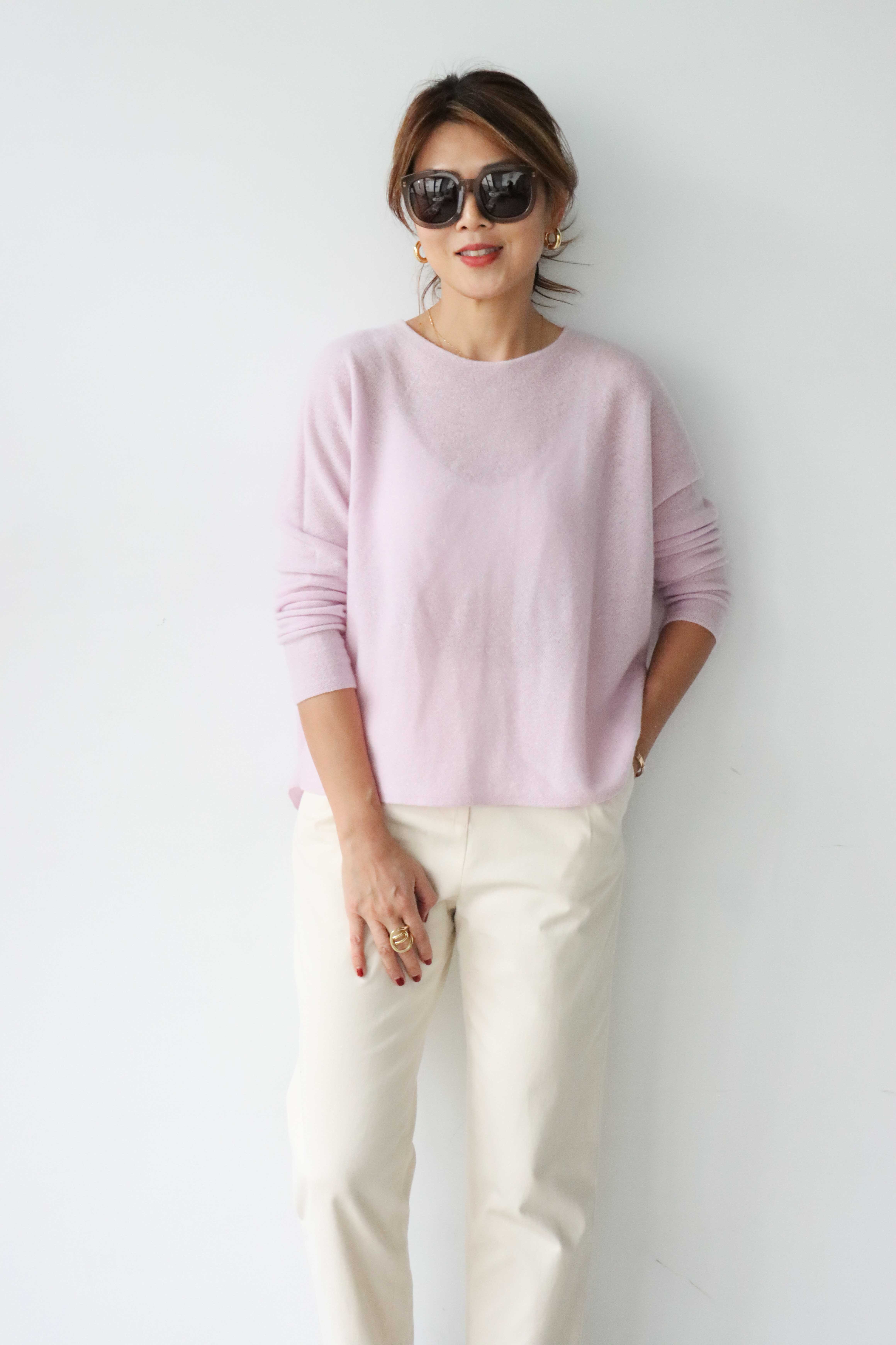 輕盈柔軟,細膩的織法如棉花糖般的柔軟,重量如羽毛般輕盈, 極簡Cashmere毛衣,肌膚貼著單穿,就能感受到那百分之一百的溫柔觸感。