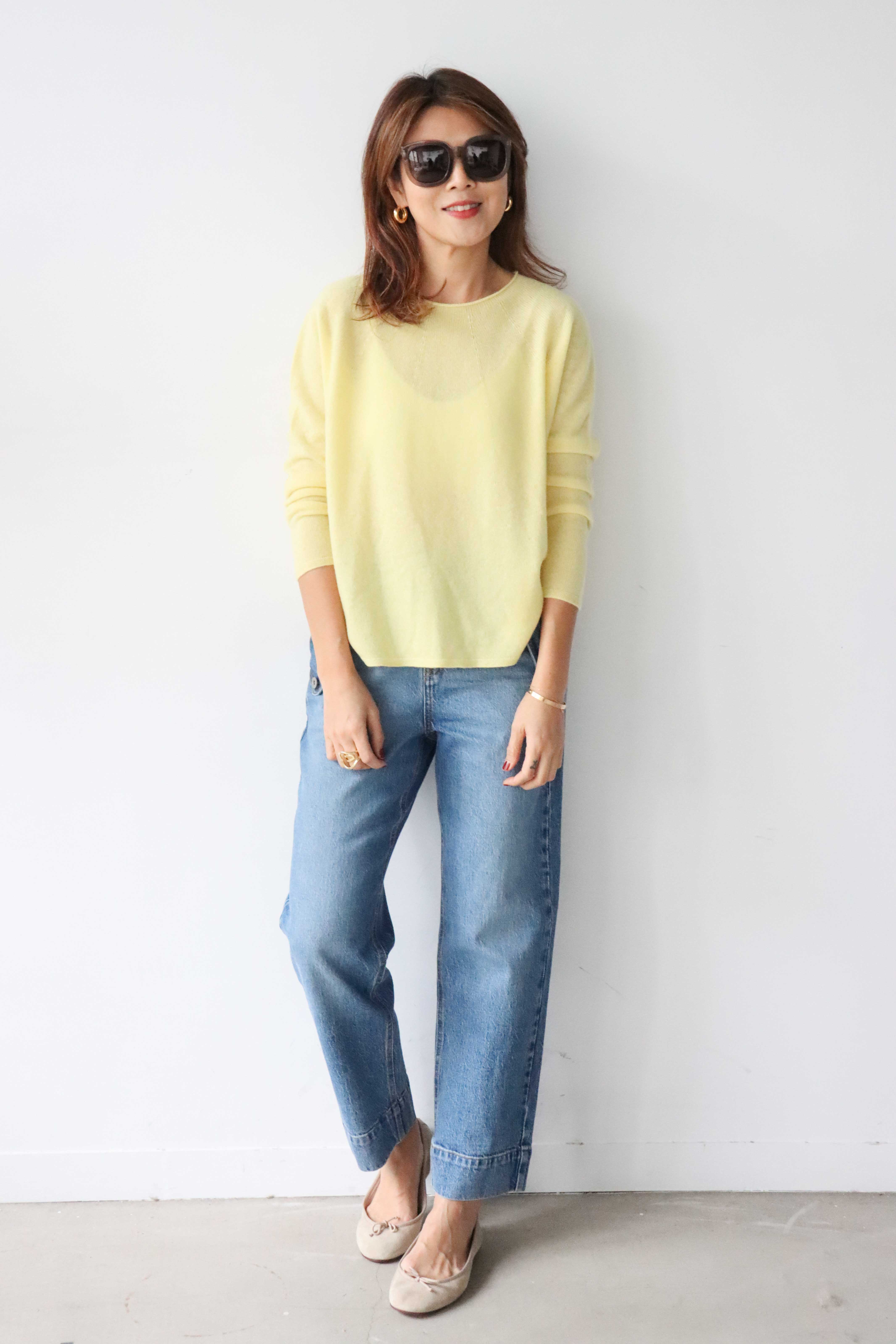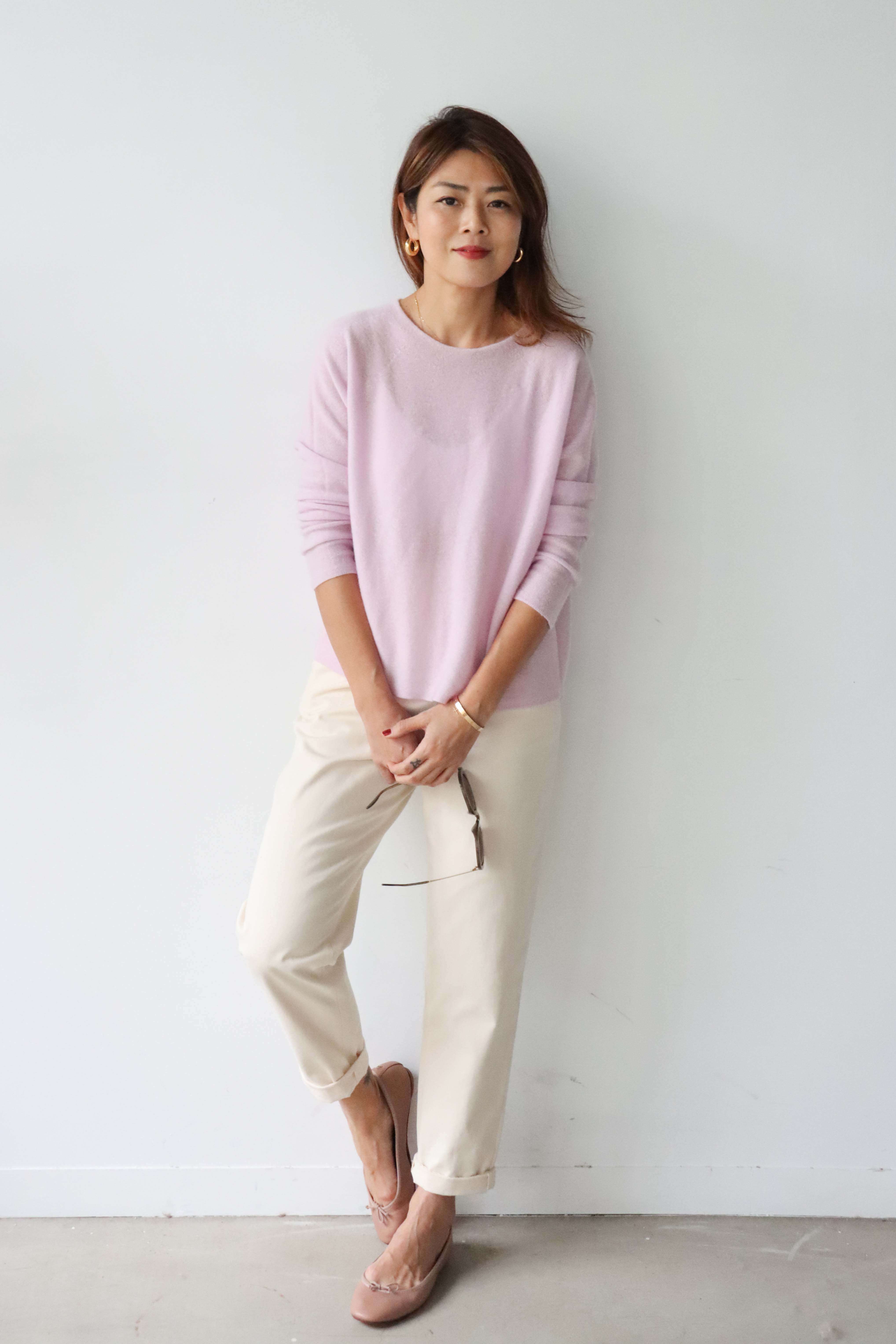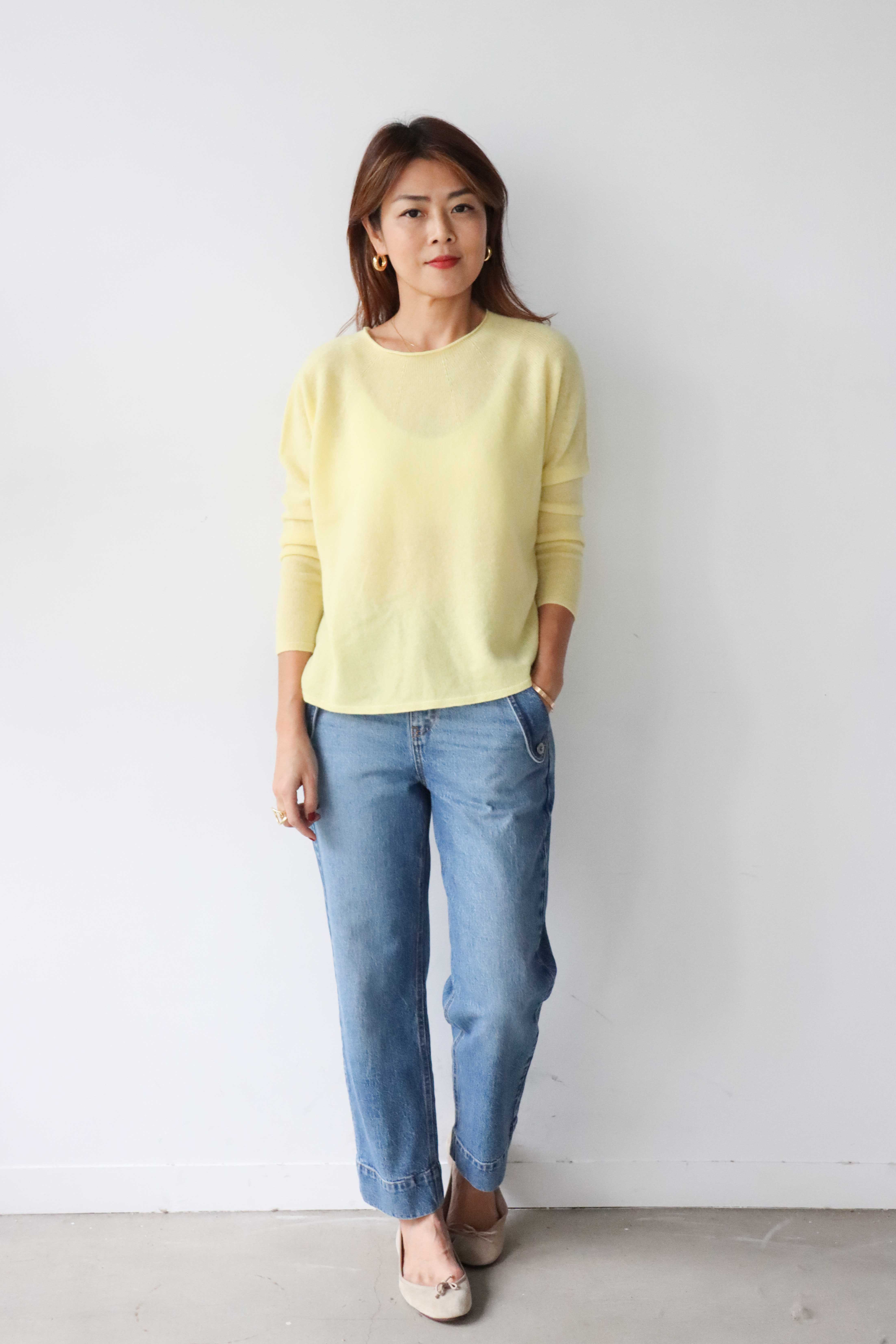 輕盈柔軟,細膩的織法如棉花糖般的柔軟,重量如羽毛般輕盈, 極簡Cashmere毛衣,肌膚貼著單穿,就能感受到那百分之一百的溫柔觸感。