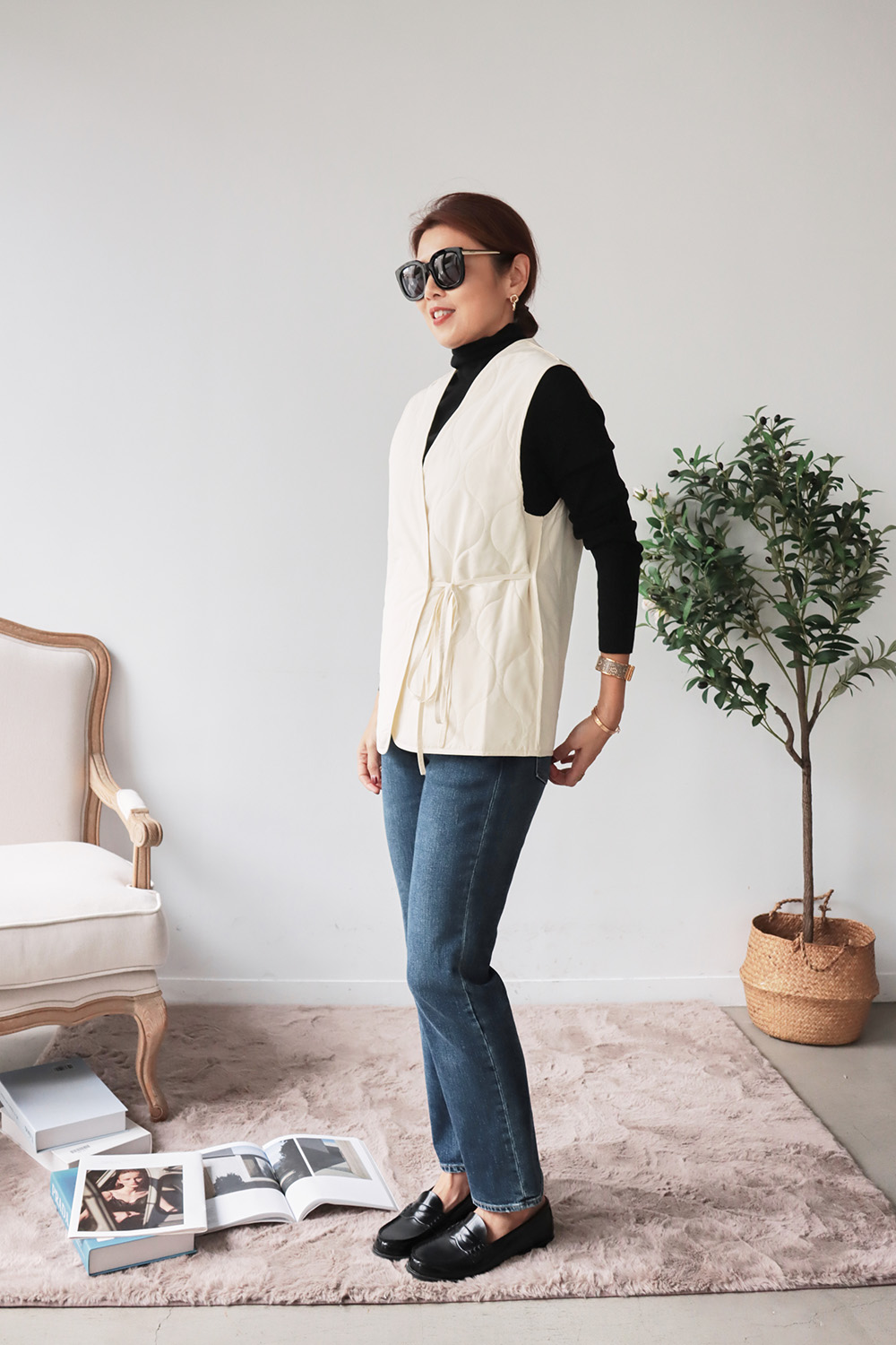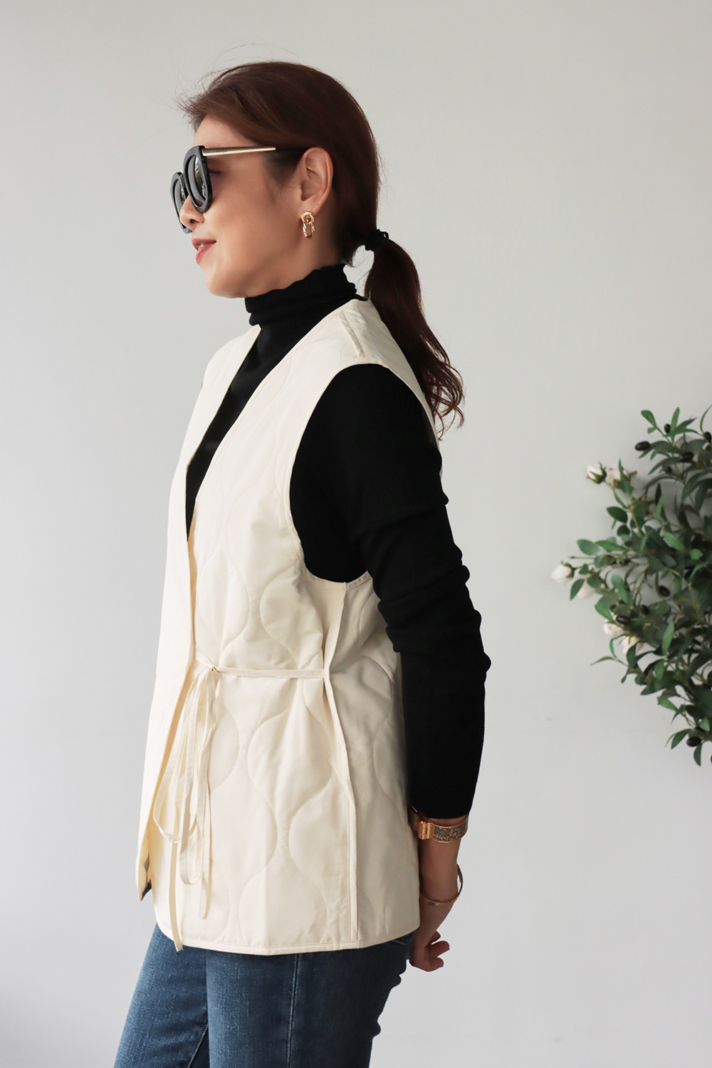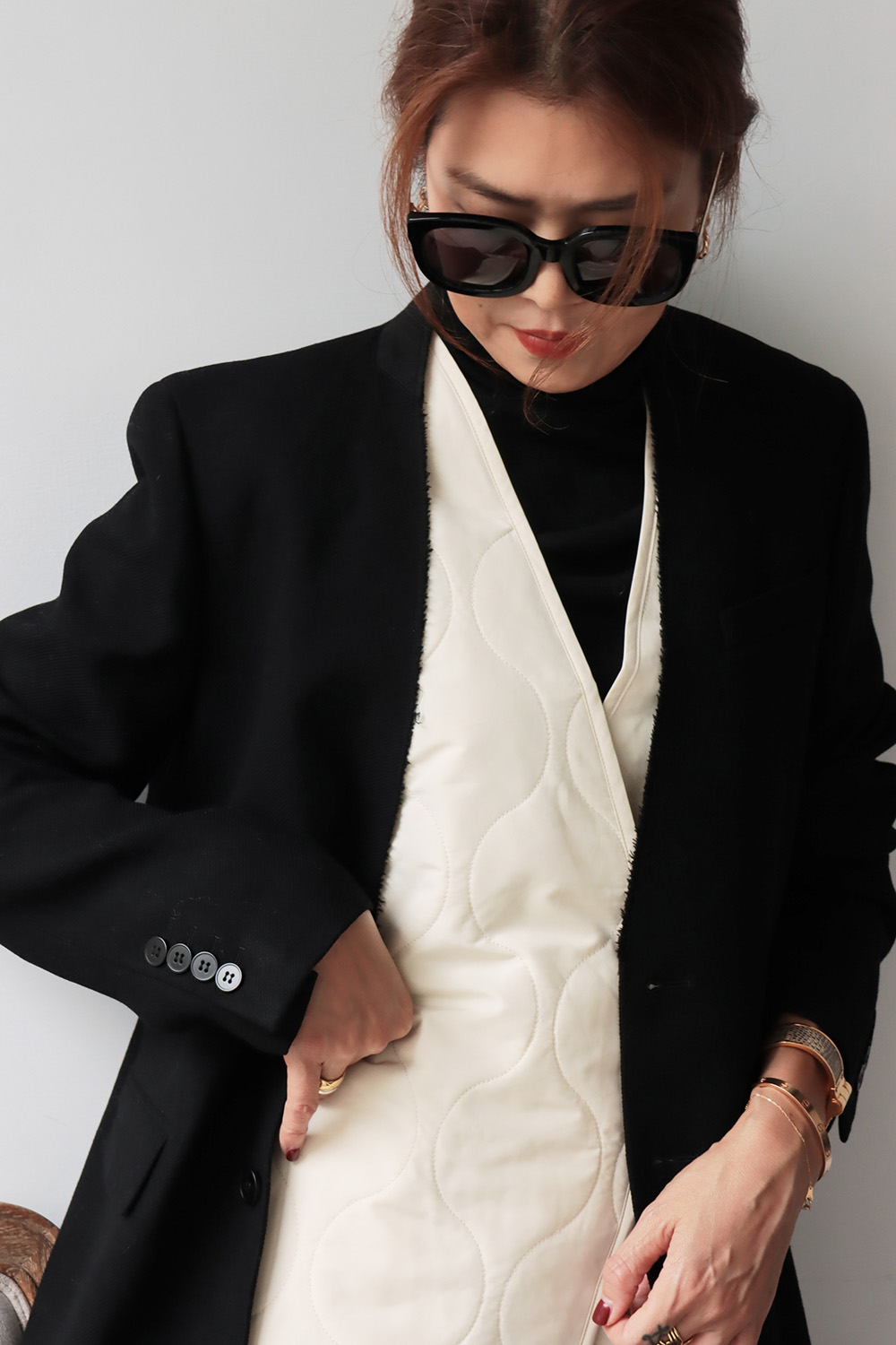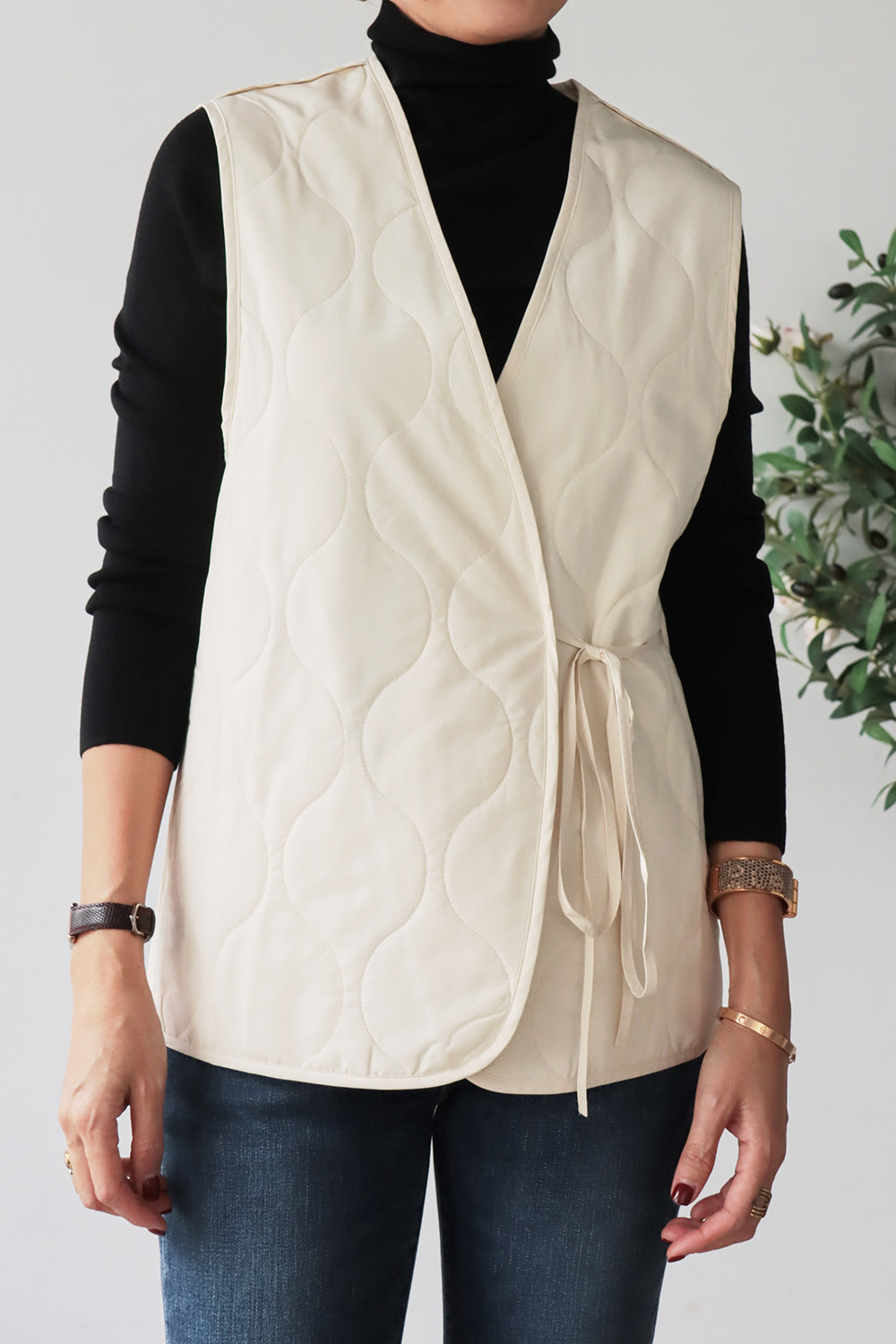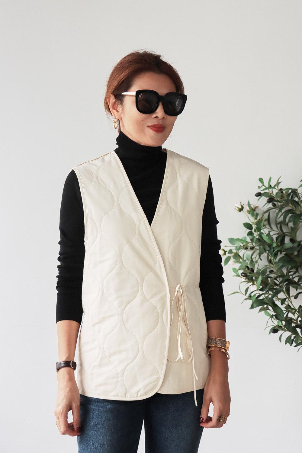 ・絎縫壓紋結合單側綁帶設計,創造豐富視覺層次,營造高級時尚感