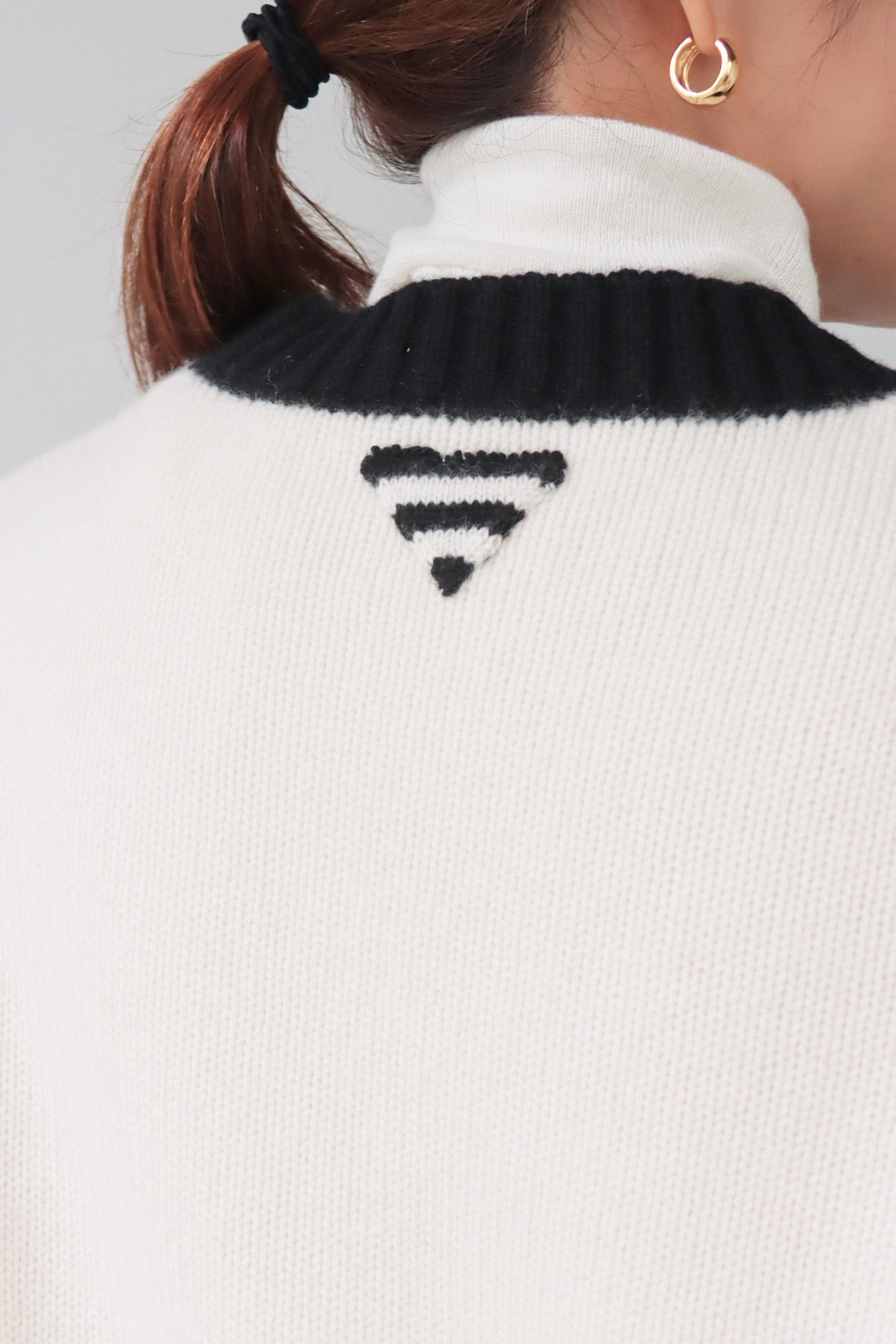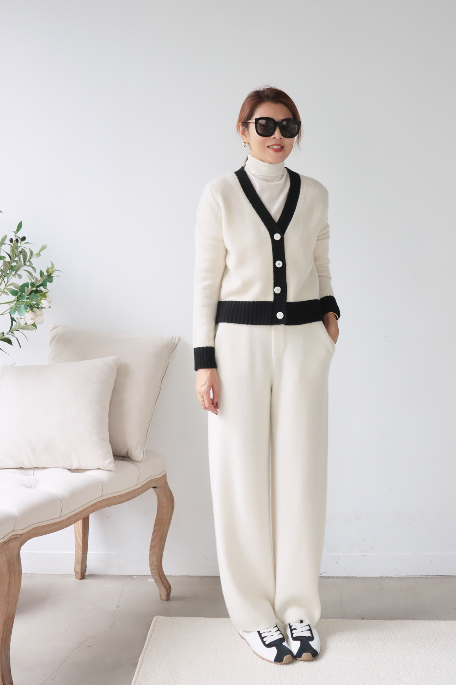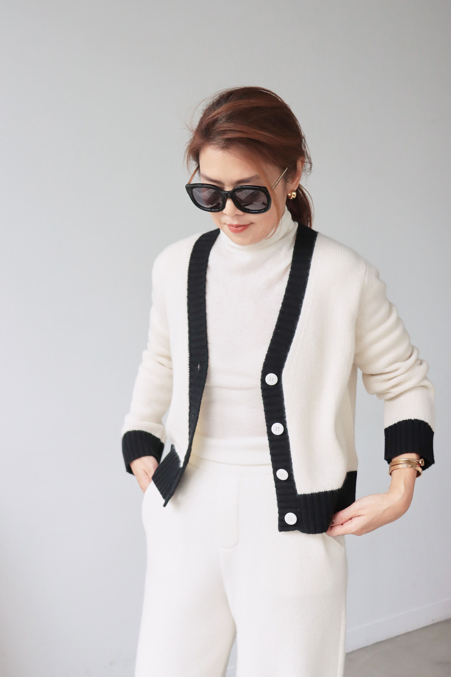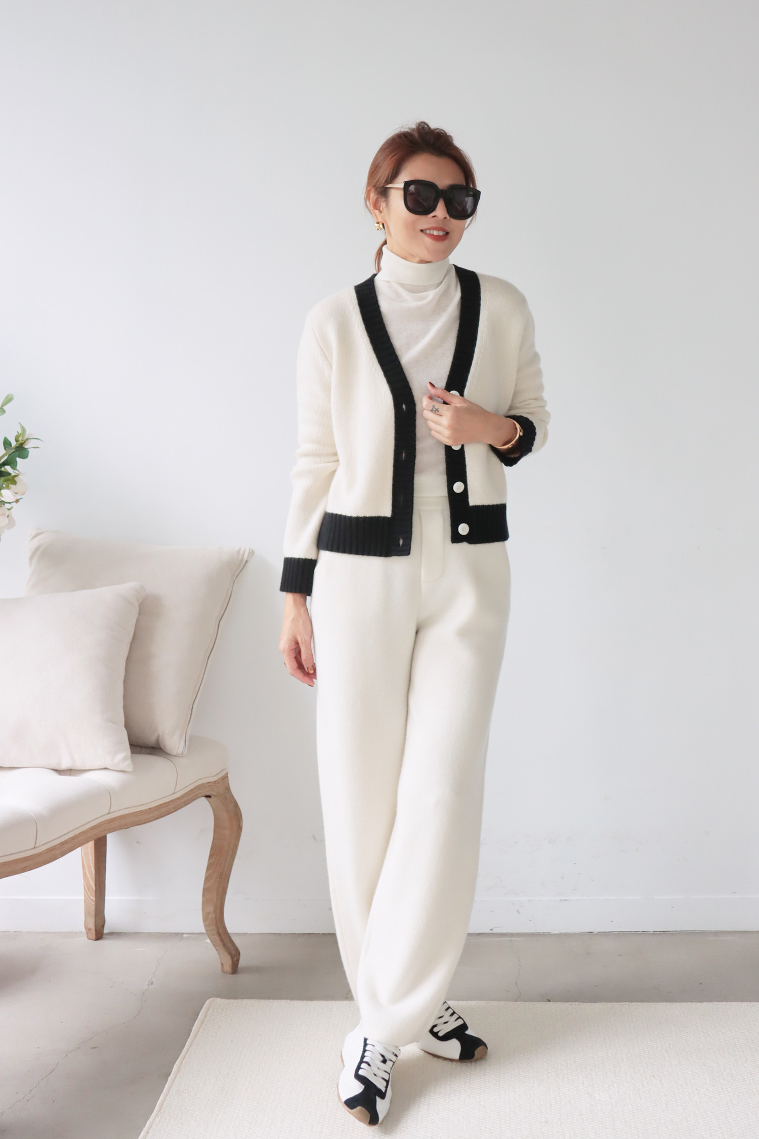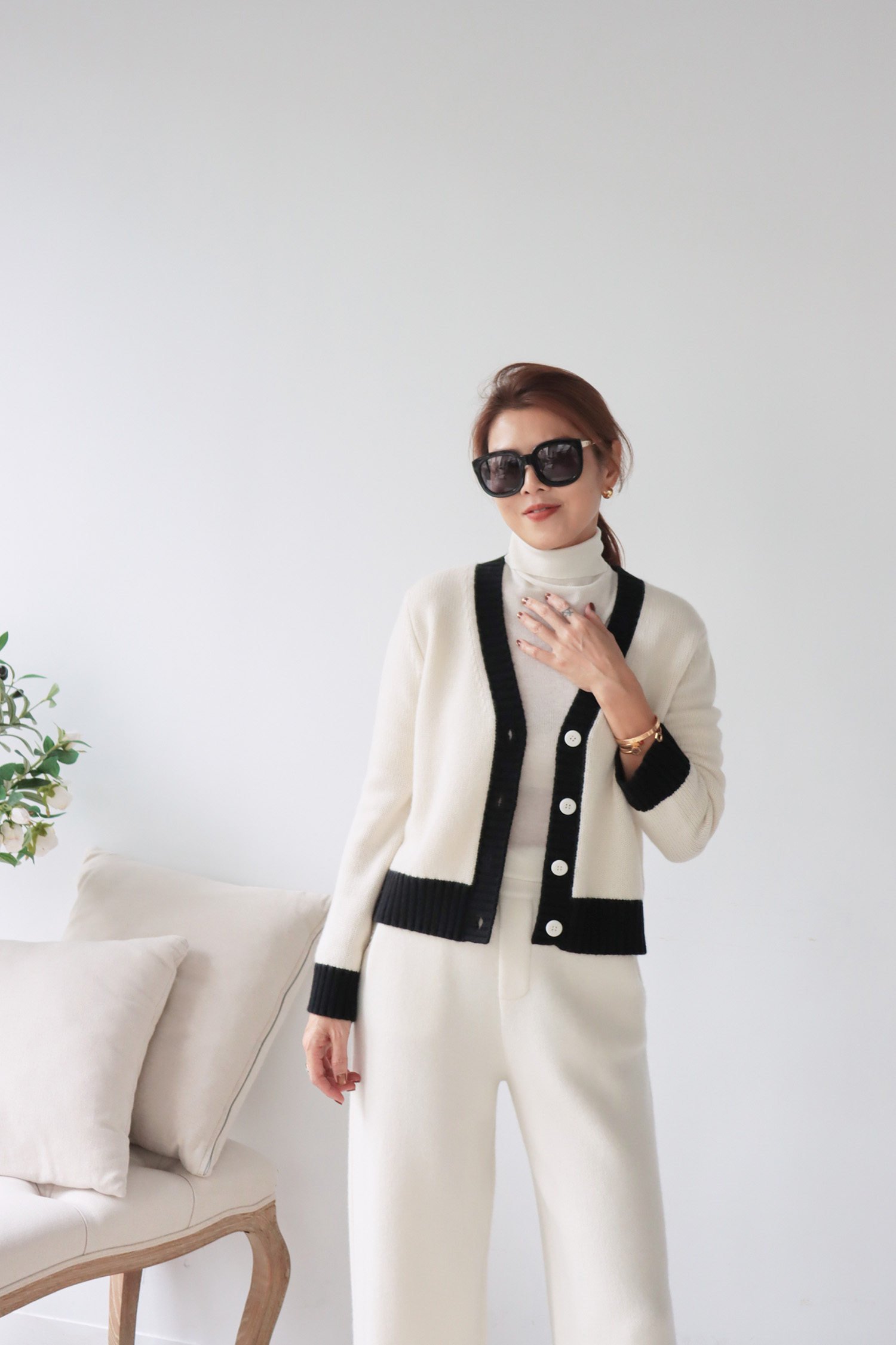 【搶先價】100% Cashmere 黑白撞色V領開襟衫 05010110