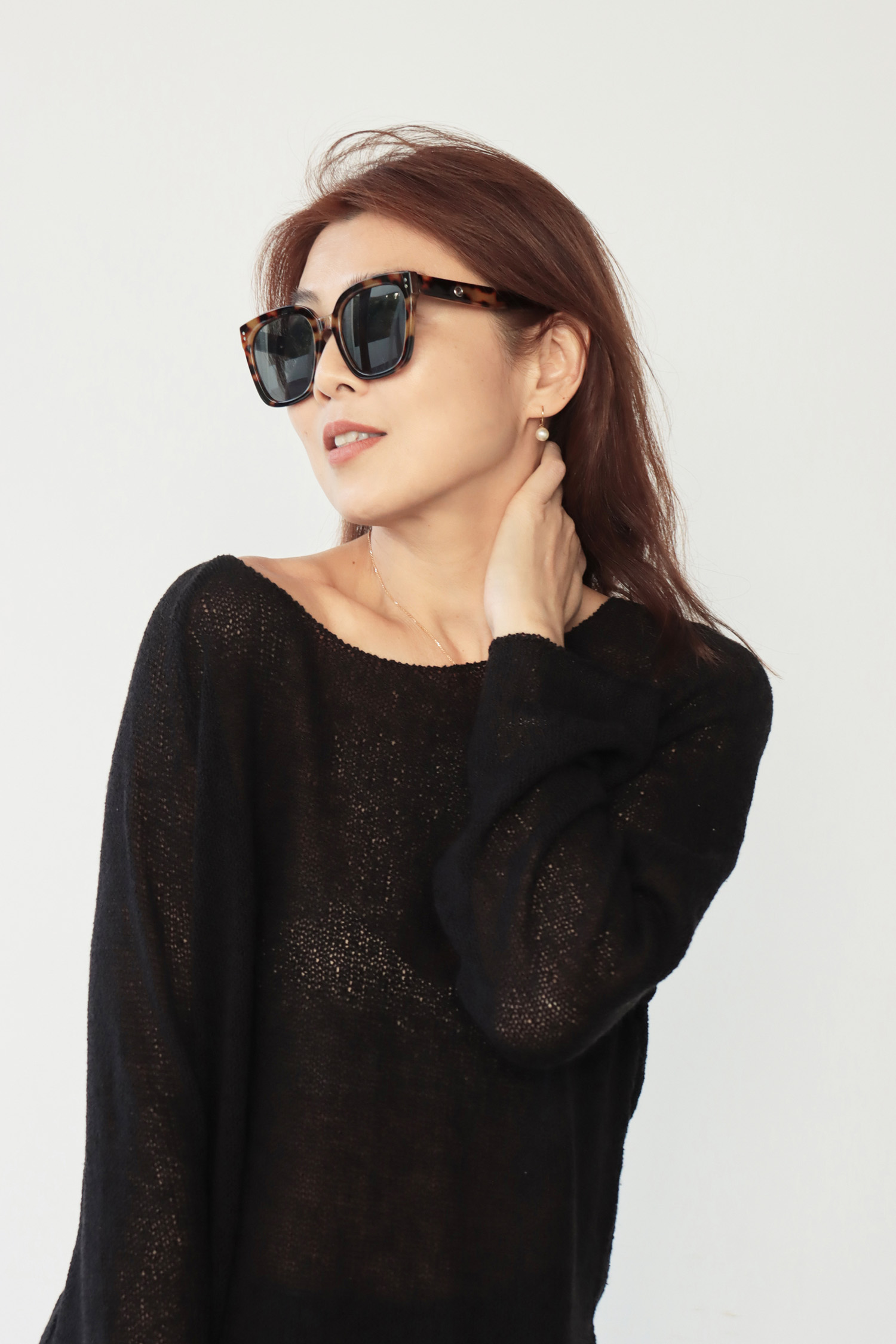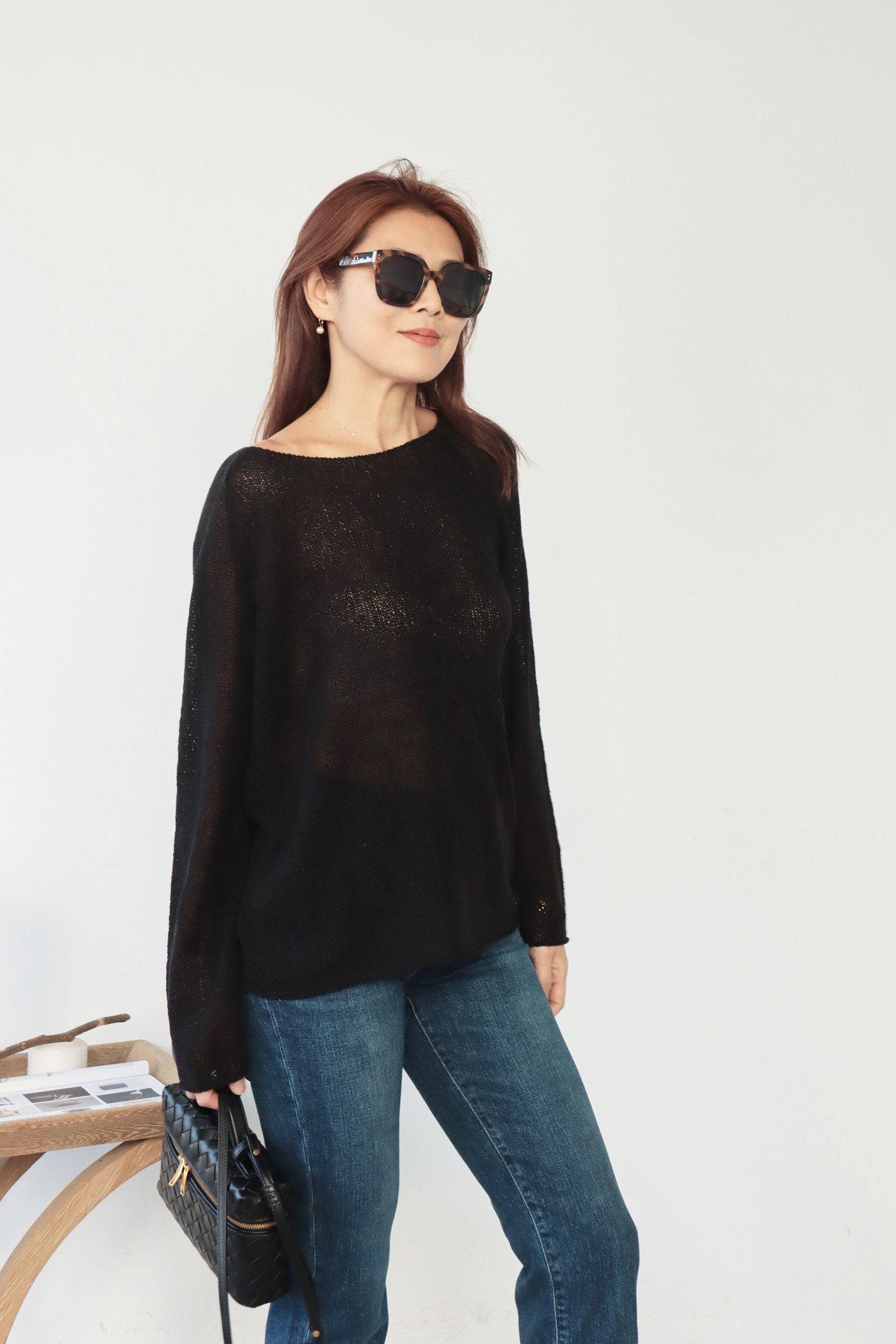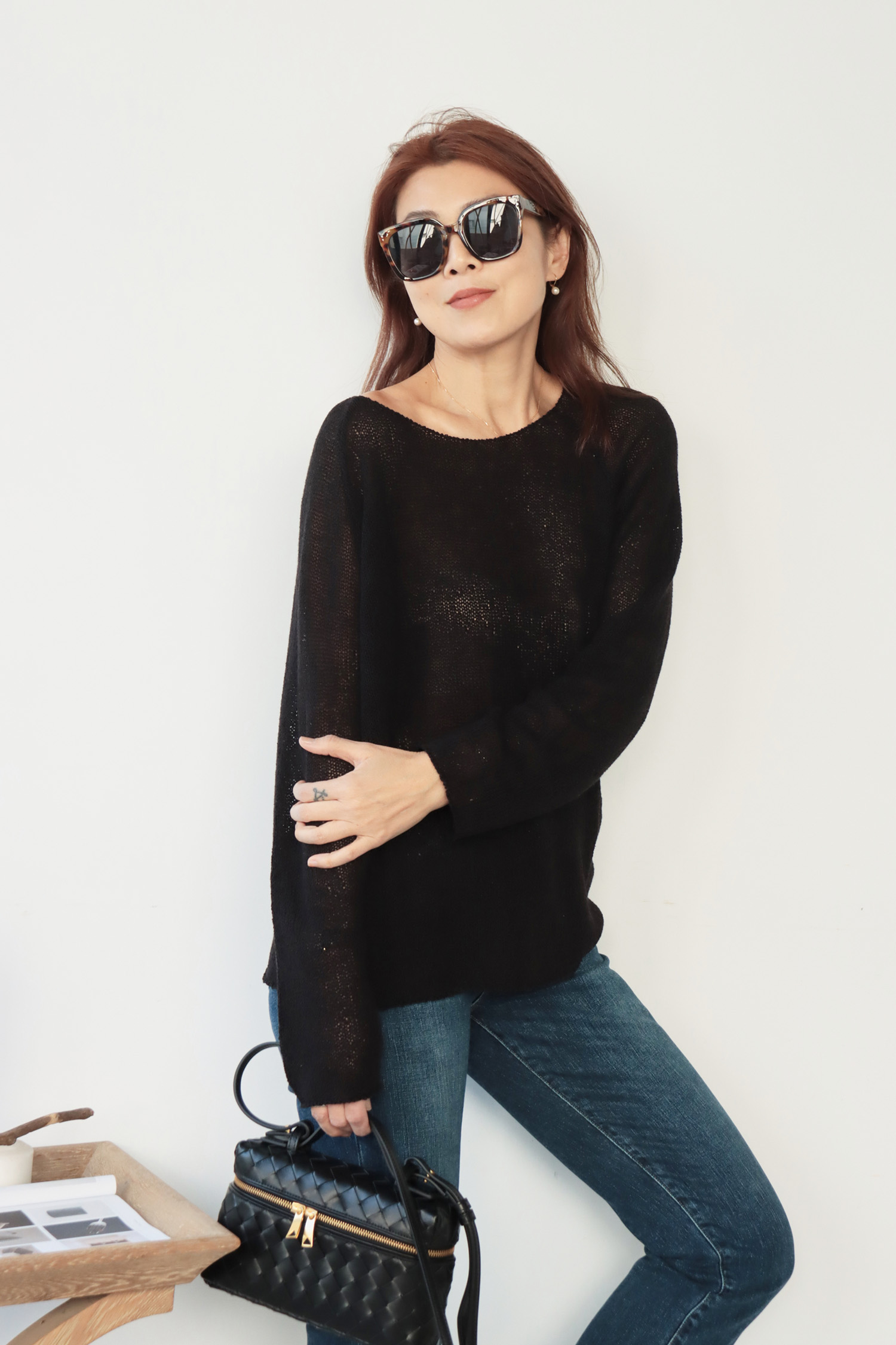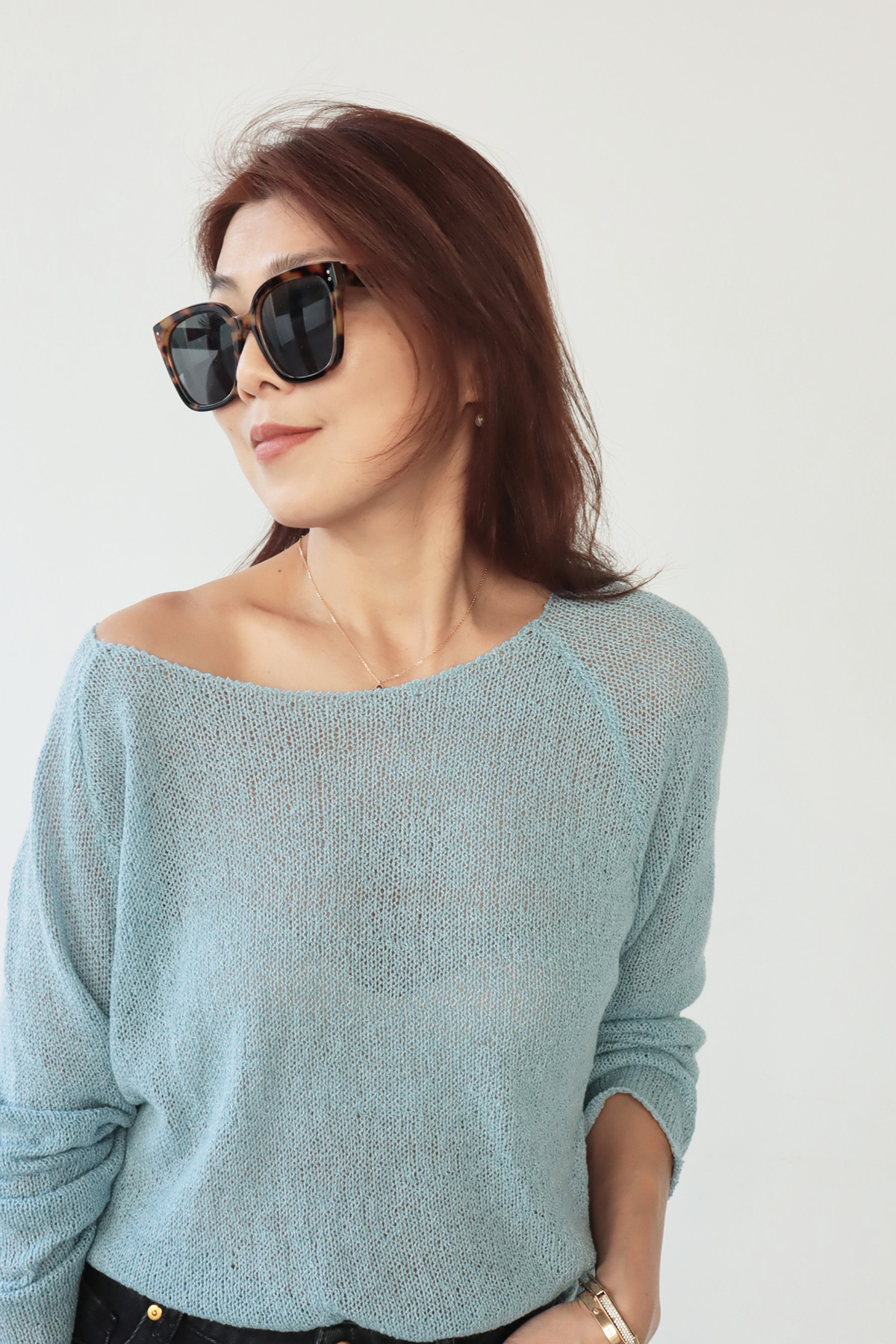 ・輕盈針織面料帶來柔軟透氣的舒適感受,寬鬆版型不貼身提供自在活動空間,同時面料垂墜感佳輕鬆修飾身形曲線,微鏤空細節展現恰到好處的透肌感,增添層次與女人味,讓造型更具視覺焦點;大U領設計既可正肩穿著,營造簡約俐落感,也可斜肩穿搭,展現微微性感與隨性魅力,適合多變的穿搭需求。