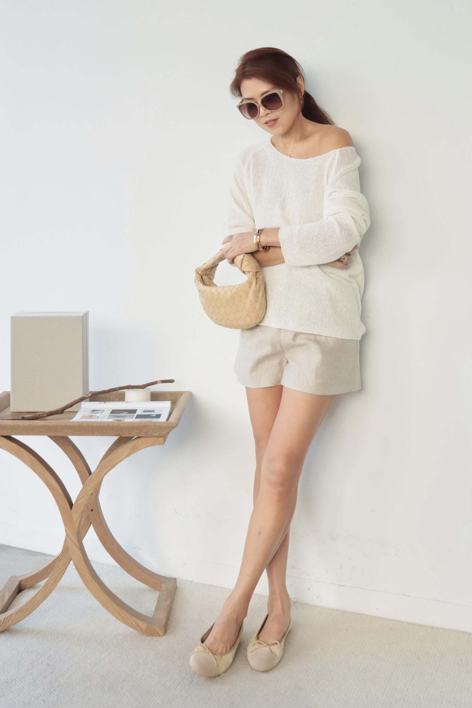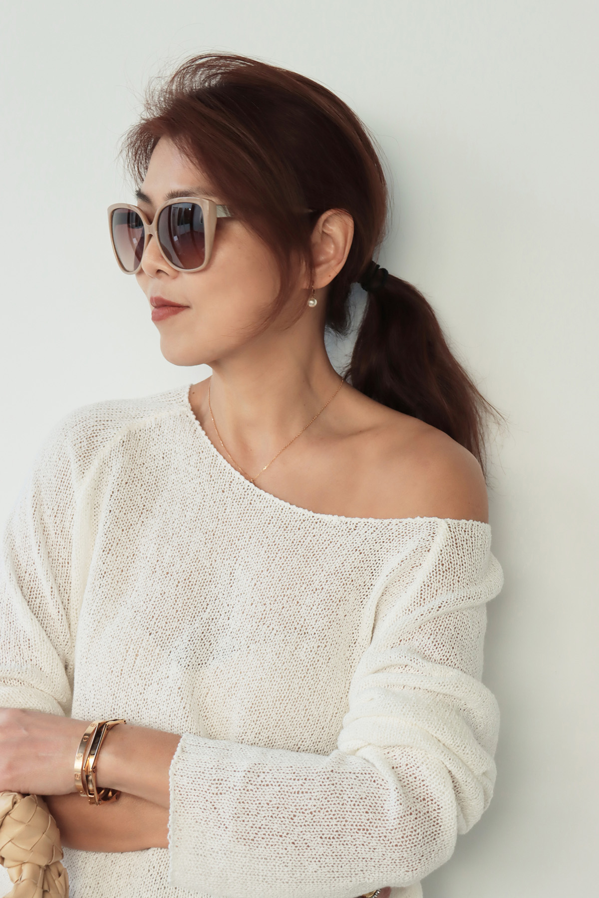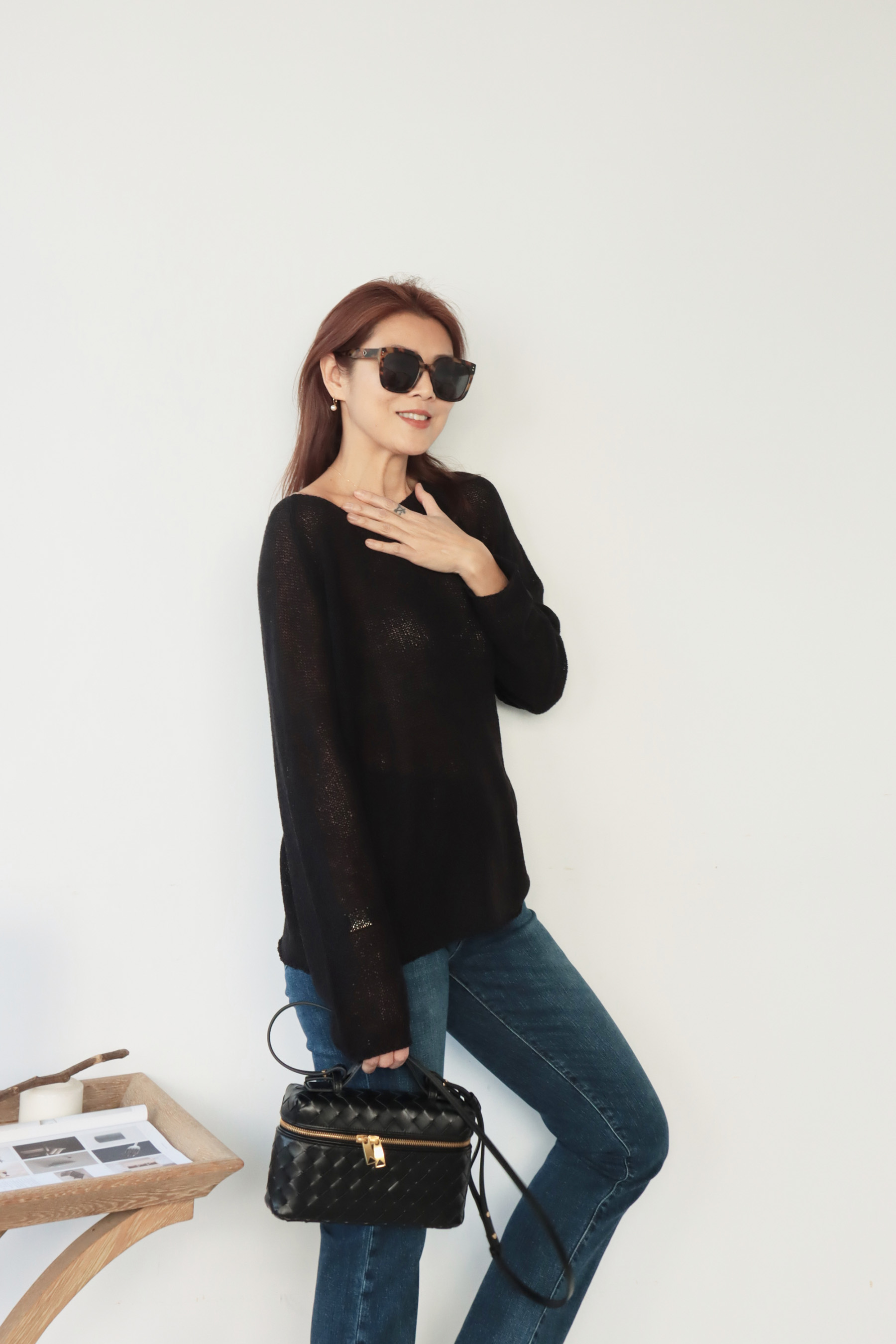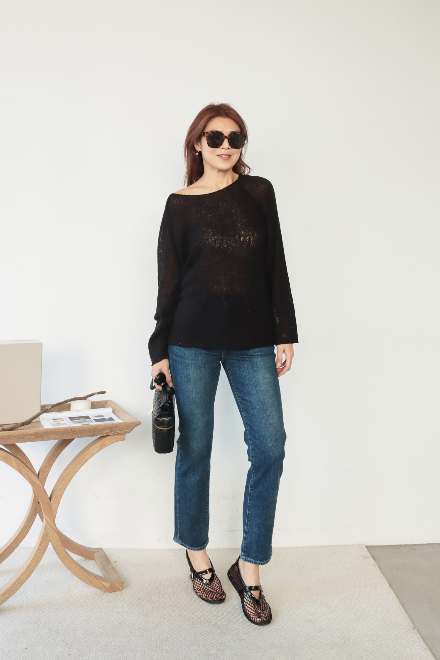 ・輕盈針織面料帶來柔軟透氣的舒適感受,寬鬆版型不貼身提供自在活動空間,同時面料垂墜感佳輕鬆修飾身形曲線,微鏤空細節展現恰到好處的透肌感,增添層次與女人味,讓造型更具視覺焦點;大U領設計既可正肩穿著,營造簡約俐落感,也可斜肩穿搭,展現微微性感與隨性魅力,適合多變的穿搭需求。