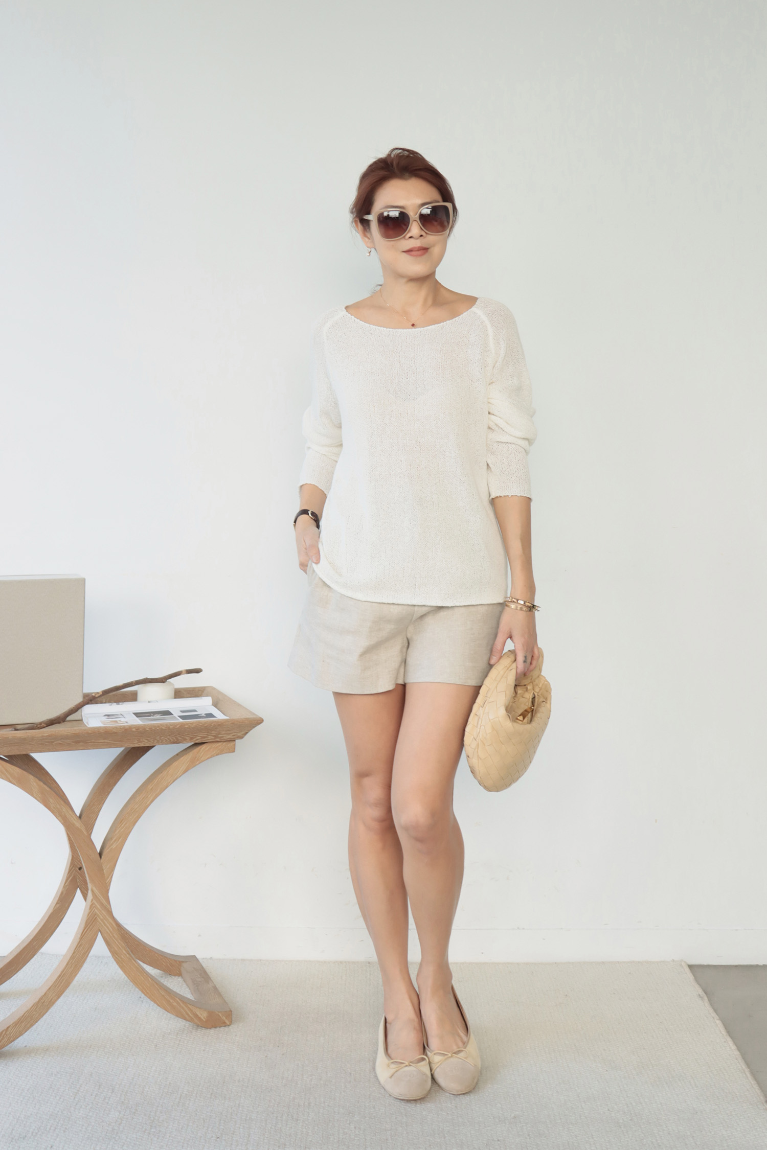 ・下身-亞麻後調節短褲—亞麻