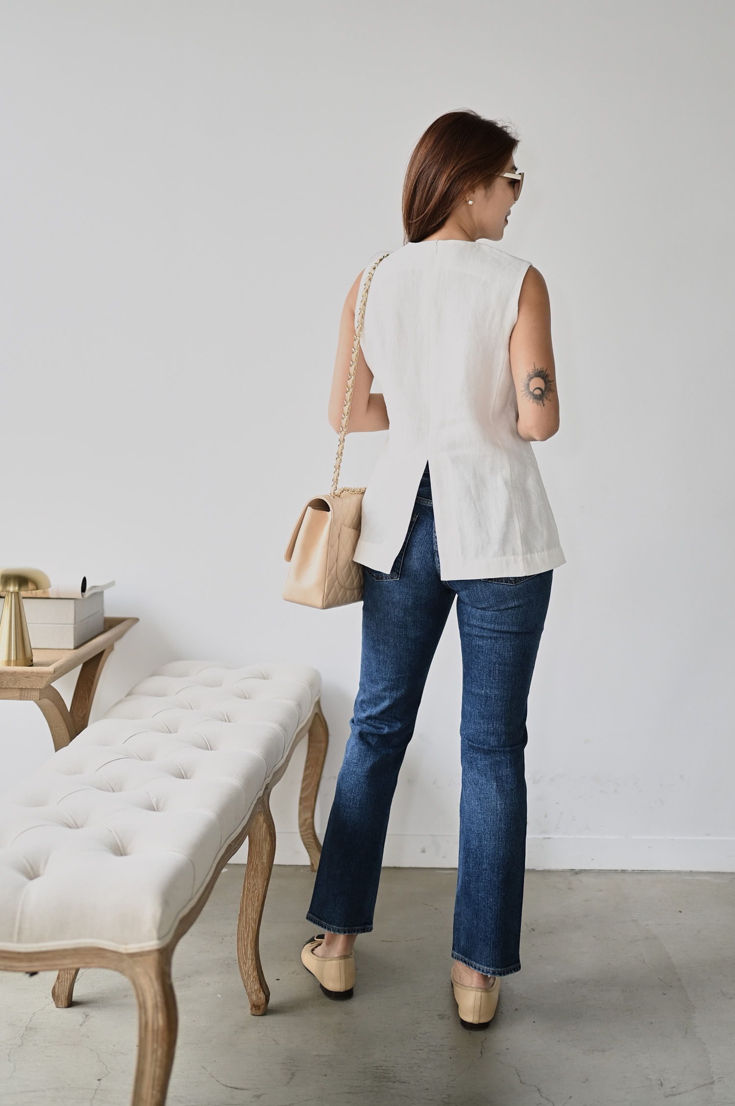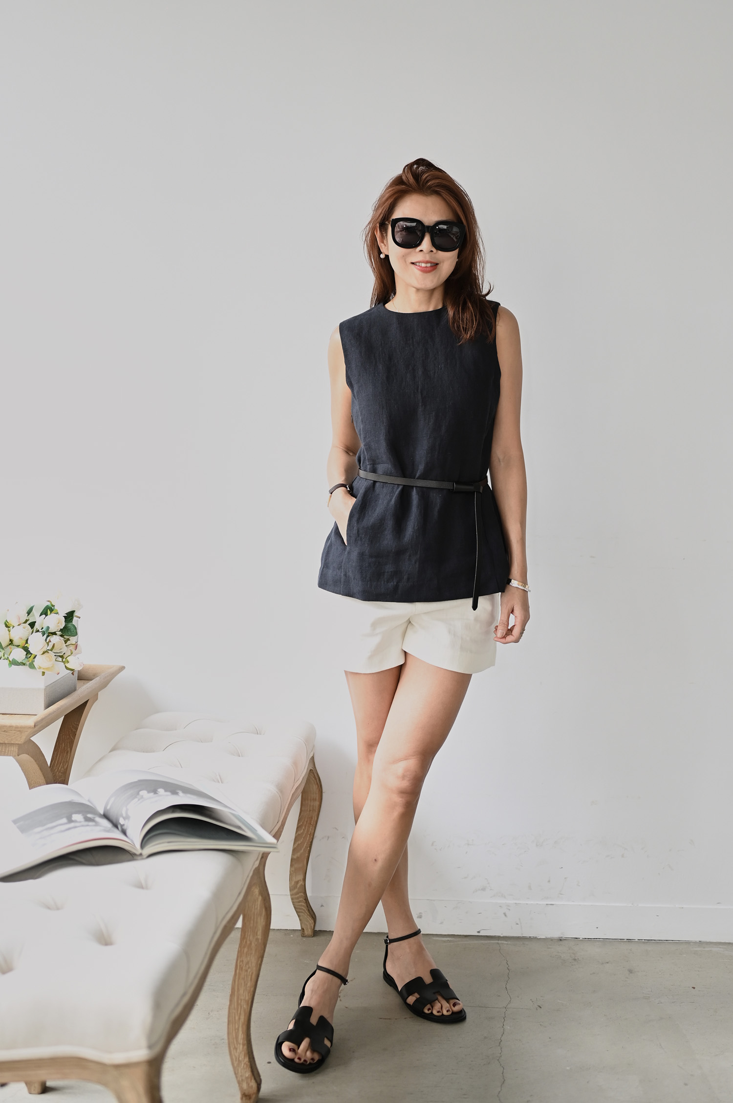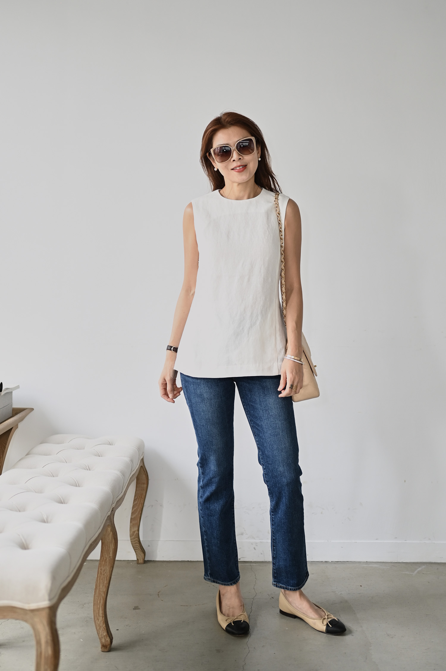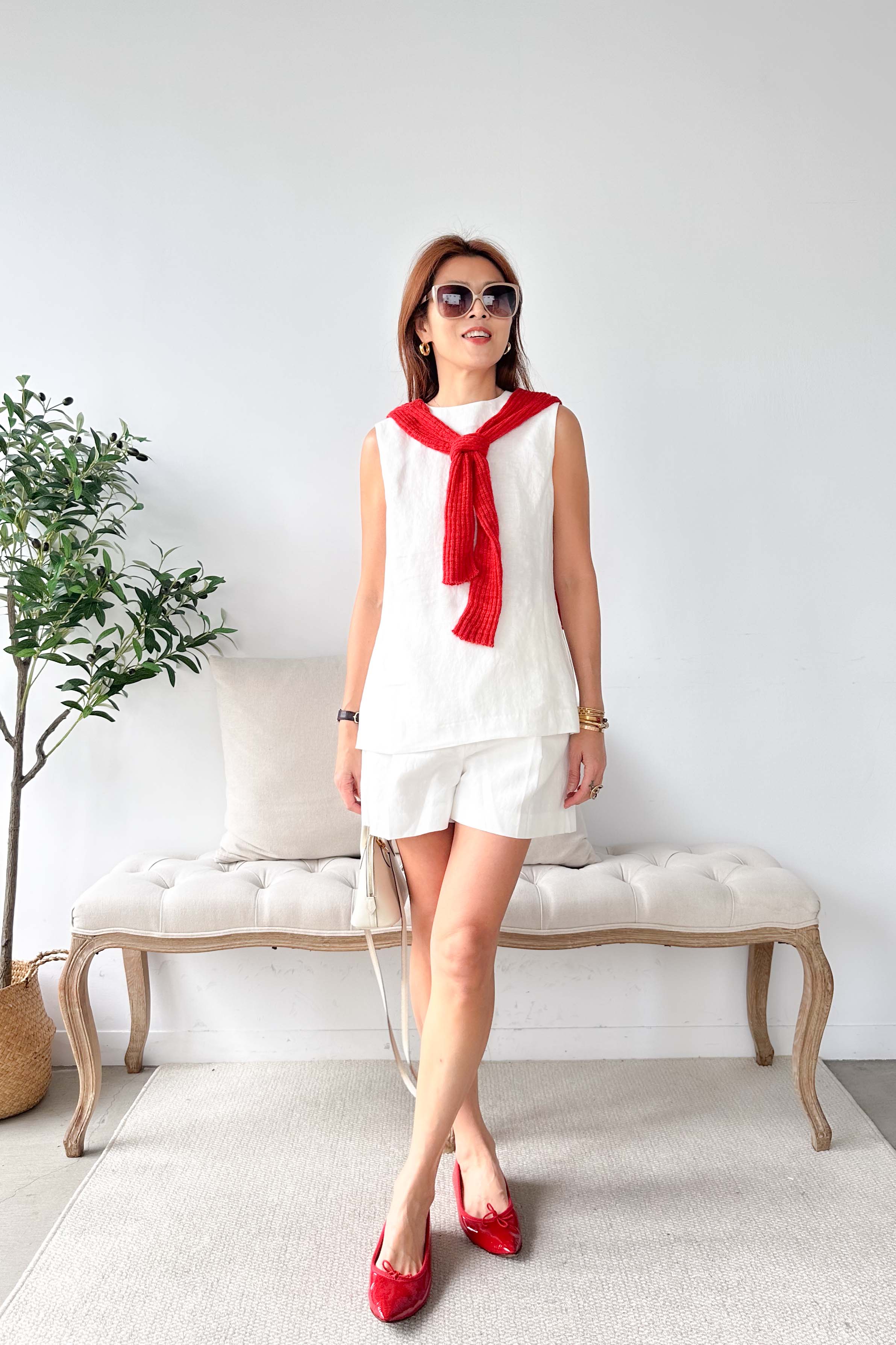 ・下身-亞麻側雙釦短褲—白 / RED CARD Kaia 磨損感直筒牛仔褲