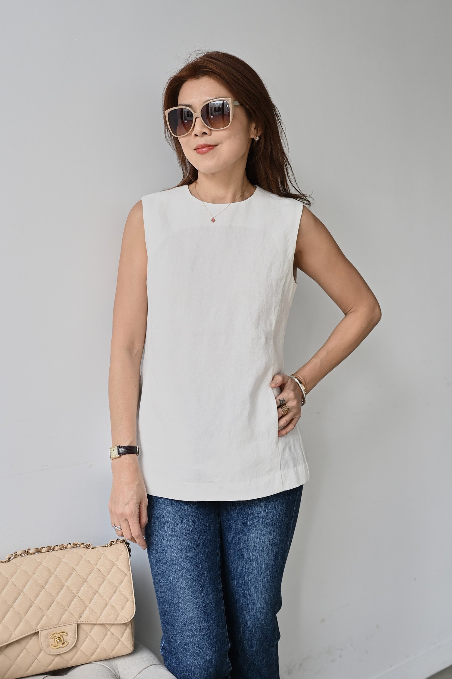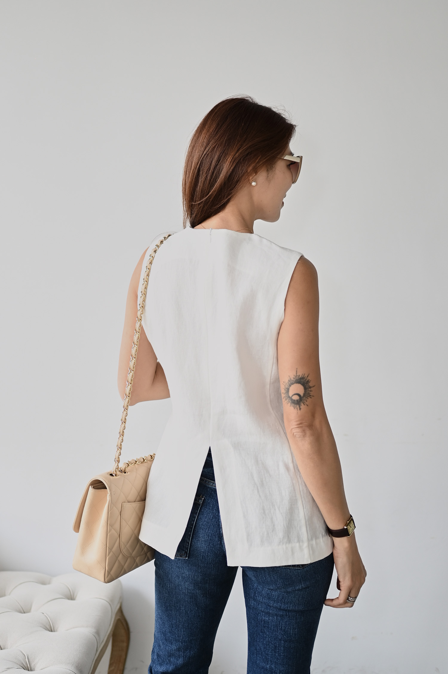 ・布料具有天然亞麻感肌理,透氣不悶熱適合日常與換季時節。不緊身的剪裁於腰線自然收束,並從腰際向下微微展開,形成柔和A字輪廓,既勾勒身形曲線又保留活動空間,中長版則恰到好處的遮蓋臀部,修飾下半身比例;腋下剪裁巧妙修飾副乳位置,讓側面更顯俐落。側拉鍊維持正面線條的極簡俐落,加入口袋設計兼顧實穿機能,後開衩細節則提升行走時的活動度與輕盈感,讓整體更具層次,展現優雅而不拘束的線條感。