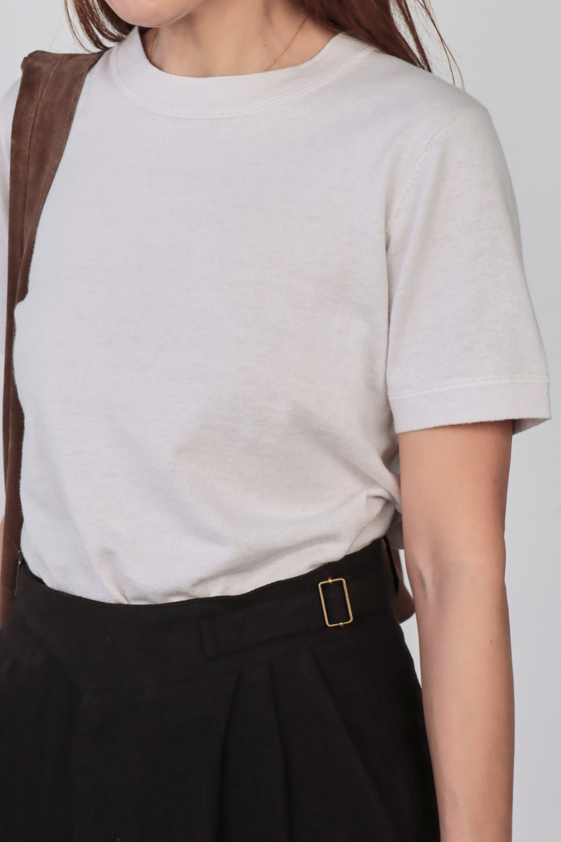 ・上衣-棉質羊絨混紡針織短袖上衣—鉛白