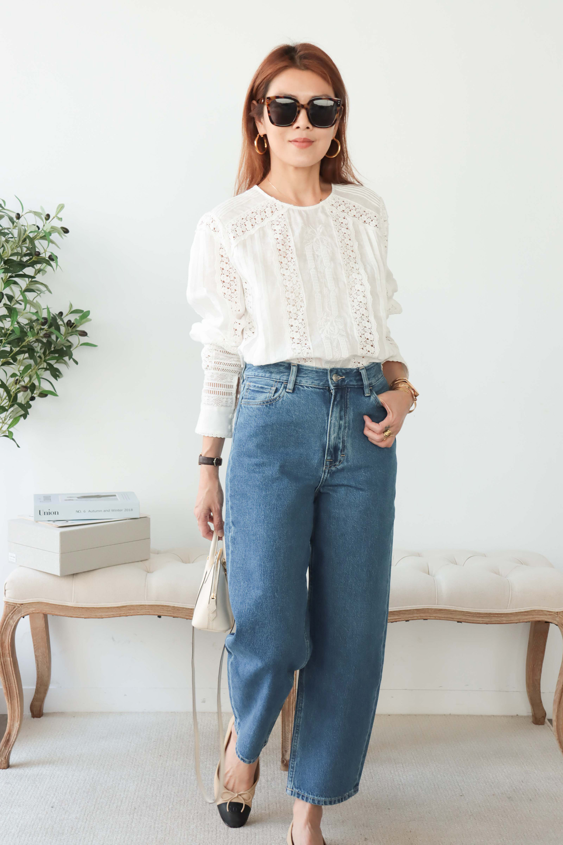 ・下身-Core 微微繭型直筒牛仔褲—藍