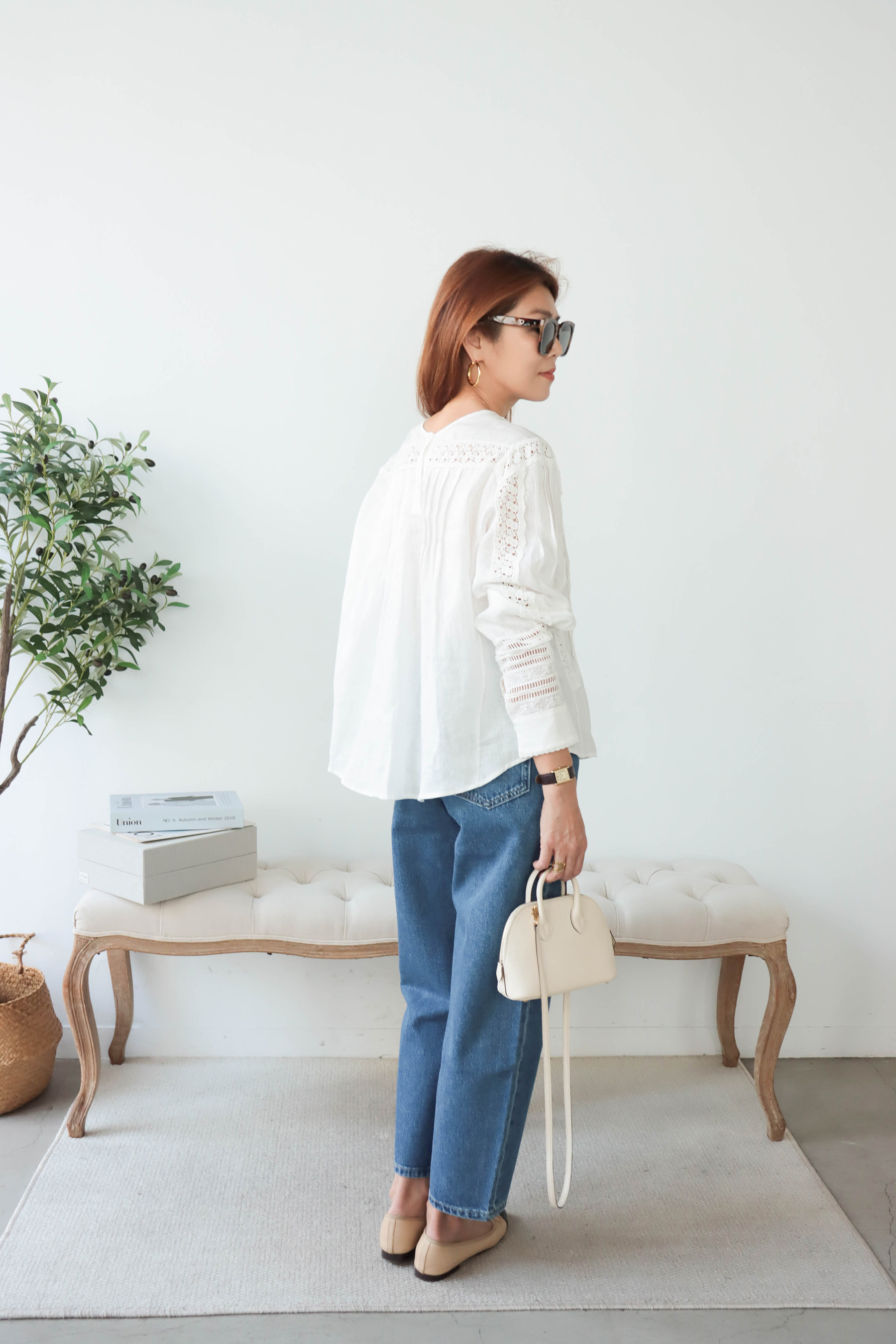 ・整體布料輕盈柔軟,帶有自然微透的空氣感,貼膚時呈現清爽不悶的舒適觸感,細緻鏤空織紋與立體蕾絲交織,使手感更細膩滑順,同時保有恰到好處的挺度,讓輪廓自然垂墜而不失立體感,穿著時既輕盈透氣又帶出溫潤柔和的質地,勾勒出優雅而富有層次的視覺質感。