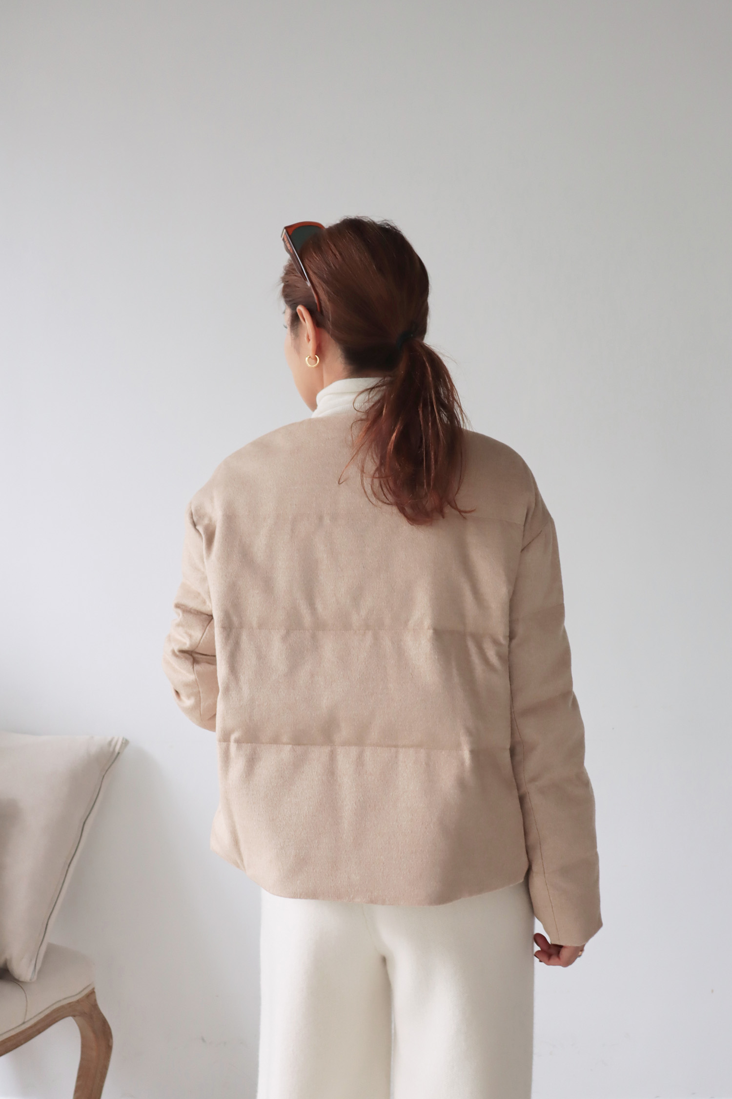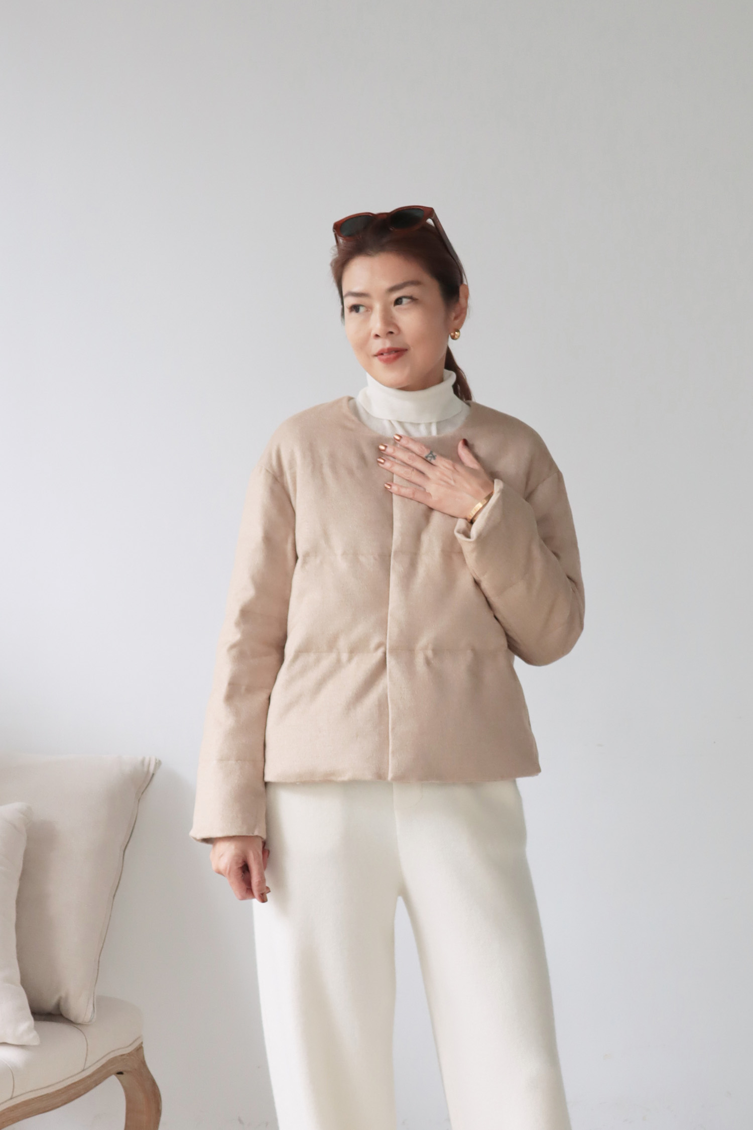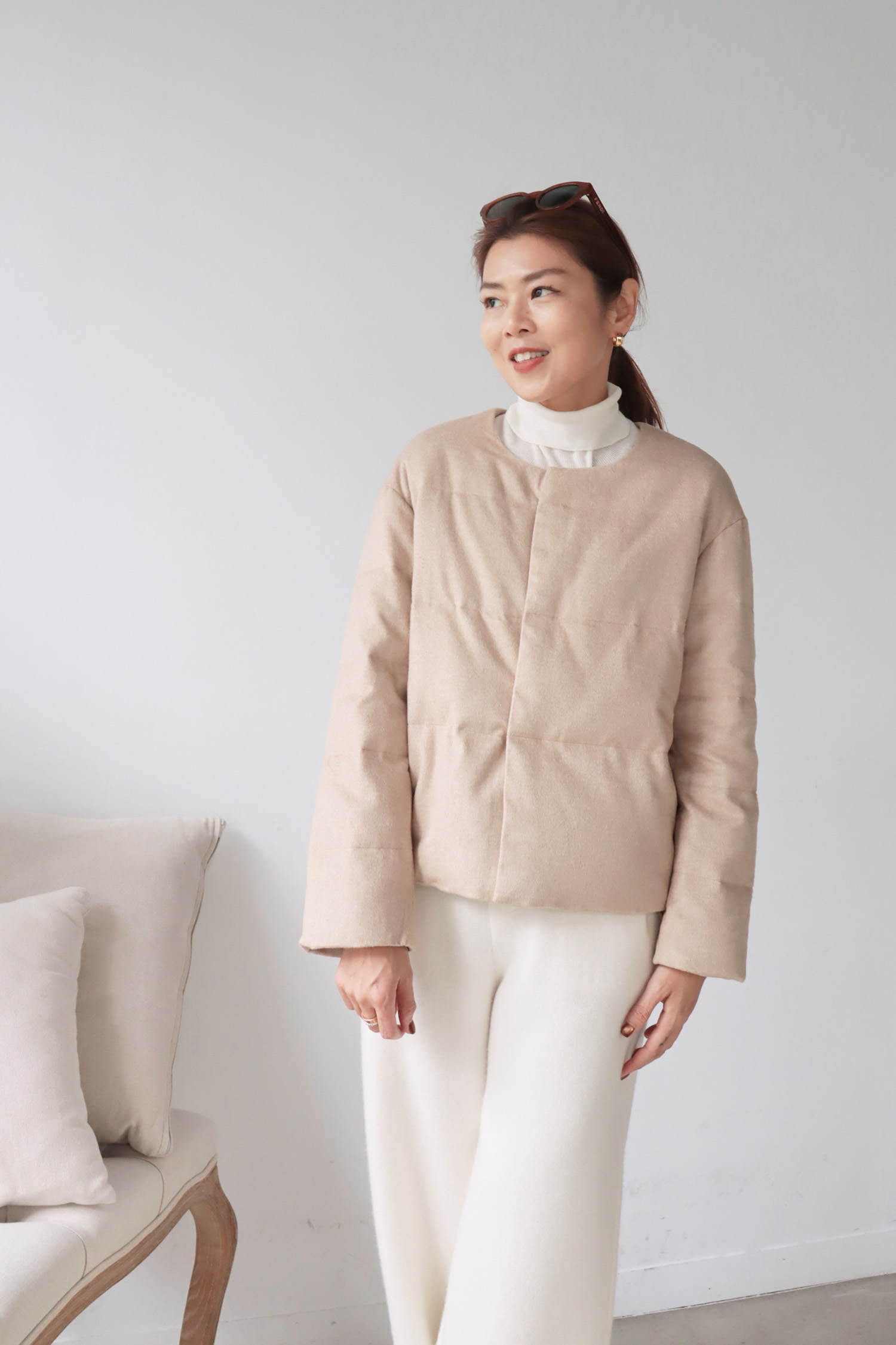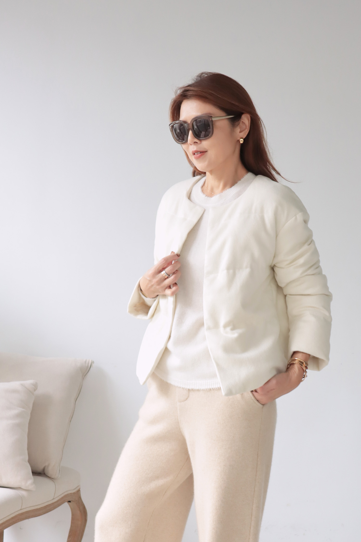 【搶先價】羊毛蠶絲極簡小圓領羽絨外套 05100036