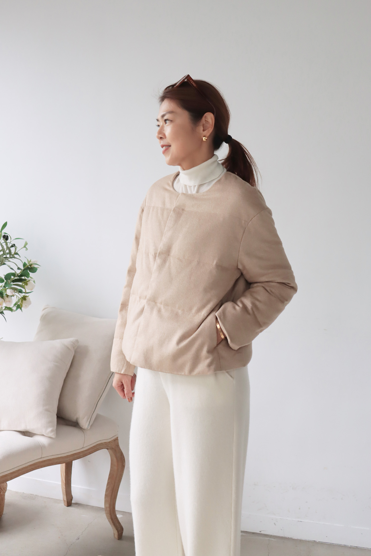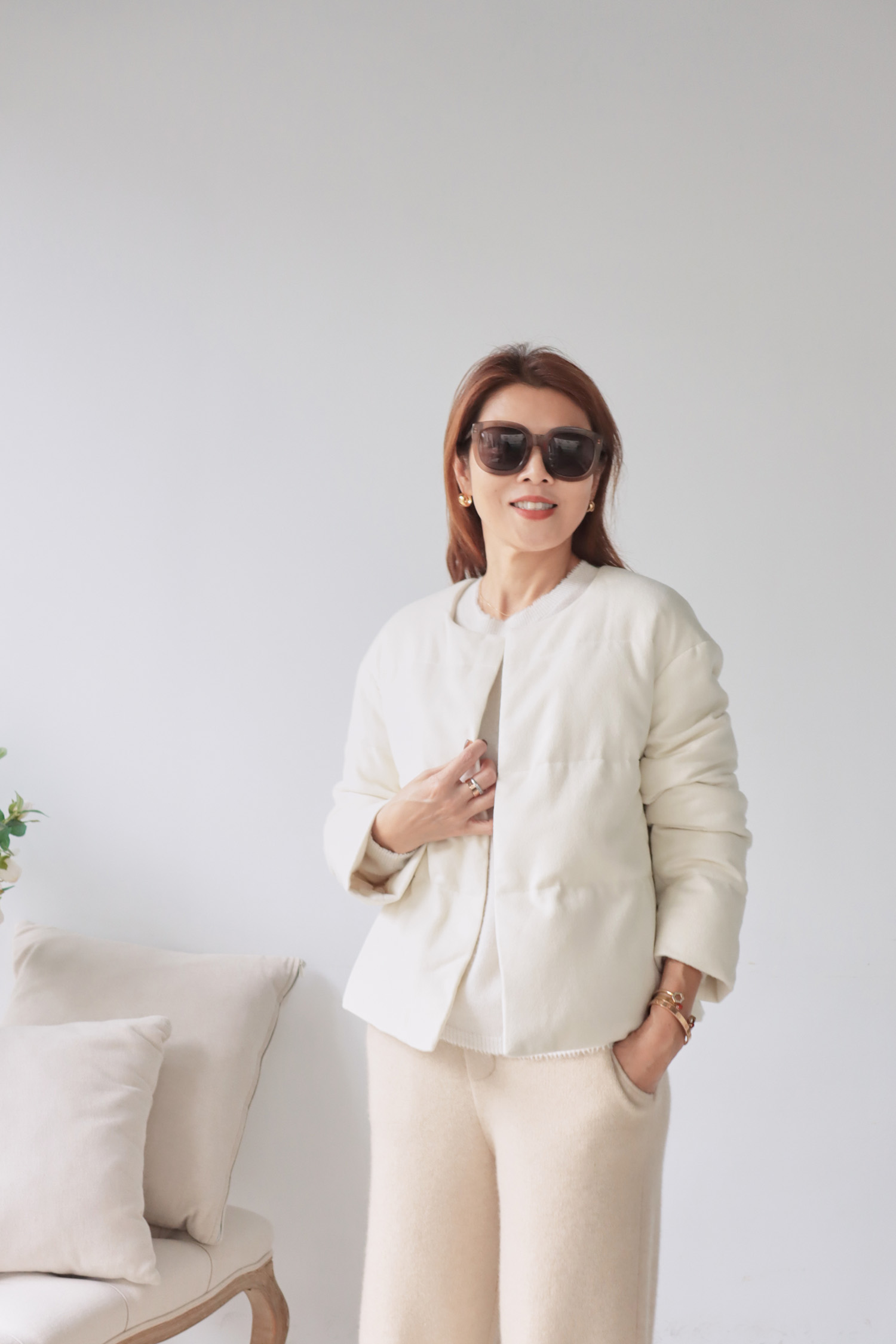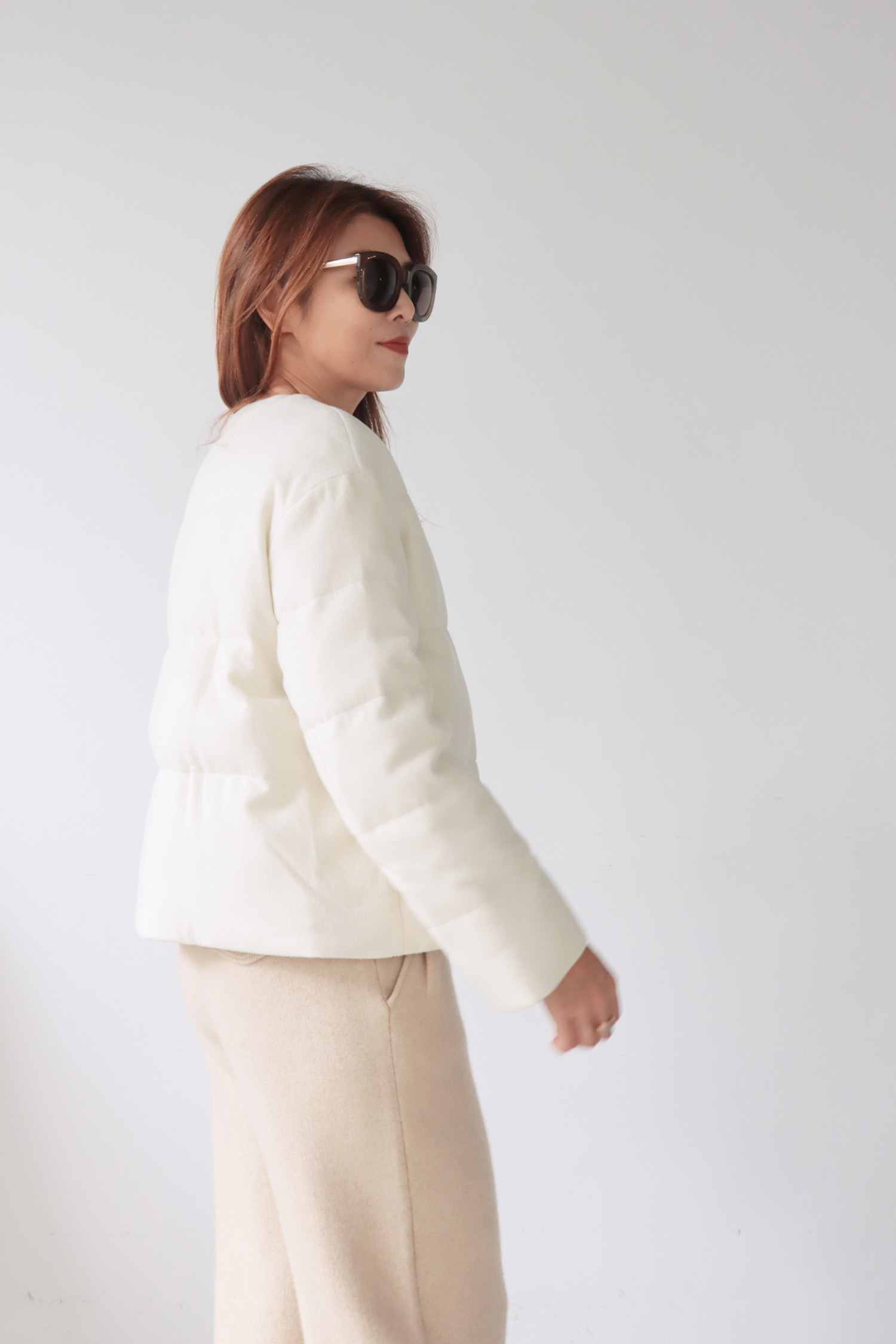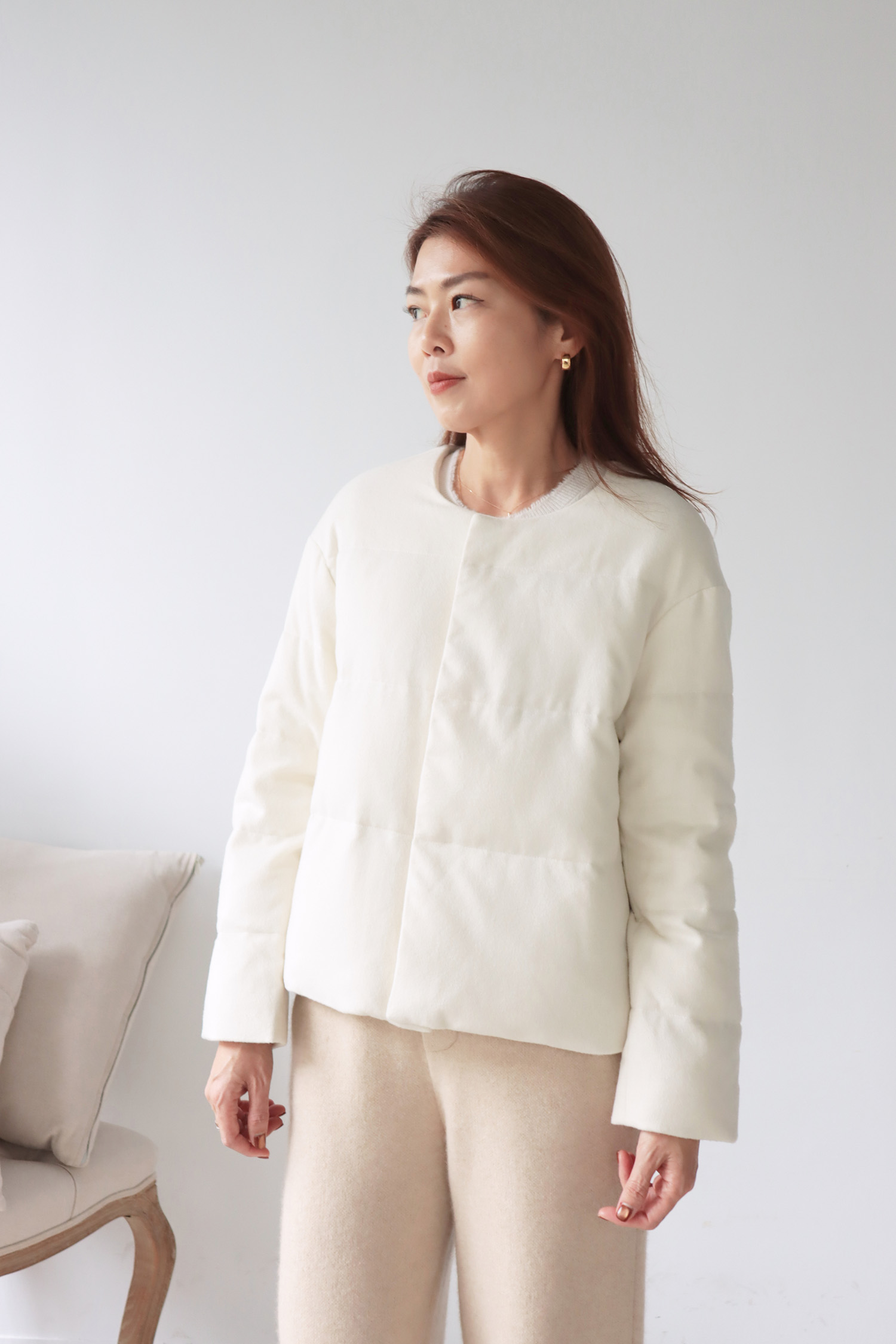 【搶先價】羊毛蠶絲極簡小圓領羽絨外套 05100036