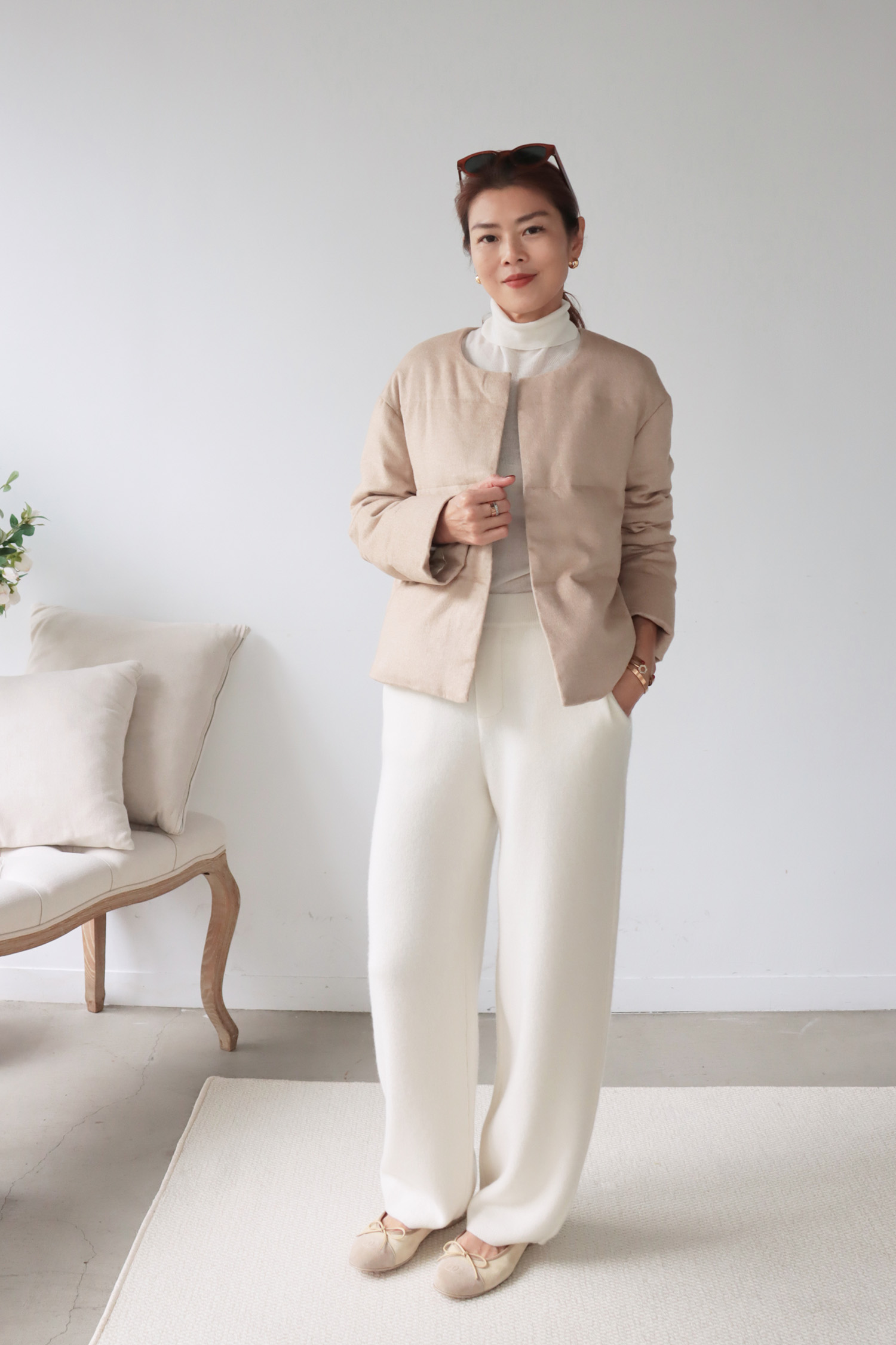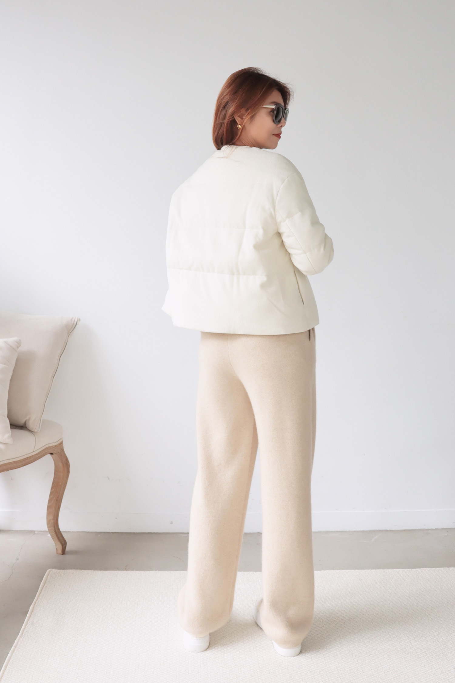 ・下身-100% Cashmere 厚磅羊絨直筒長褲—米