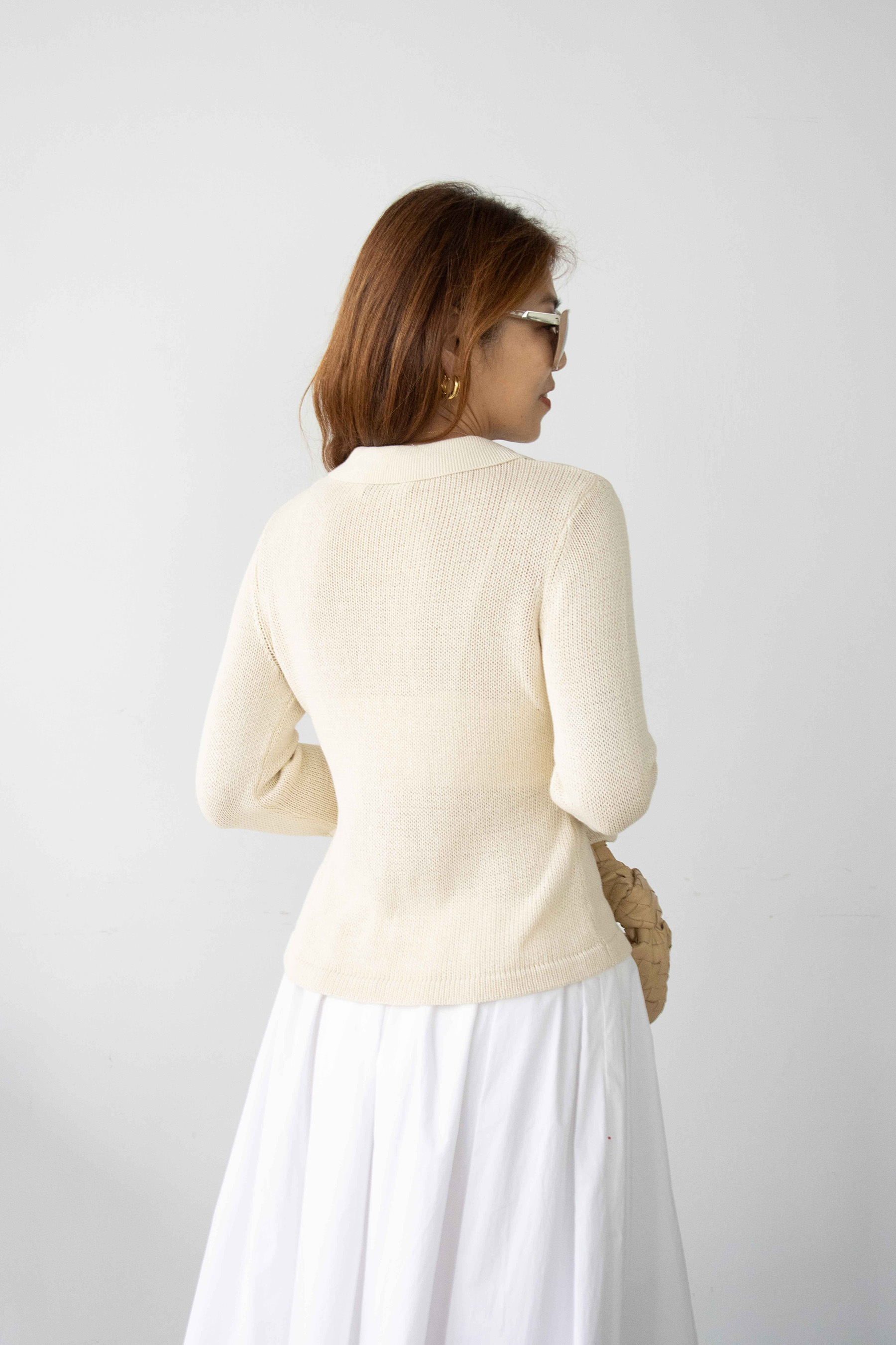 【搶先價】POLO領開襟針織長袖上衣 01030231