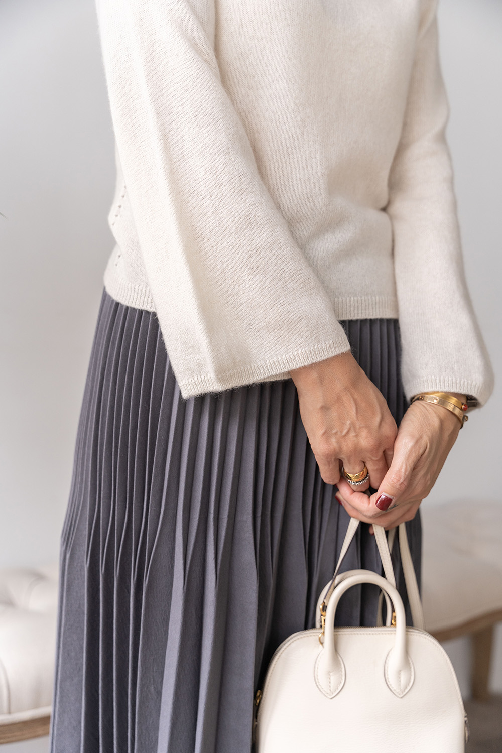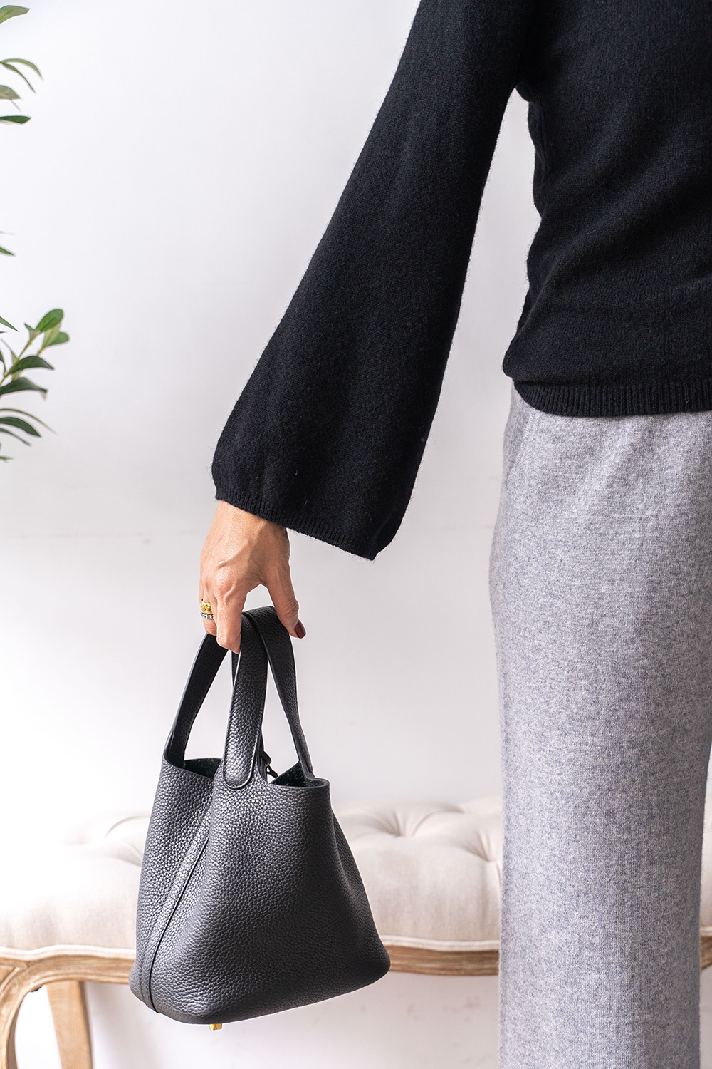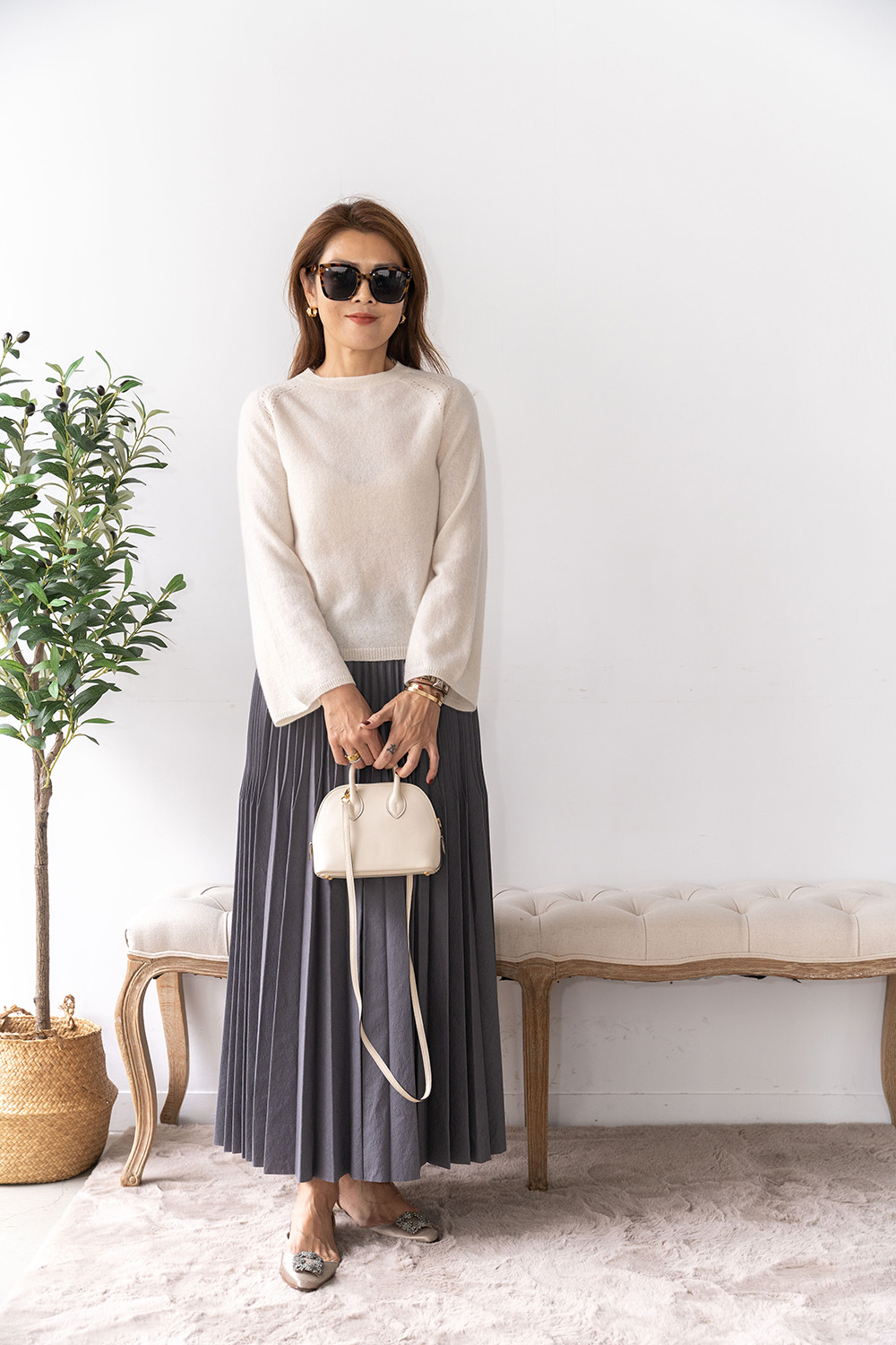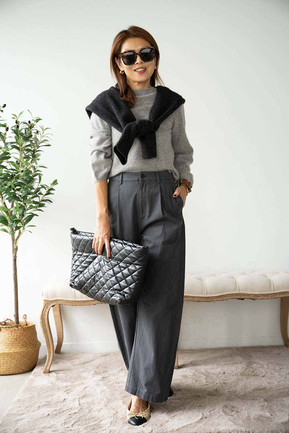・拉克蘭袖結合鐘型袖剪裁,貼合肩線同時袖口寬鬆,平衡身形比例