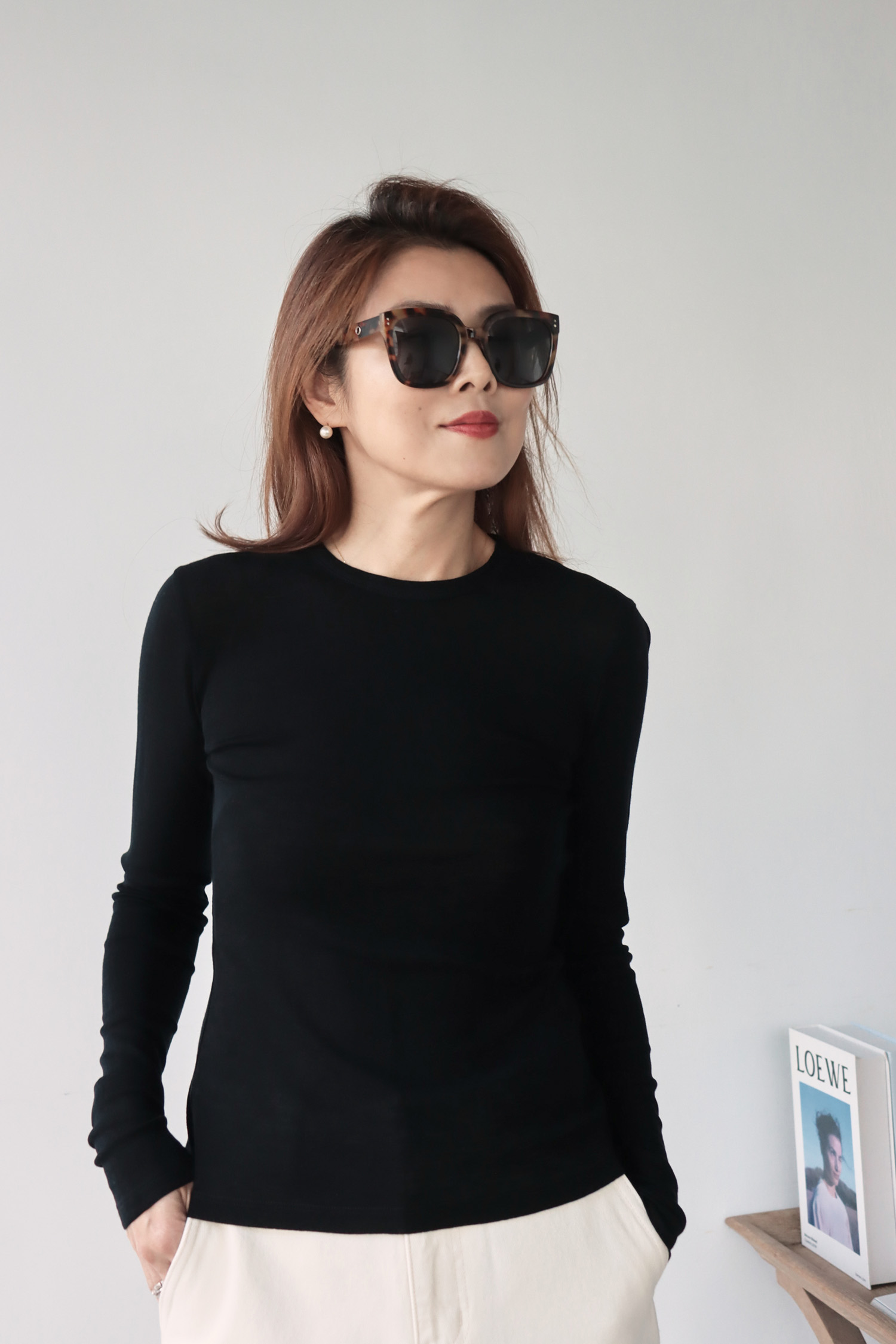 ・採用 100% 羊毛紗線製作,觸感柔軟舒適,保暖透氣兼具,穿著自在又溫暖,小圓領設計簡潔耐看,不僅修飾臉型,更經典百搭,永不退流行。輕盈薄織的材質單穿或作為打底都十分適合,增加穿搭層次與多樣性,是秋冬衣櫥的百搭必備單品。