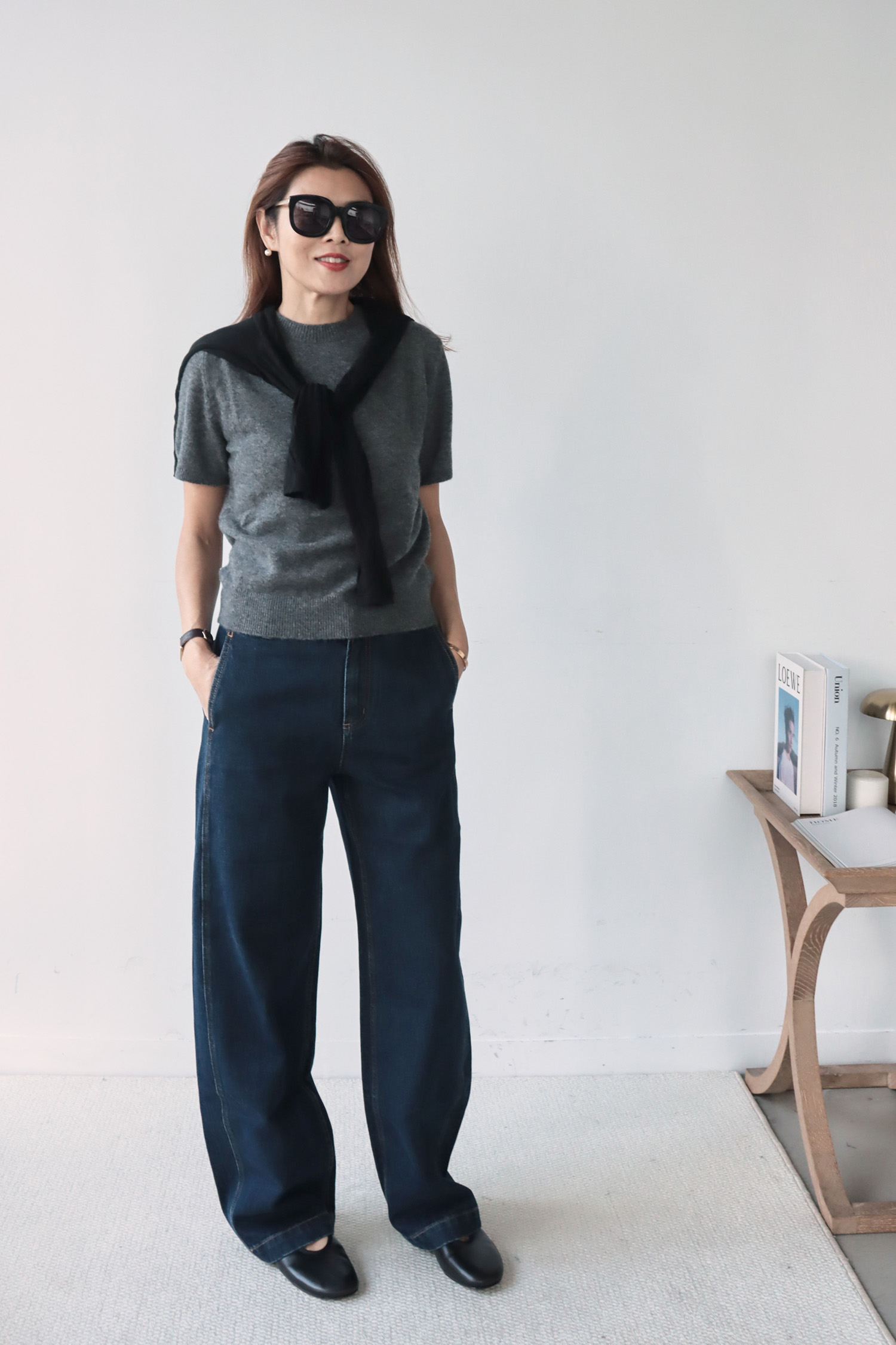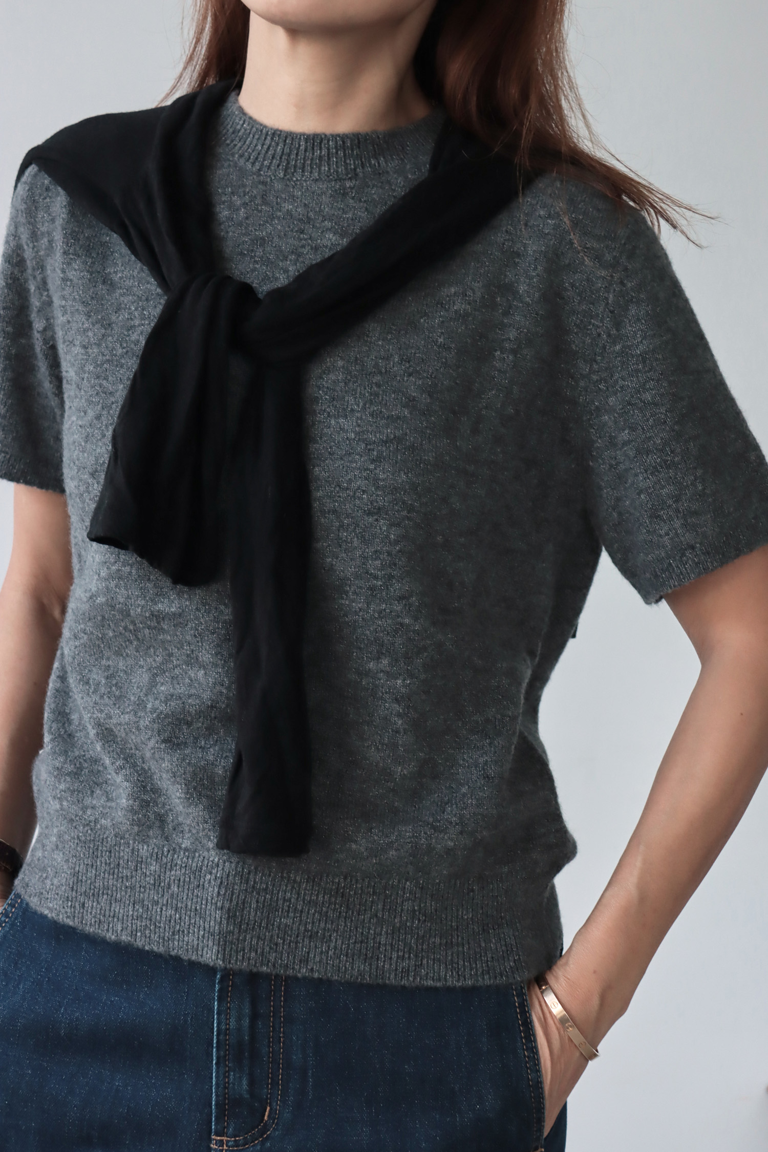 ・這款短袖上衣採用 75% 喀什米爾與 25% 桑蠶絲混紡絨感細軟紗線,觸感親膚柔軟,不刺癢,帶來極佳的舒適度。微鬆身版型順身不貼身,穿起來俐落有精神,短袖設計無論單穿或疊穿都適合,提升穿搭的多樣性與層次感。摻色混織紗線為整體增添視覺層次,而螺紋包邊細節則提升耐穿度,使衣身持久挺拔,兼具實用性與精緻質感。