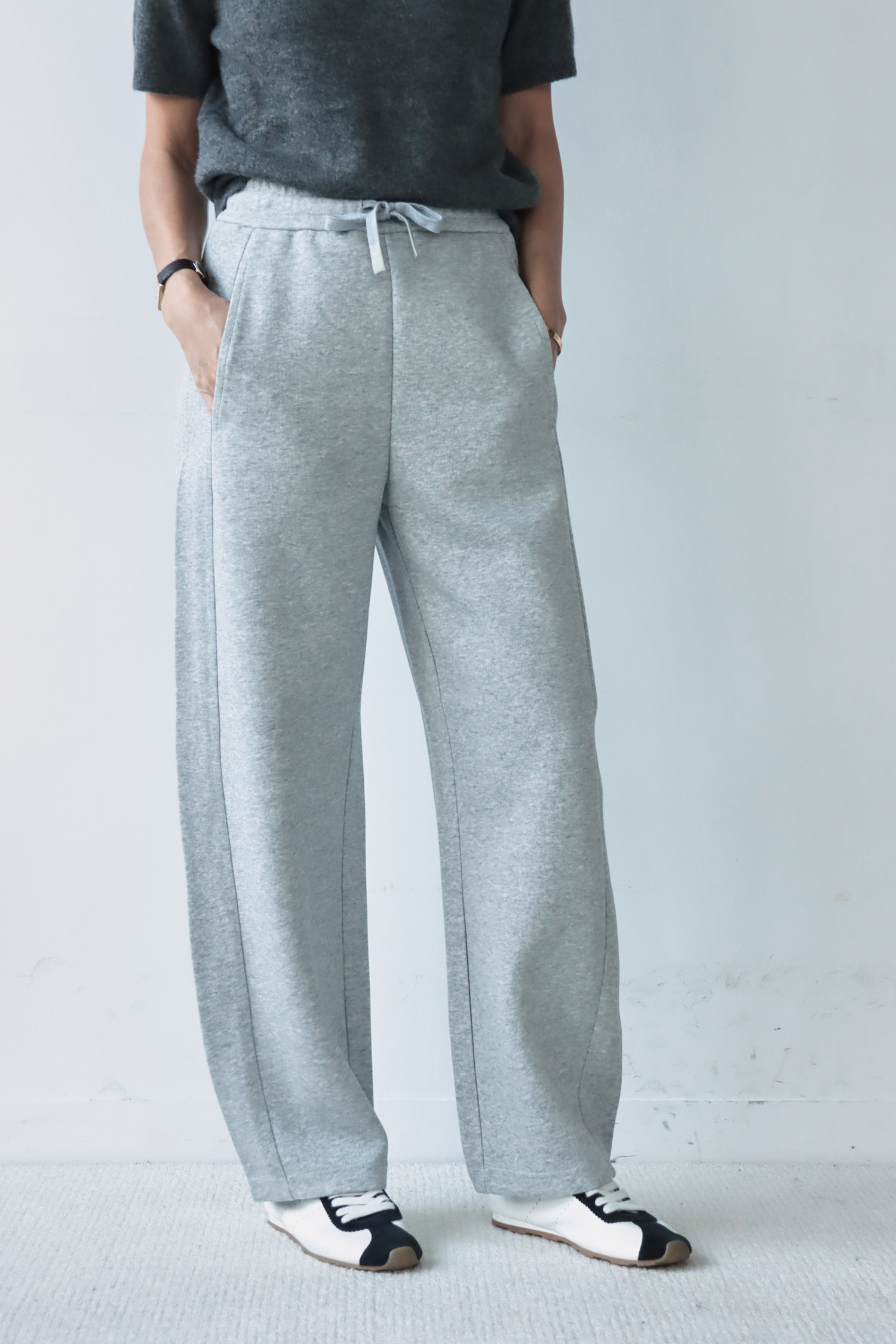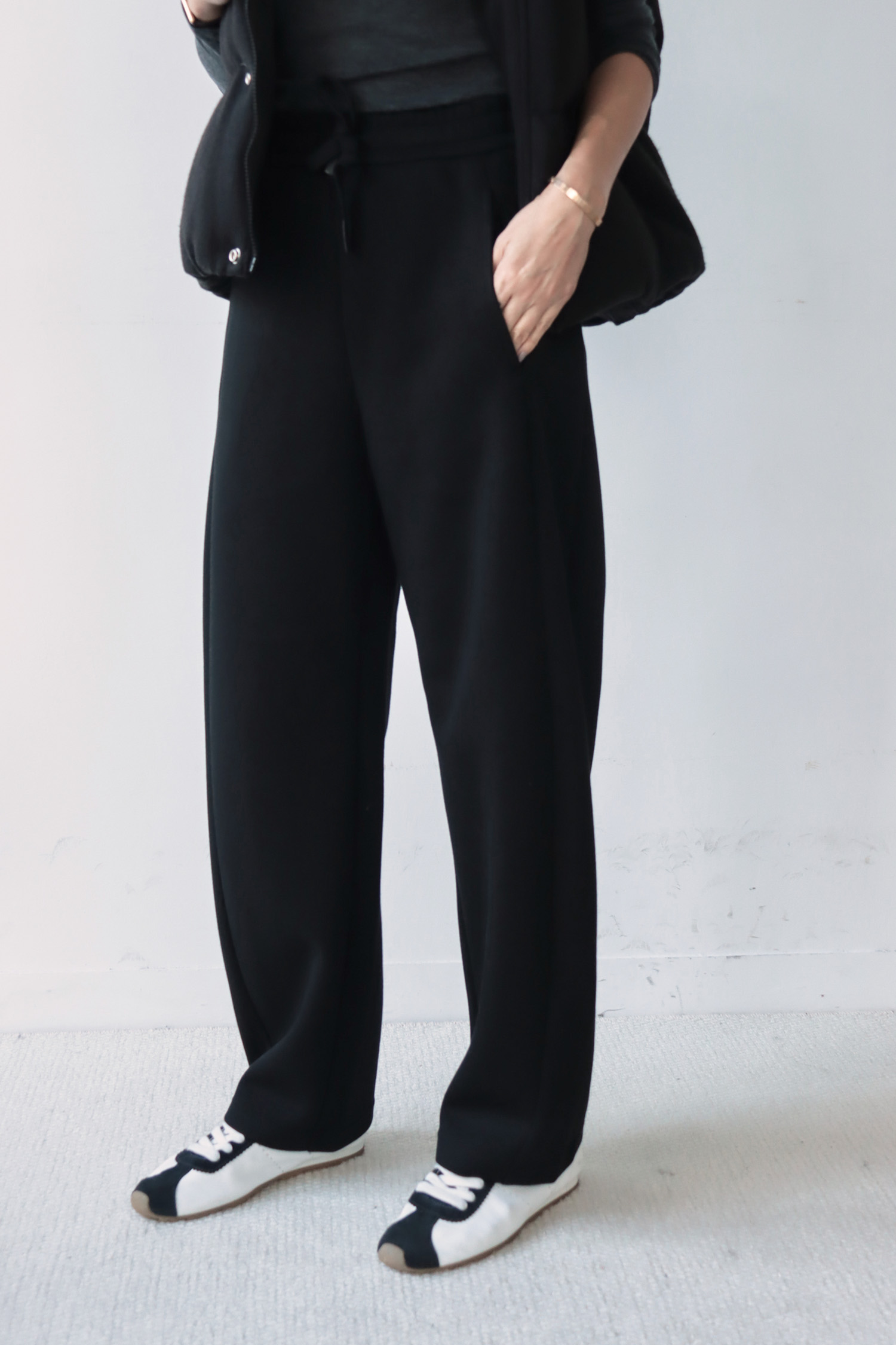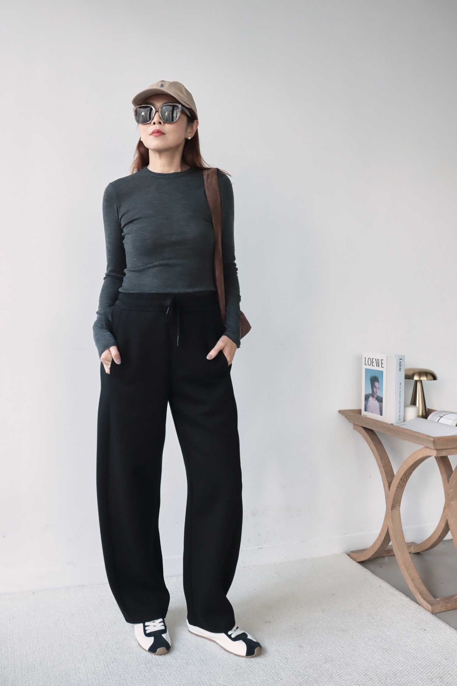 ・舒適的抽繩設計可依體型自由調整鬆緊,穿著包容度高且自在無負擔,側邊車線前移搭配上寬下窄的剪裁,有效修飾臀部與腿部外側線條,讓雙腿視覺更顯纖細直順,高含量棉質帶來良好的親膚與舒適度,再結合富有設計感的版型,使整體風格在舒適之餘不顯過度休閒,日常穿搭也能保持俐落質感。