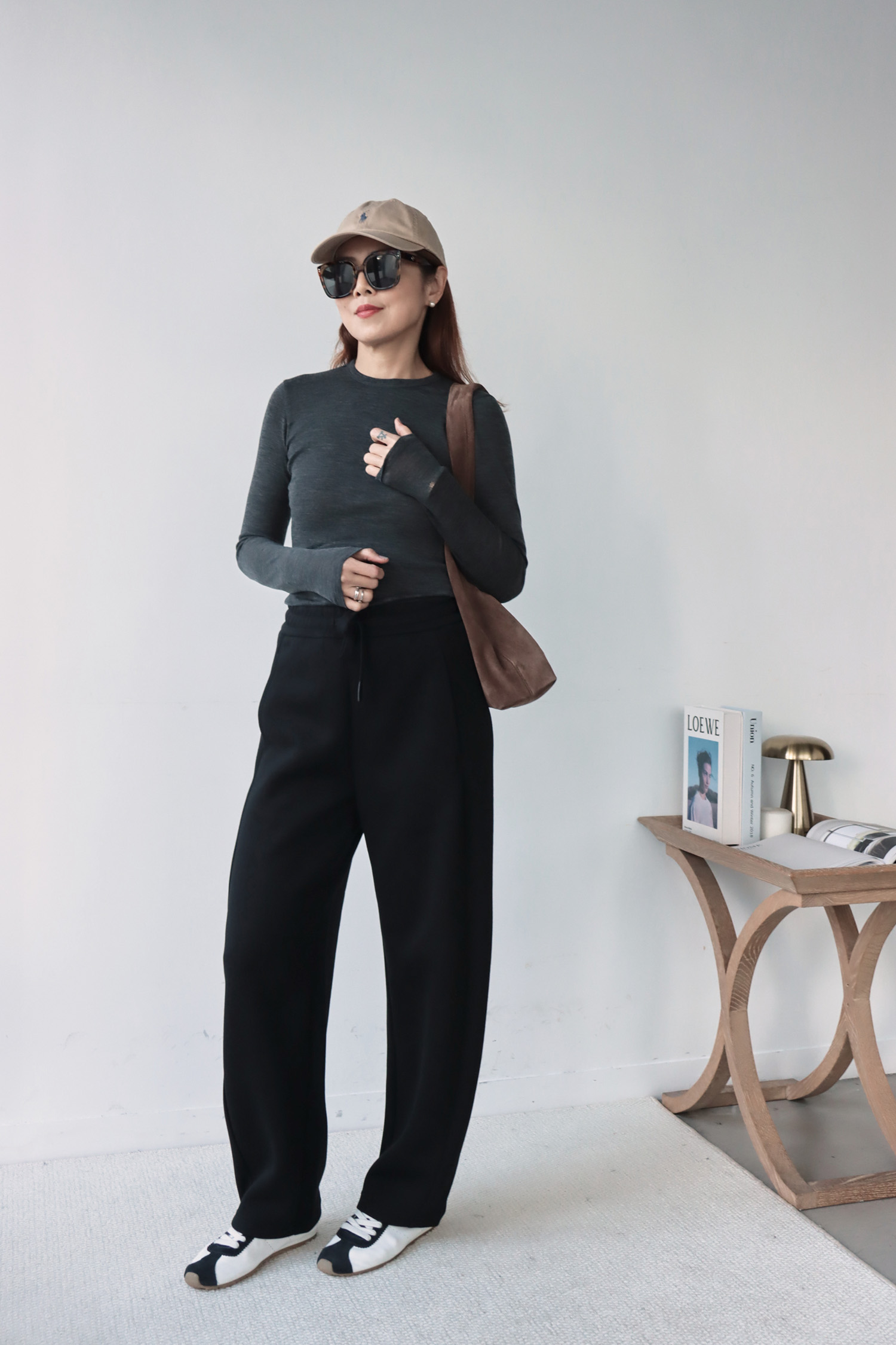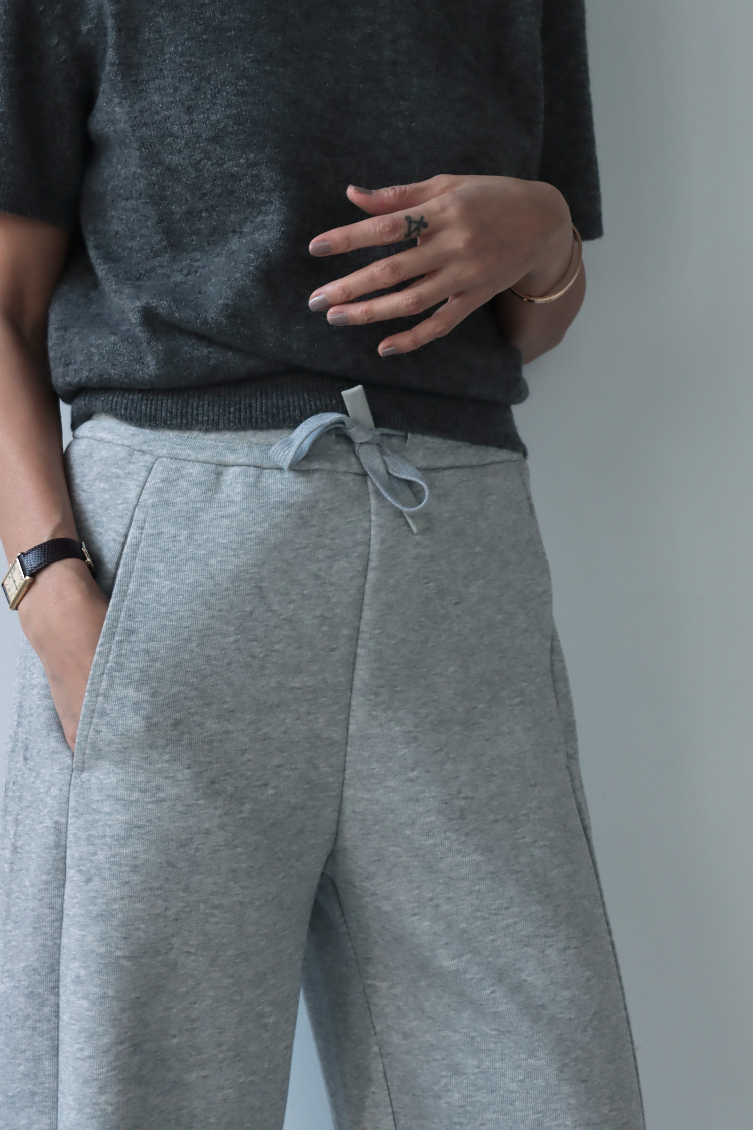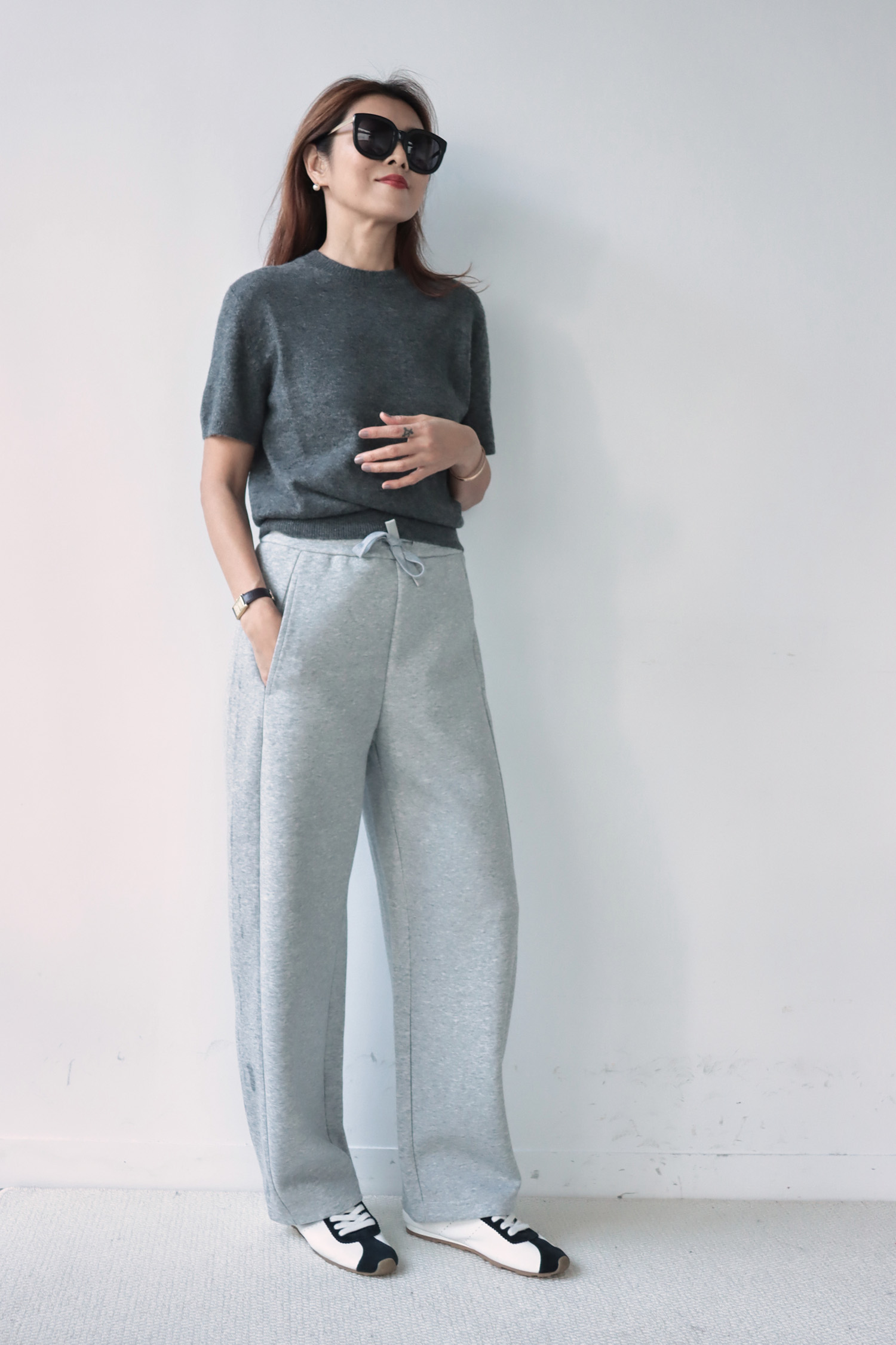・舒適的抽繩設計可依體型自由調整鬆緊,穿著包容度高且自在無負擔,側邊車線前移搭配上寬下窄的剪裁,有效修飾臀部與腿部外側線條,讓雙腿視覺更顯纖細直順,高含量棉質帶來良好的親膚與舒適度,再結合富有設計感的版型,使整體風格在舒適之餘不顯過度休閒,日常穿搭也能保持俐落質感。