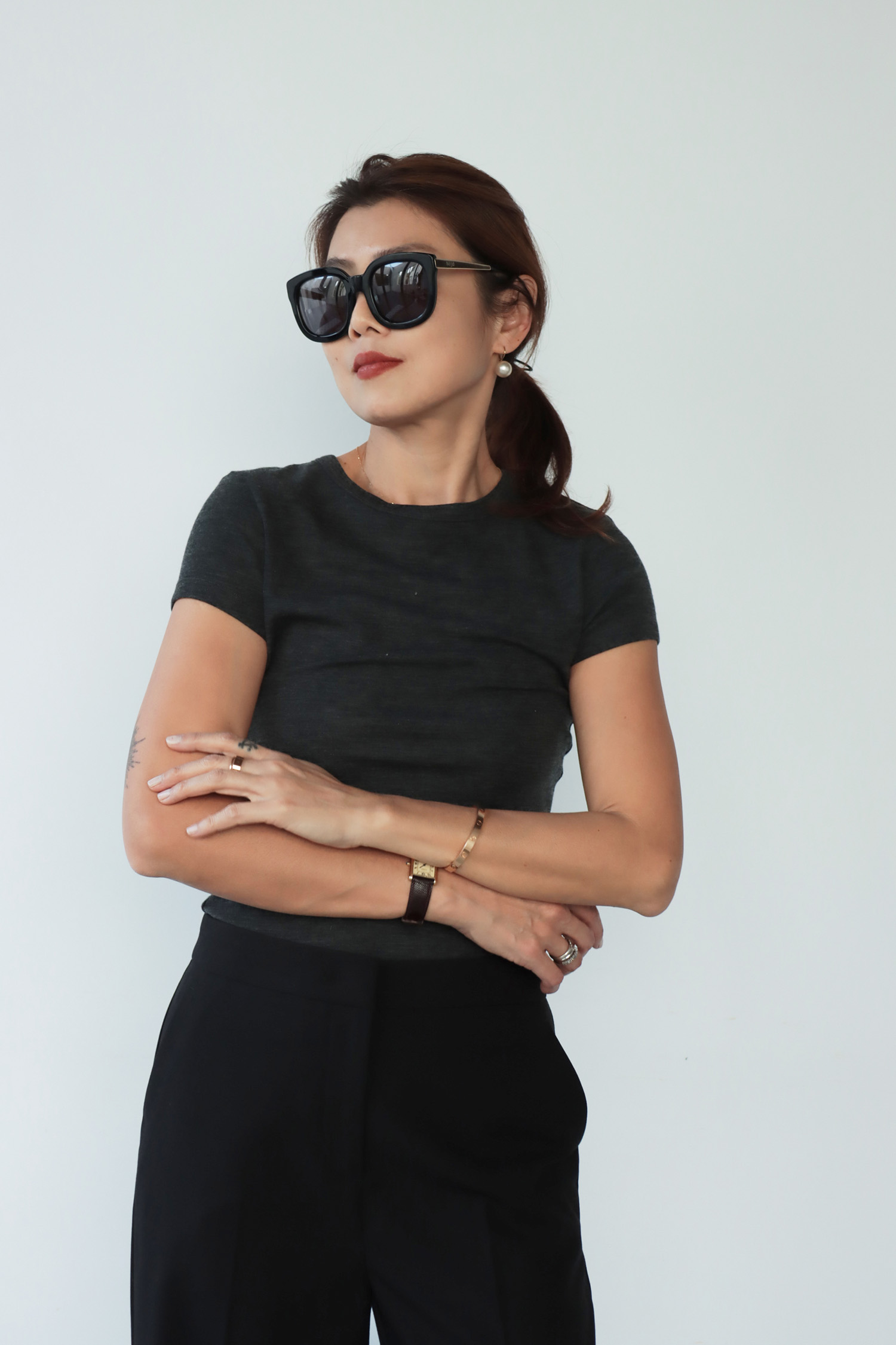 ・選用95% Wool+5% Spandex彈性混紡面料,保有羊毛的細緻溫潤觸感,同時提升延展性與穿著舒適度。摻色混織紗線帶出自然層次感,使布面呈現低調而不單調的視覺效果,增添細節質感。袖口採用斜切設計,線條俐落,修飾手臂輪廓,讓簡約版型更具設計感。整體為合身但不貼身的剪裁,順著身形線條自然延展,修飾比例同時保留舒適空間,適合單穿或作為內搭。