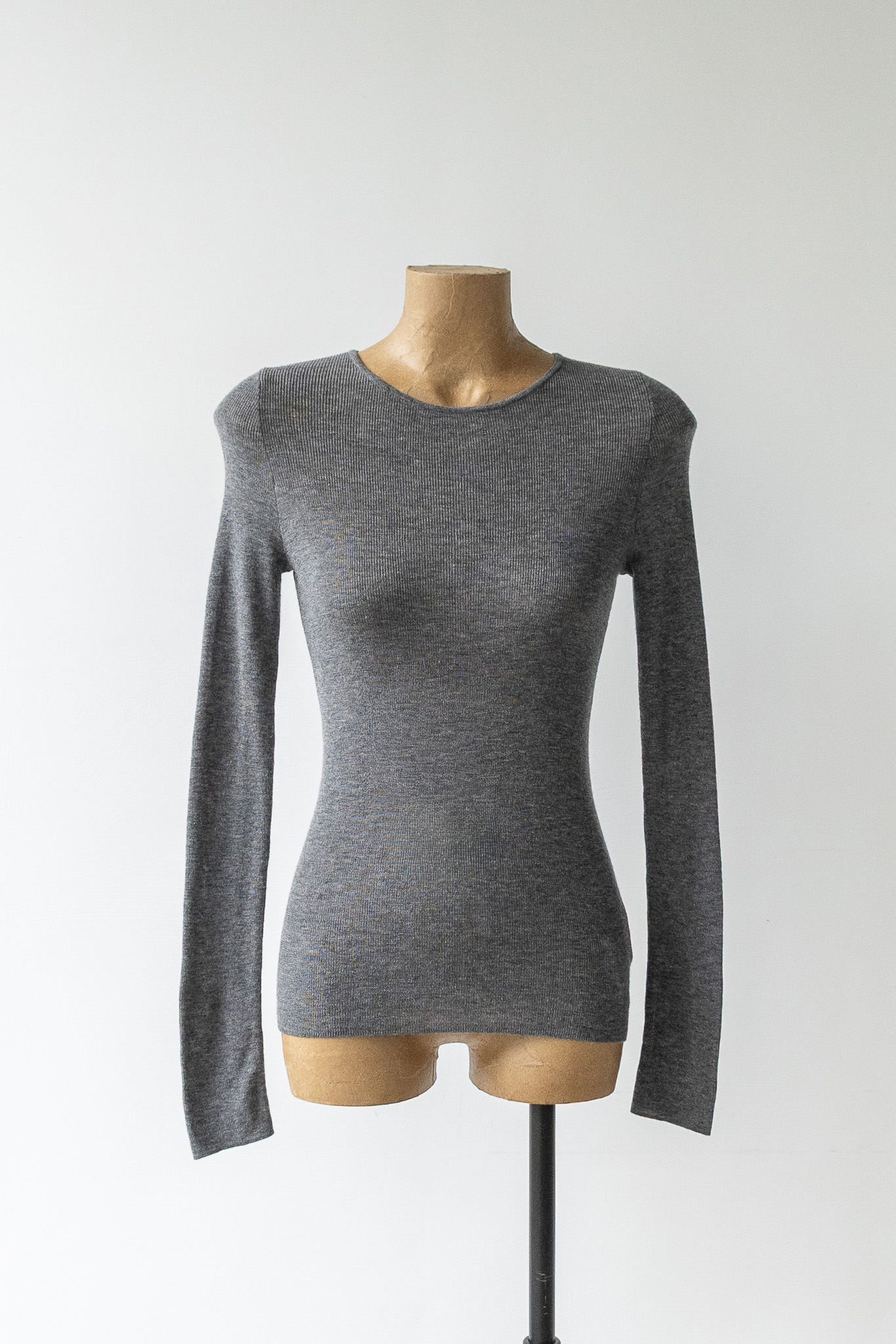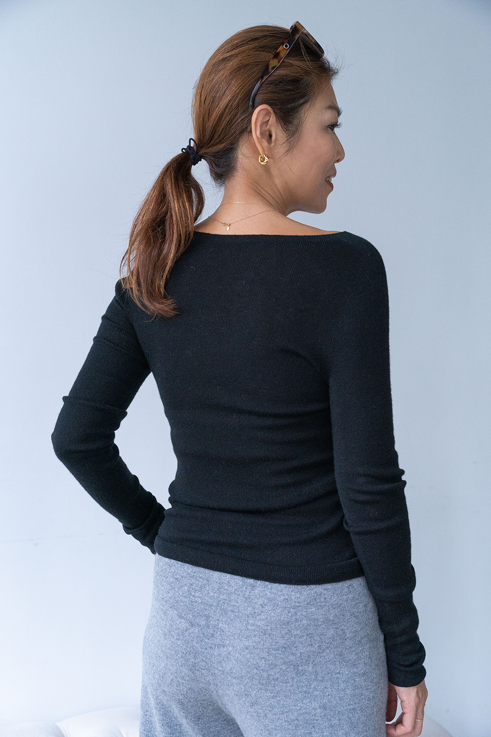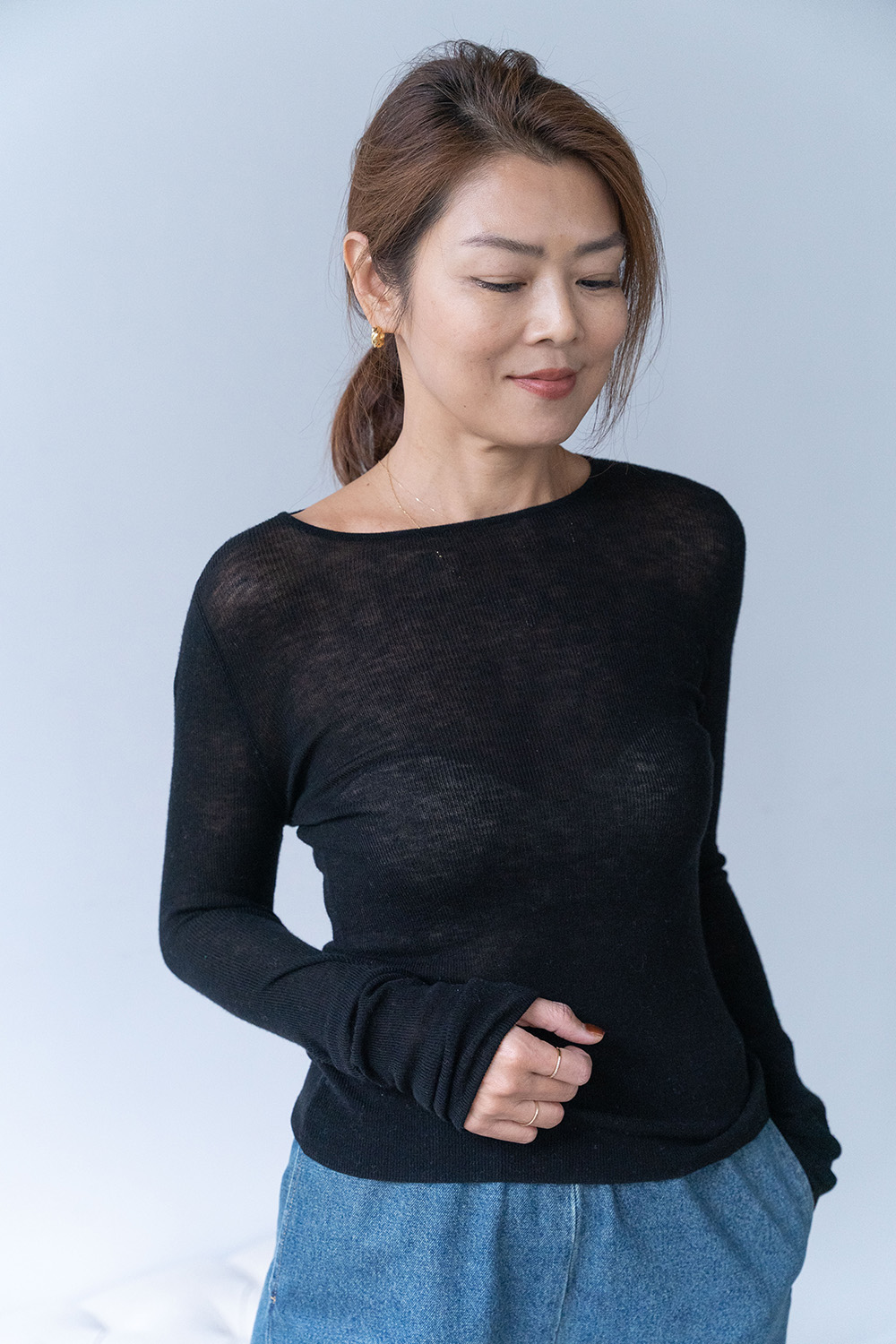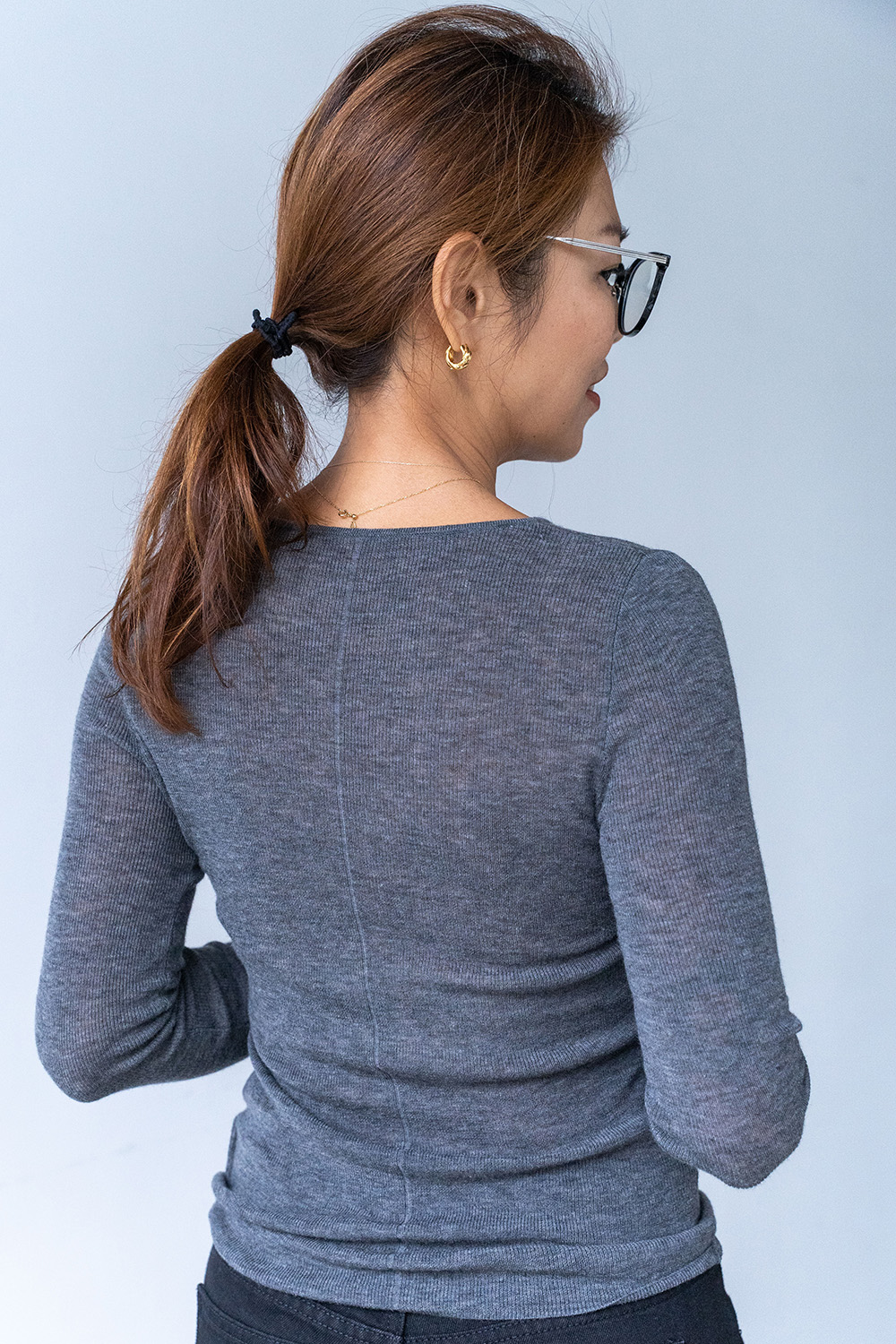 【搶先價】羊毛蠶絲圓領後壓線打底長袖上衣 01030211