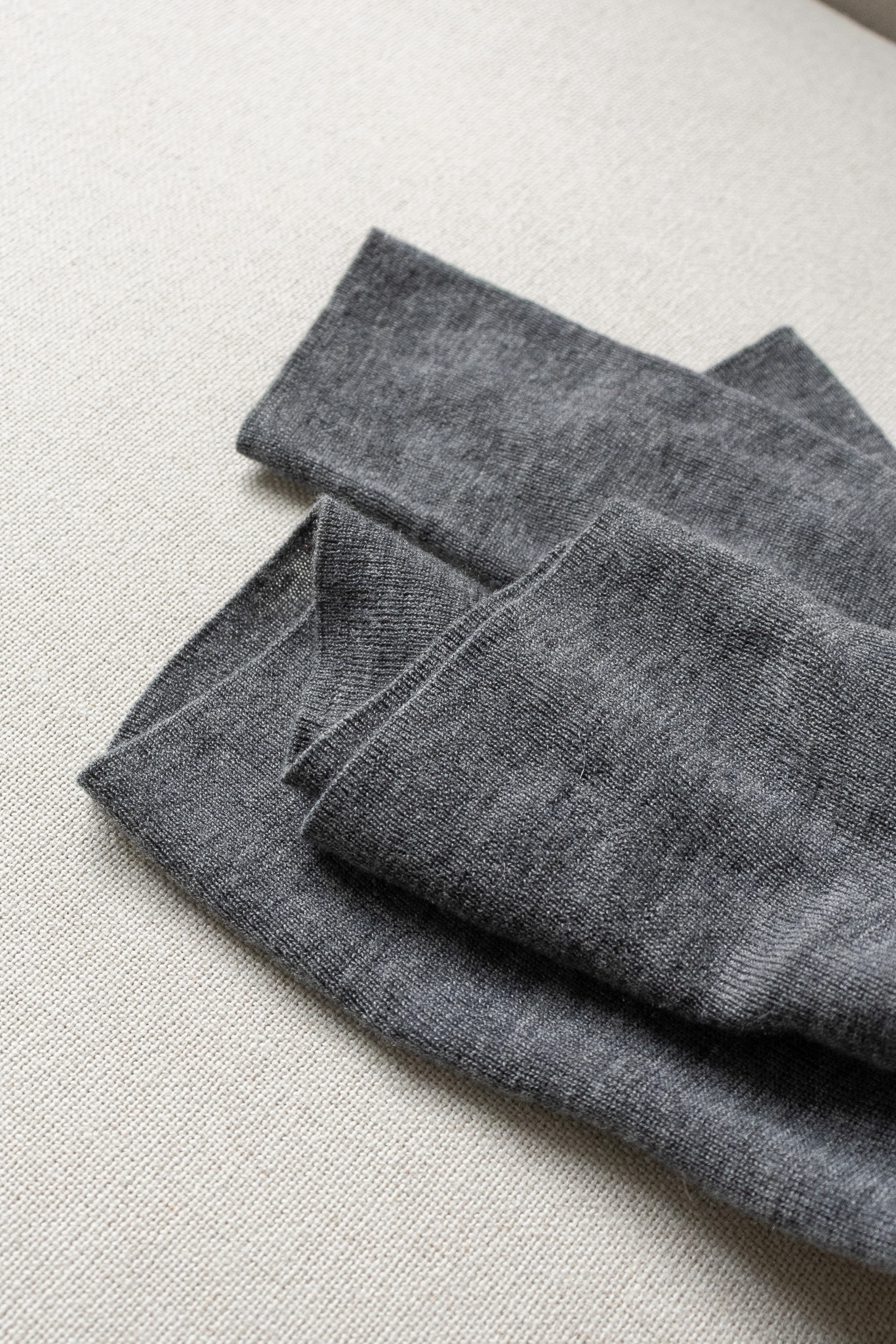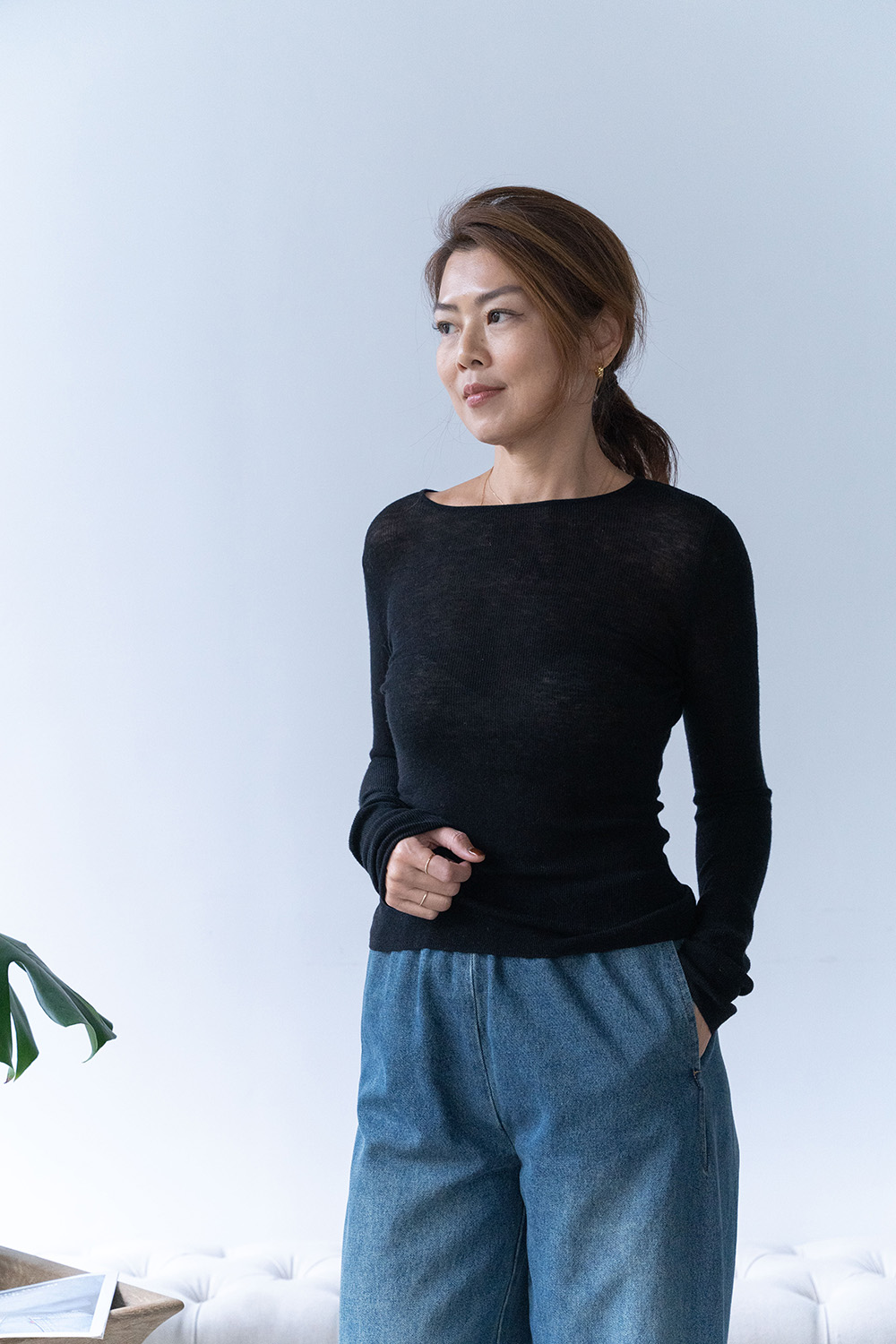 ・高含量羊絨(Cashmere)結合桑蠶絲混紡高級紗線,質地柔軟親膚且輕盈保暖