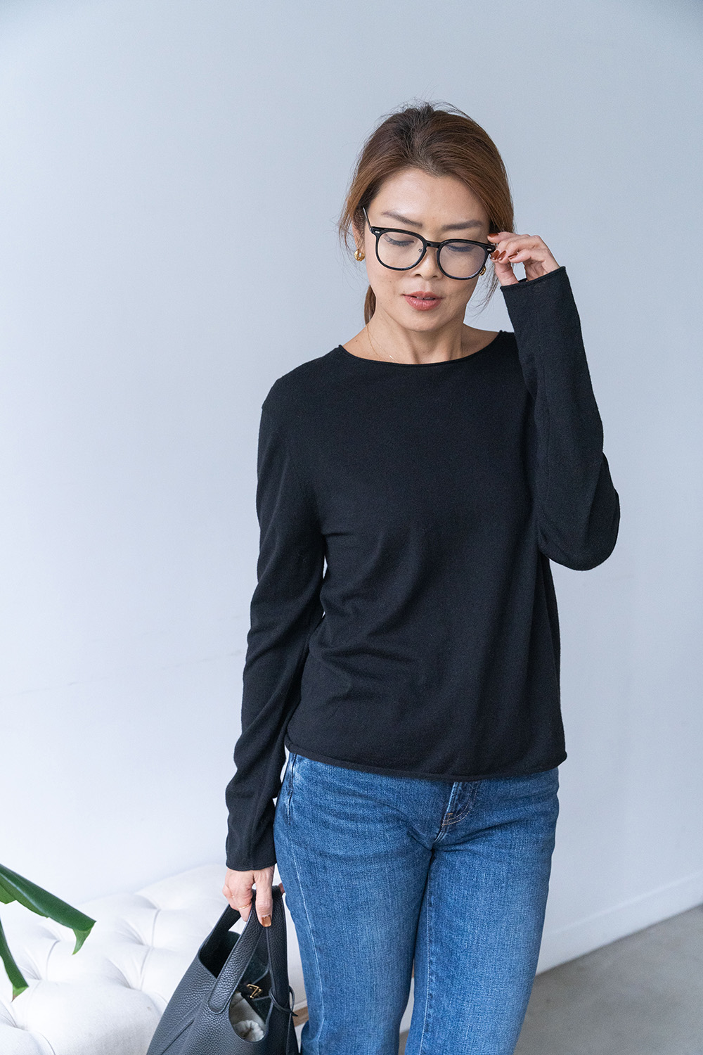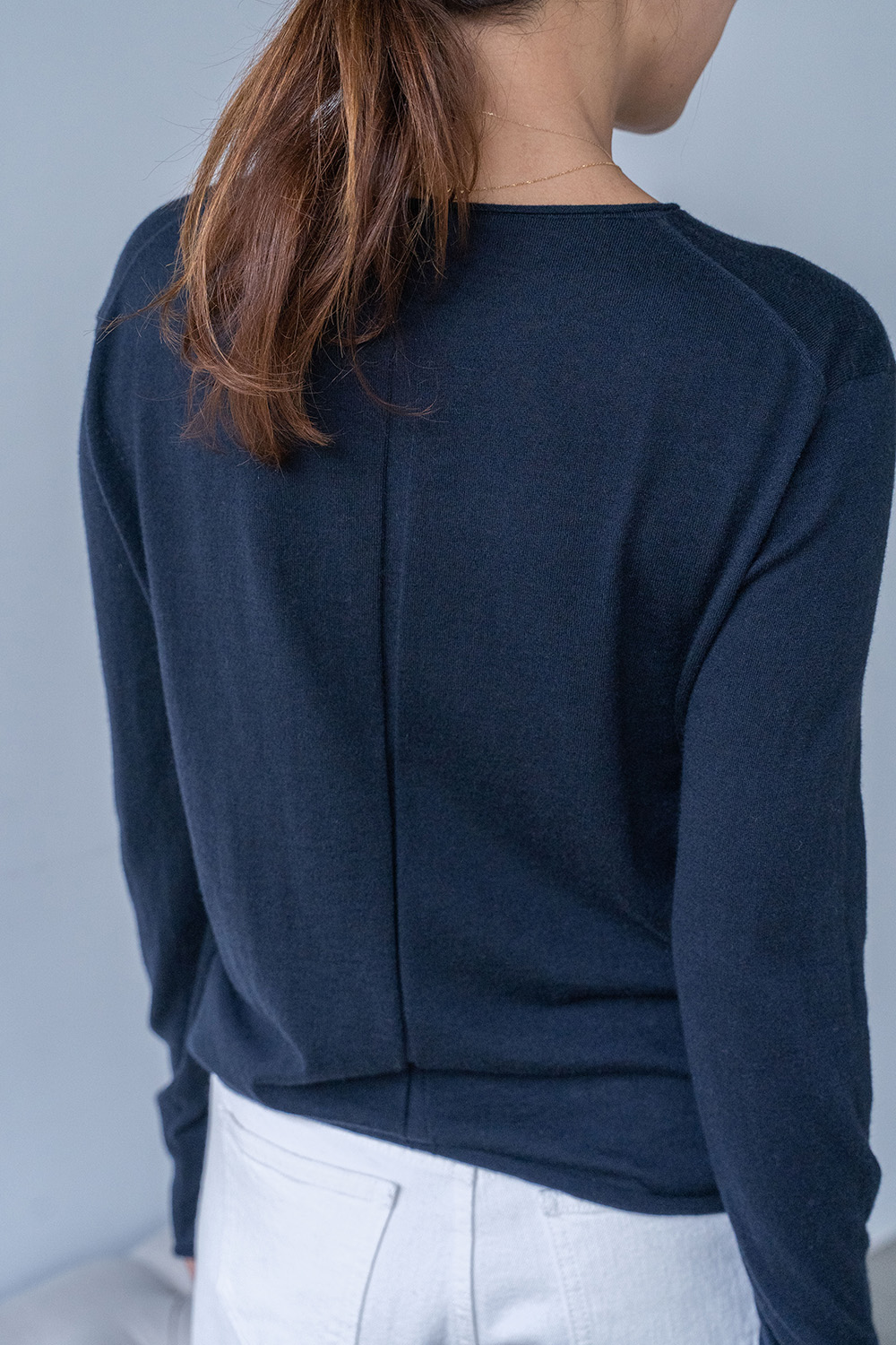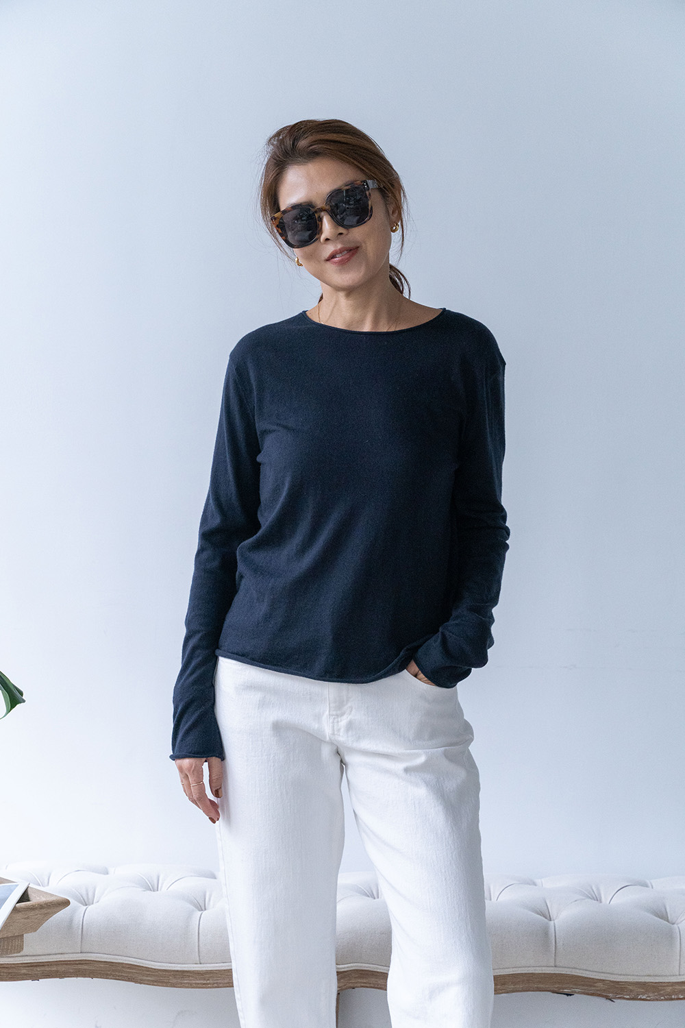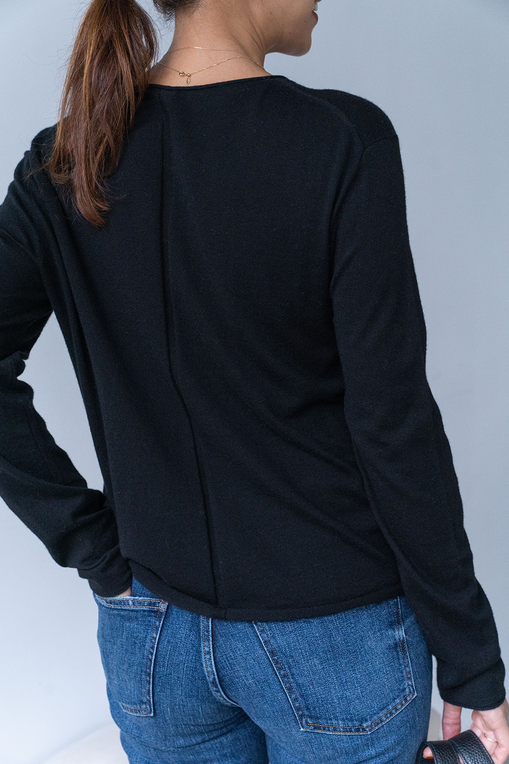 【搶先價】絲質羊絨後壓線捲邊長袖上衣 01030212