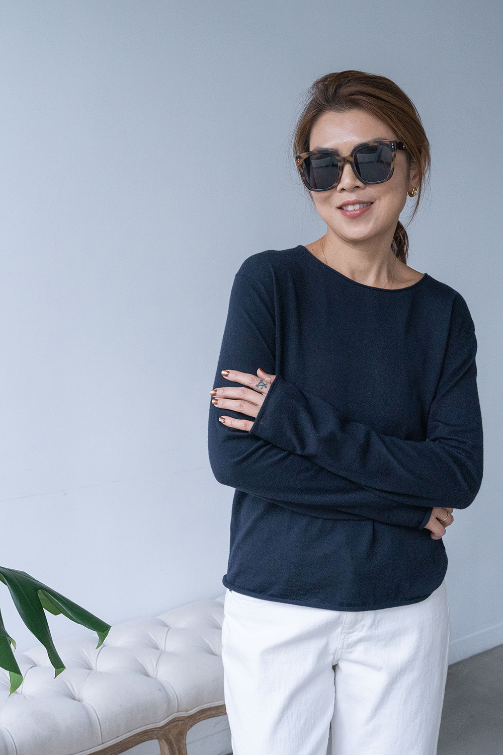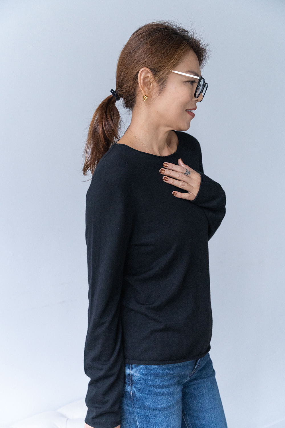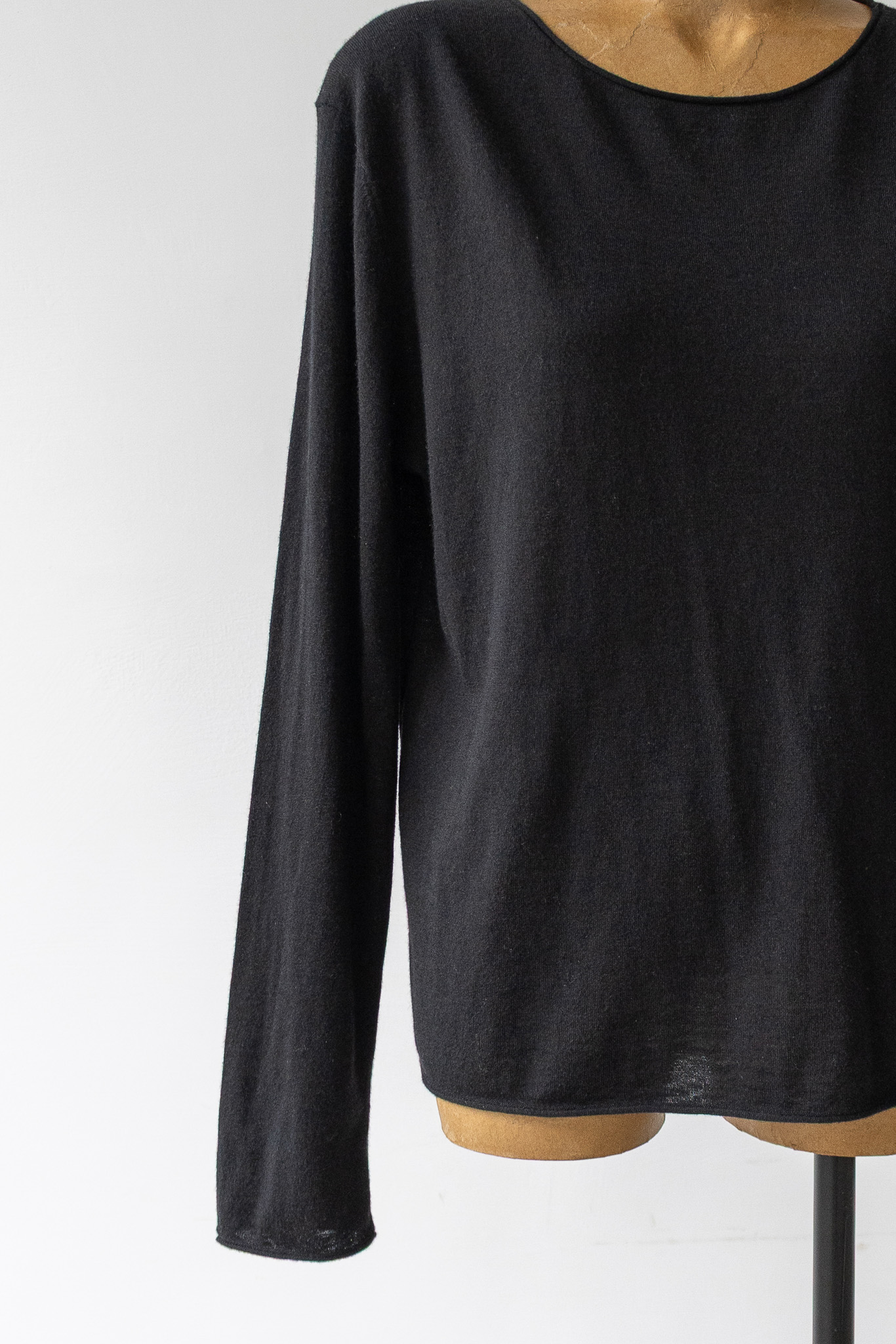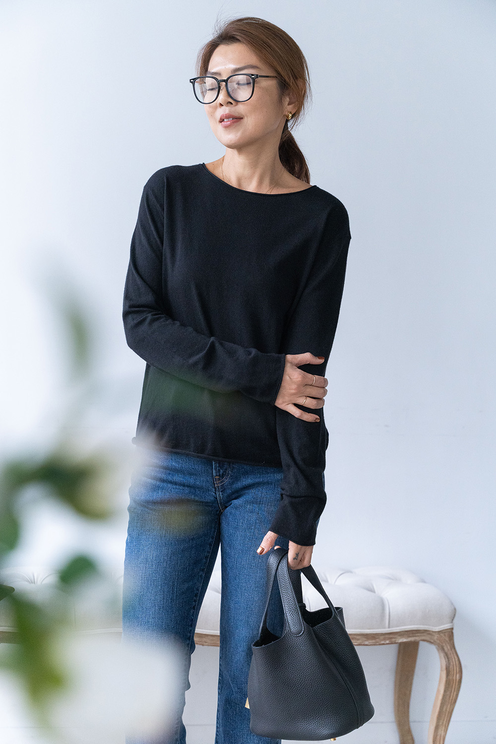 【搶先價】絲質羊絨後壓線捲邊長袖上衣 01030212