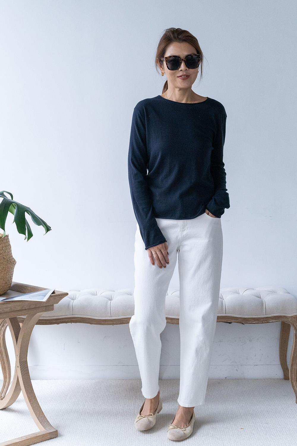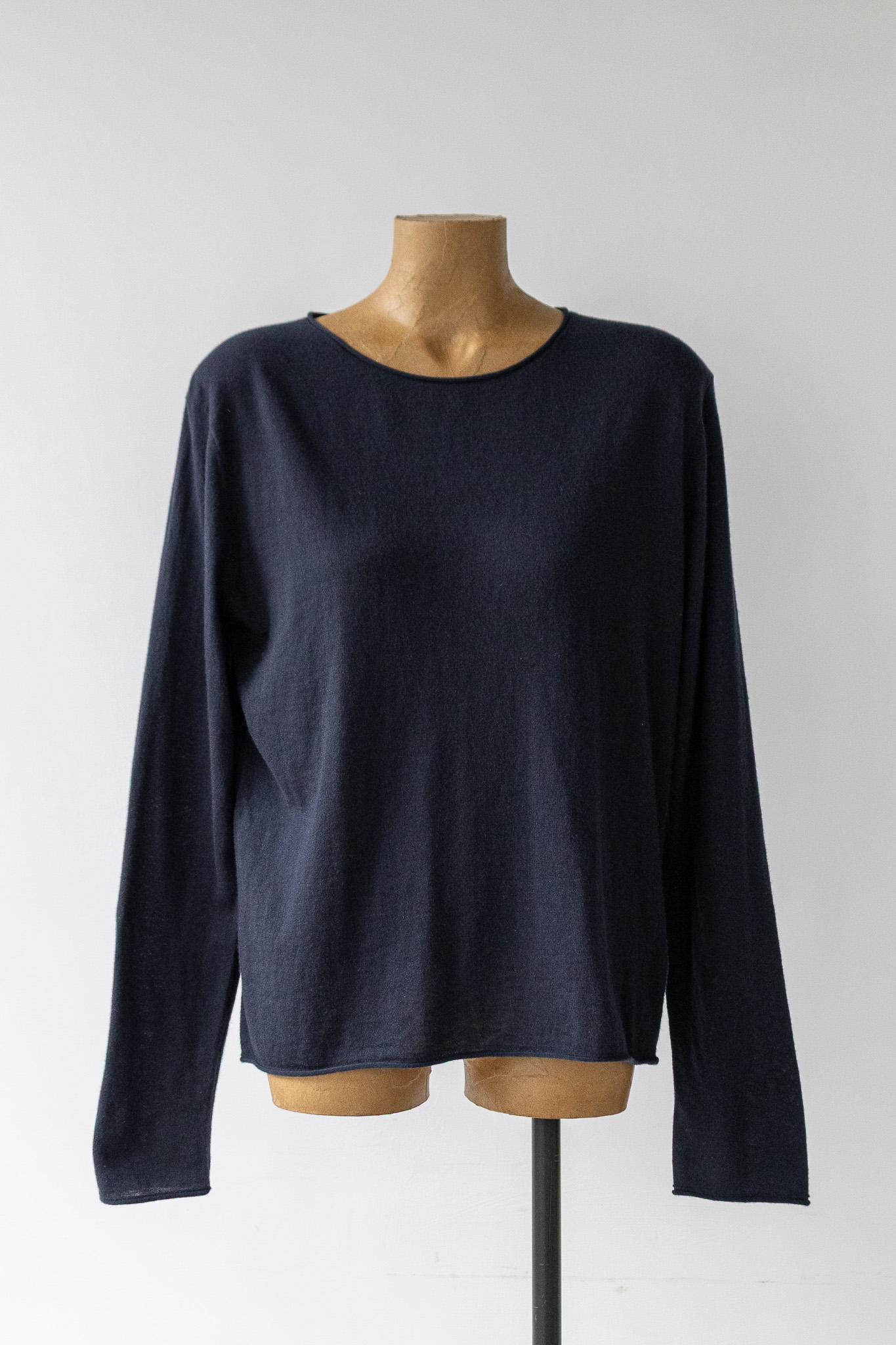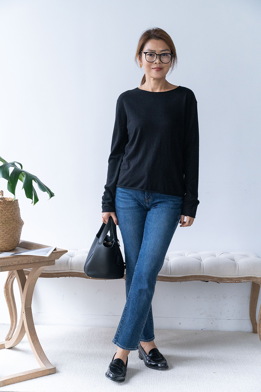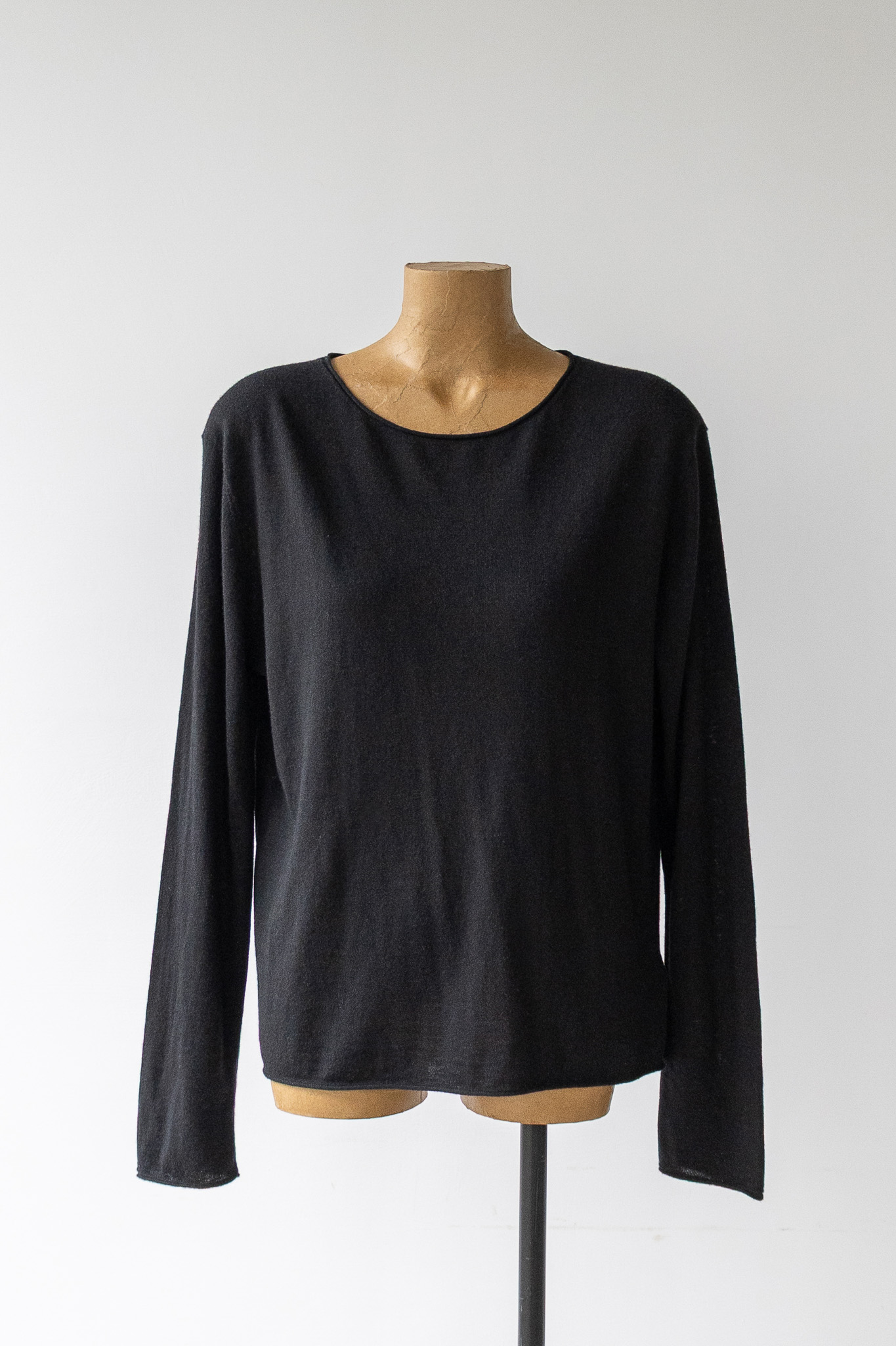 【搶先價】絲質羊絨後壓線捲邊長袖上衣 01030212