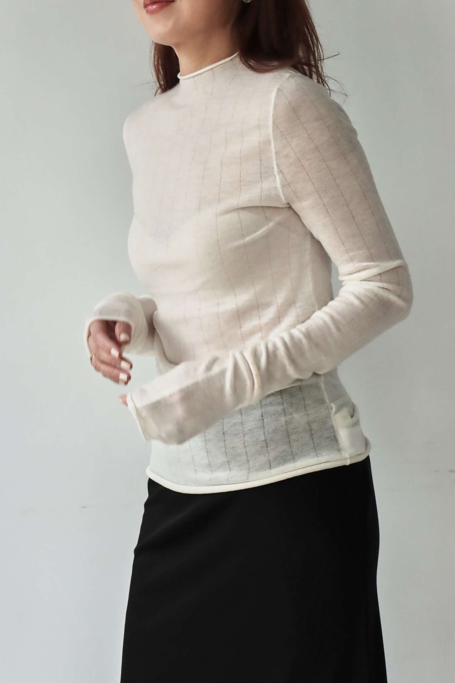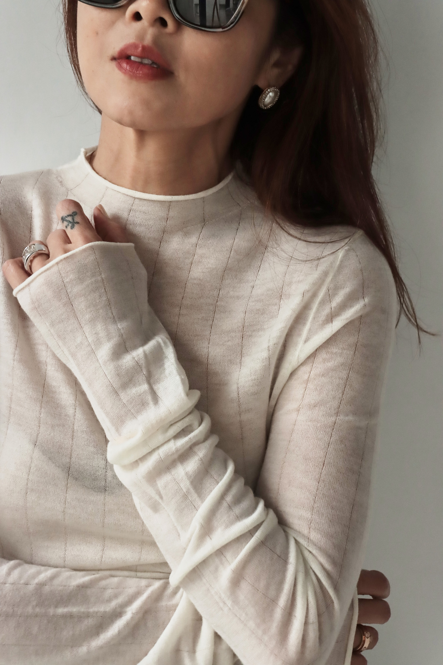 超輕透小高圓領針織柔感羊毛打底衫 01030217