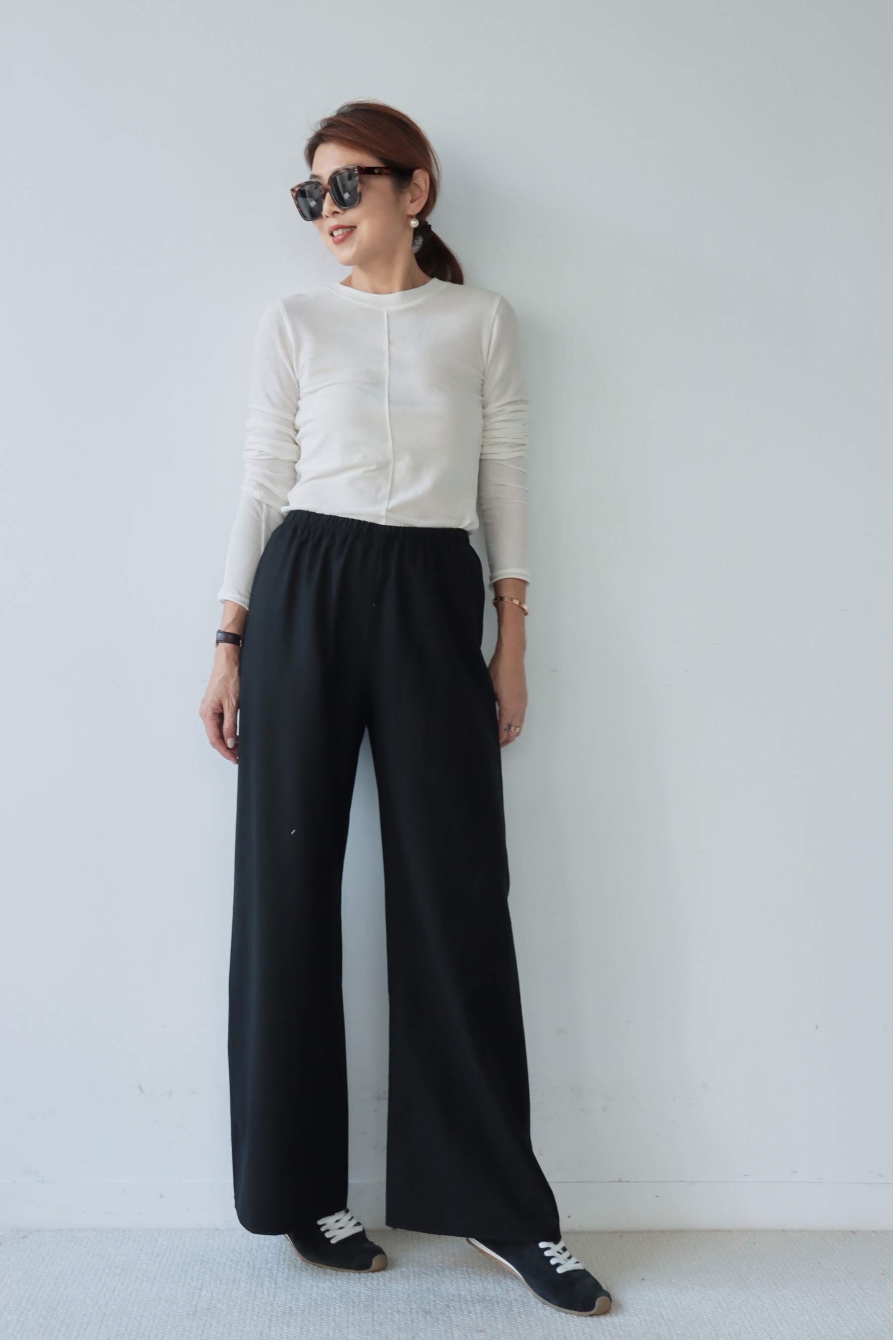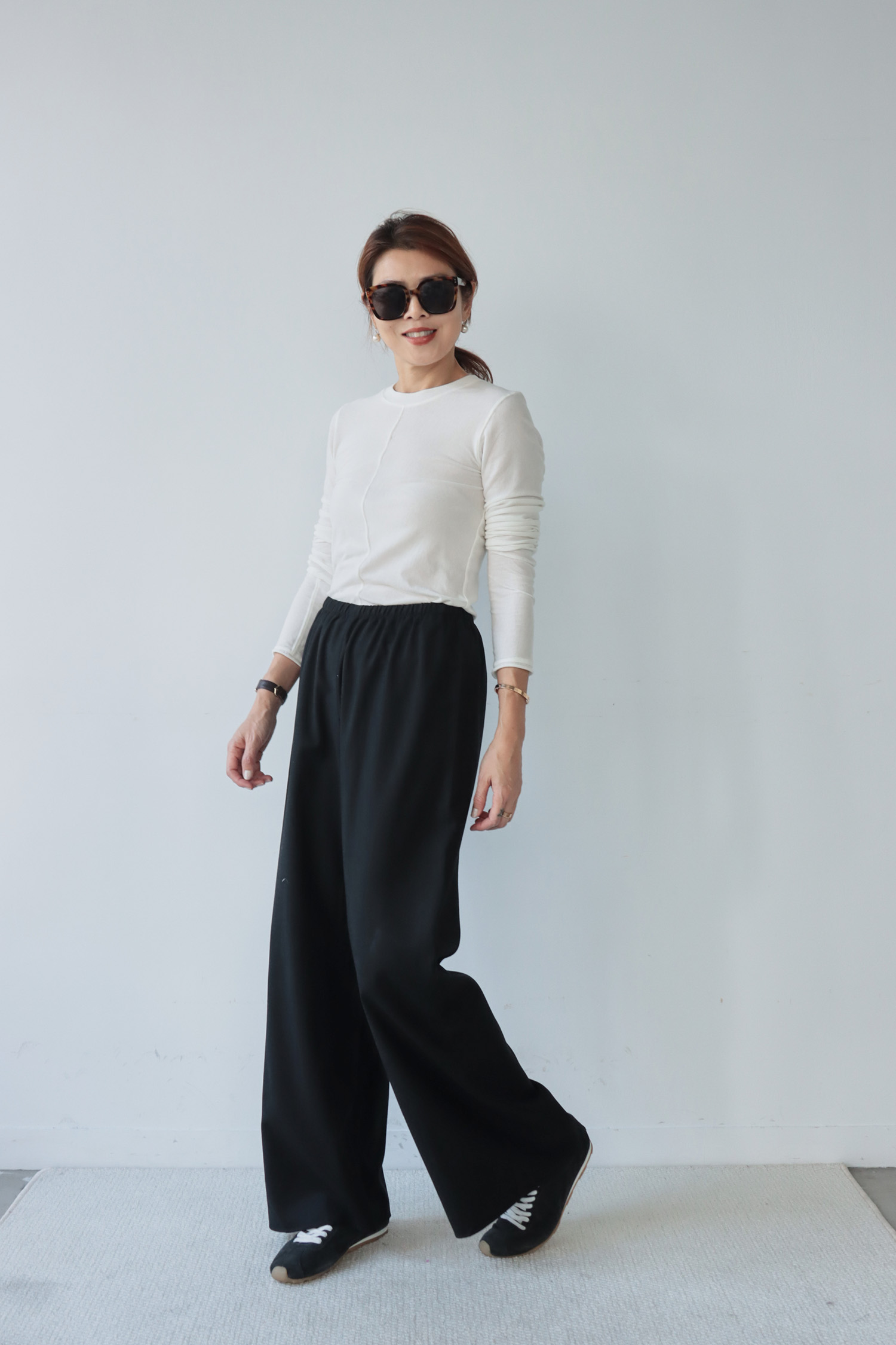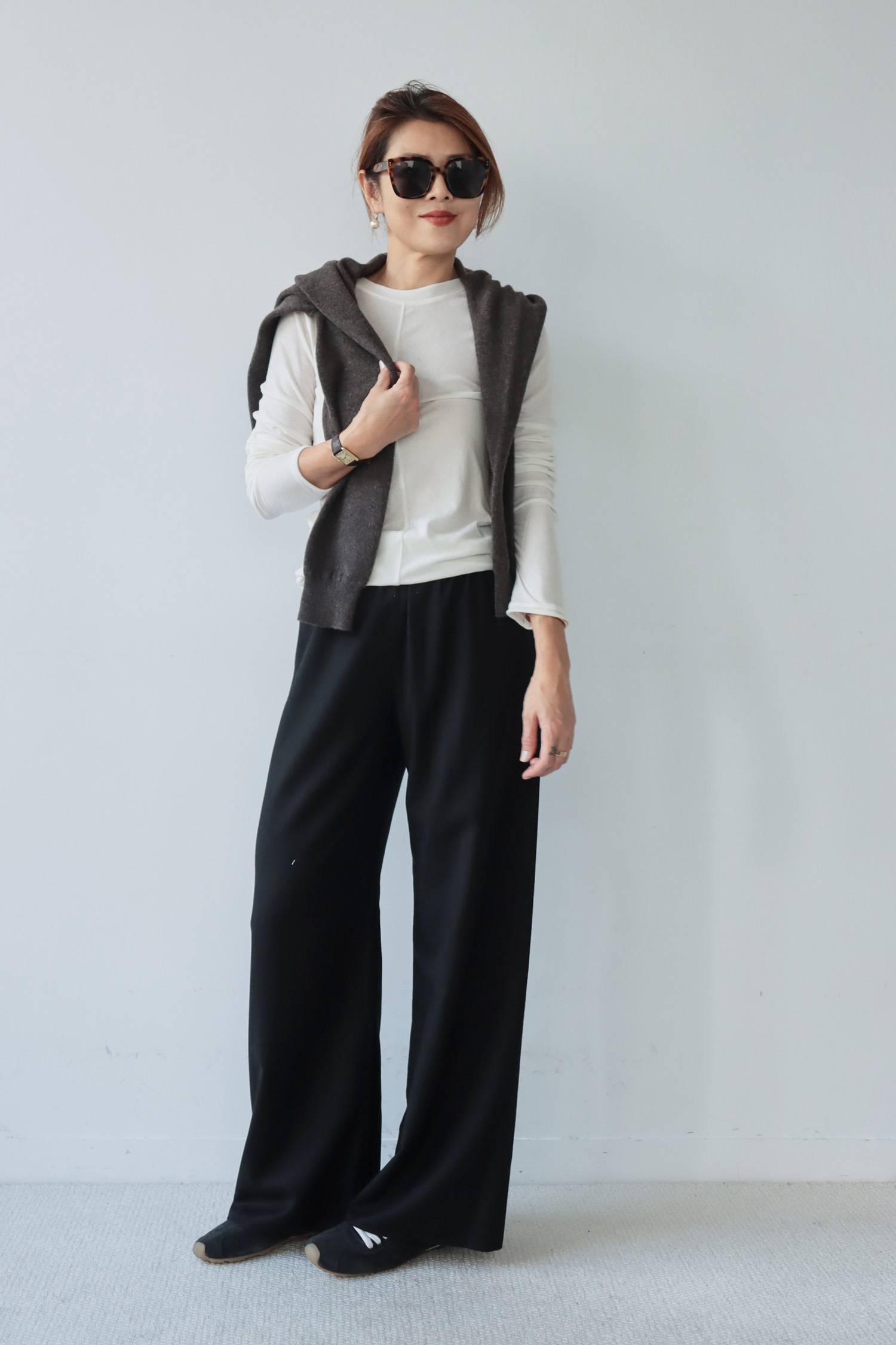 ・選用100% 羊毛面料,質地細緻柔軟,兼具保暖度與自然垂墜感,輕鬆自在適合長時間穿著。鬆緊腰頭結合無抽繩細節減少視覺負擔,保持俐落外型,同時提供舒適貼合的穿著體驗,整體寬鬆版型搭配自然垂墜線條,在舒適與比例之間取得完美平衡。
