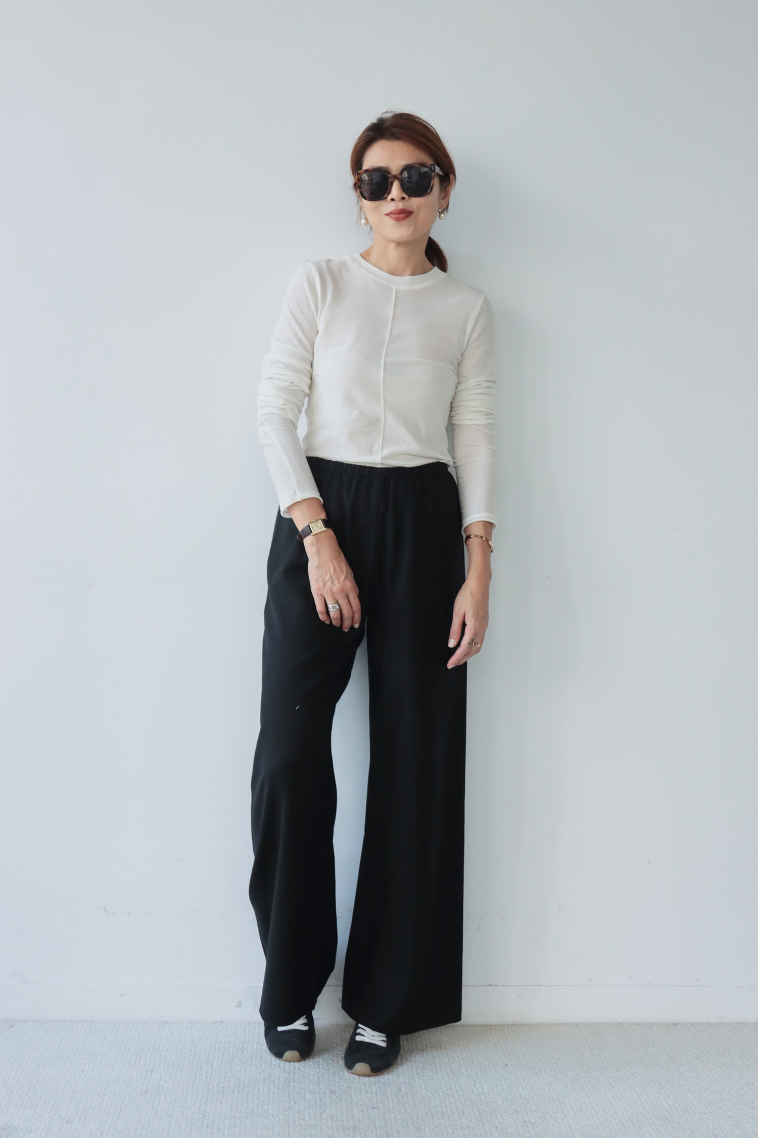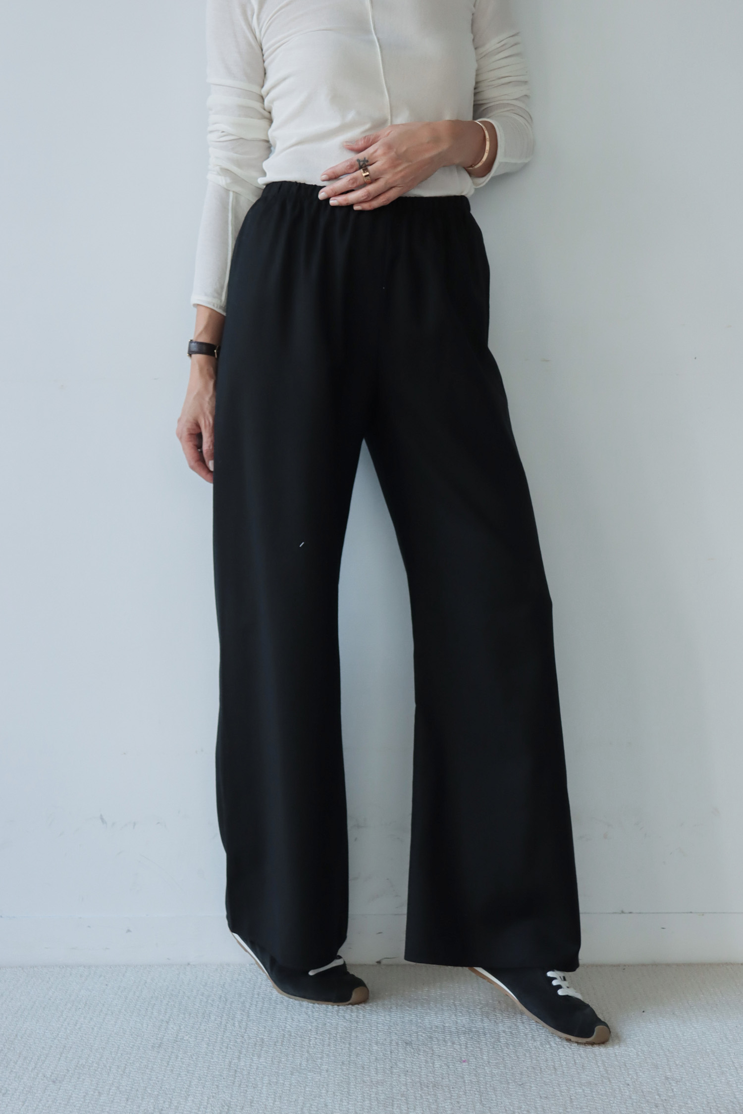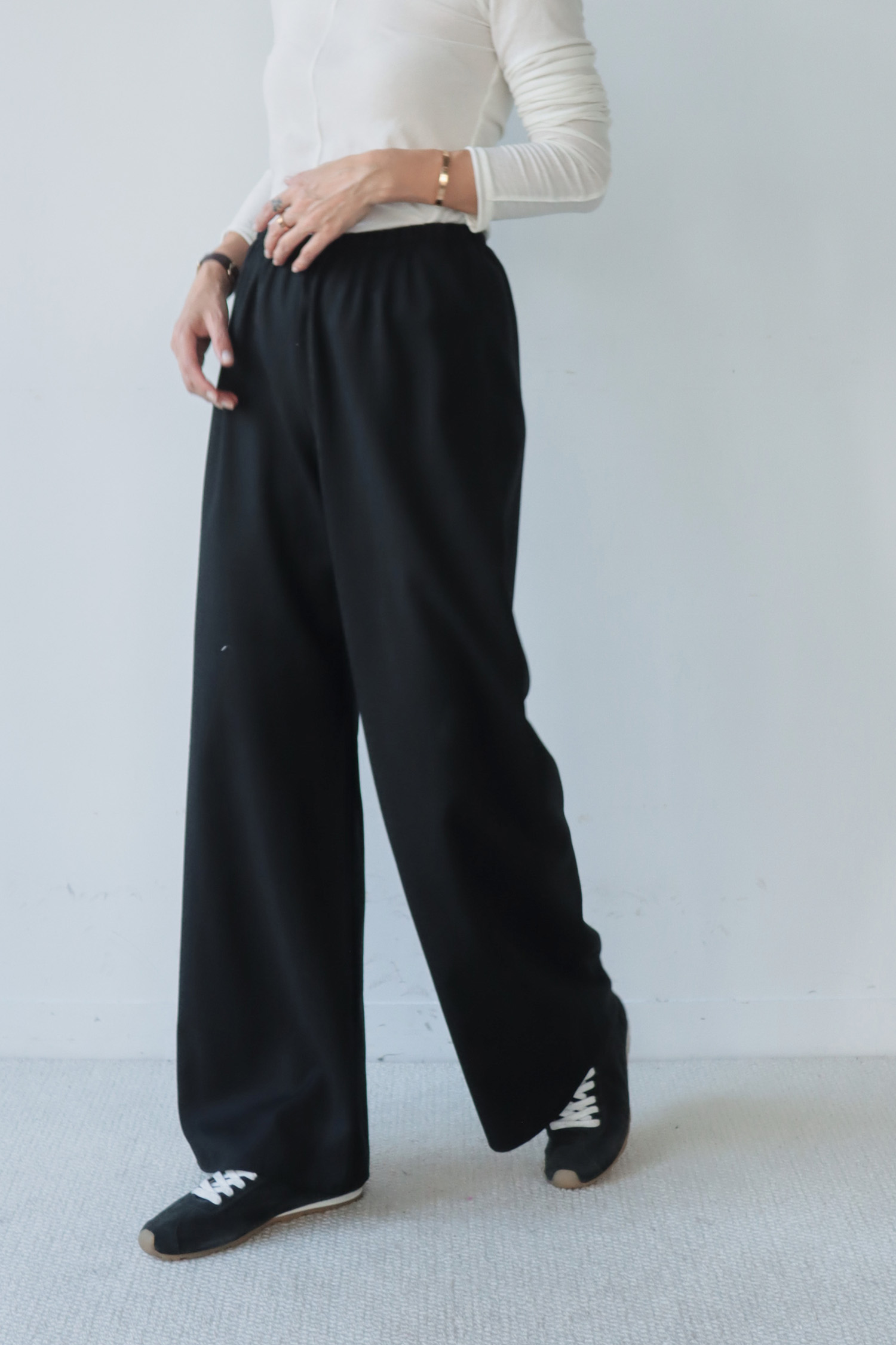 ・選用100% 羊毛面料,質地細緻柔軟,兼具保暖度與自然垂墜感,輕鬆自在適合長時間穿著。鬆緊腰頭結合無抽繩細節減少視覺負擔,保持俐落外型,同時提供舒適貼合的穿著體驗,整體寬鬆版型搭配自然垂墜線條,在舒適與比例之間取得完美平衡。