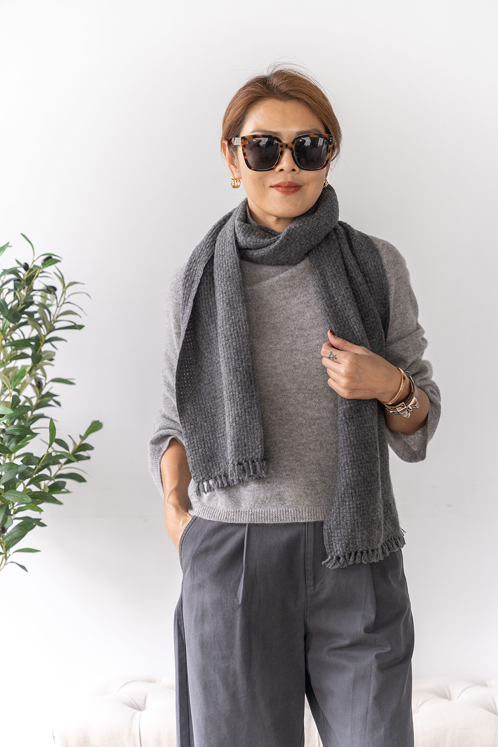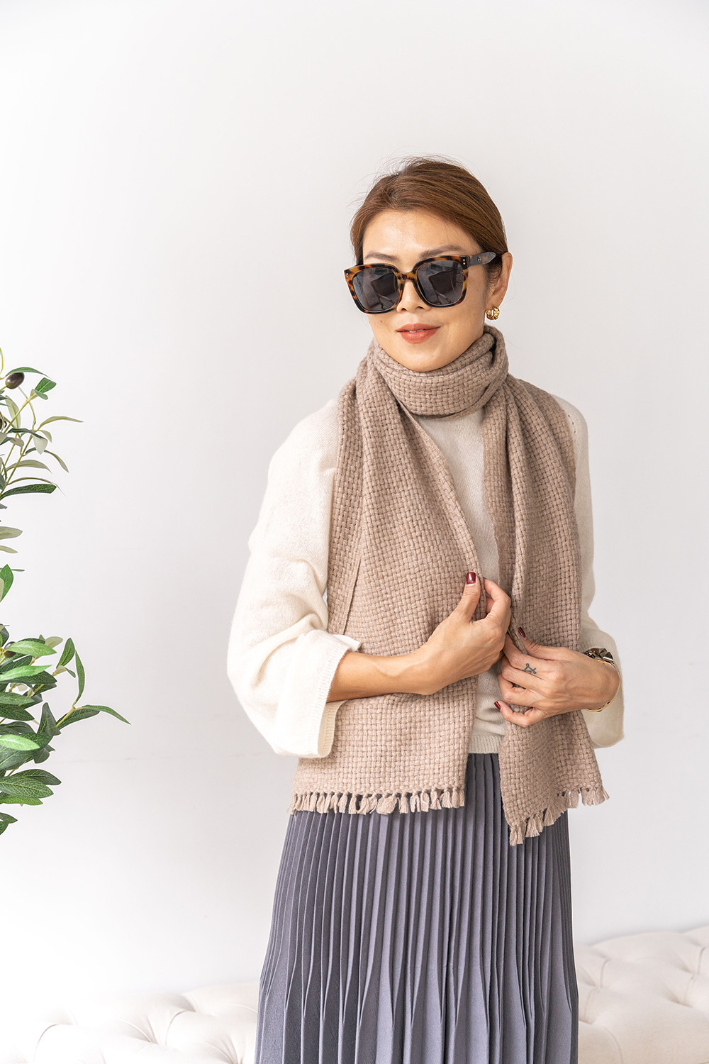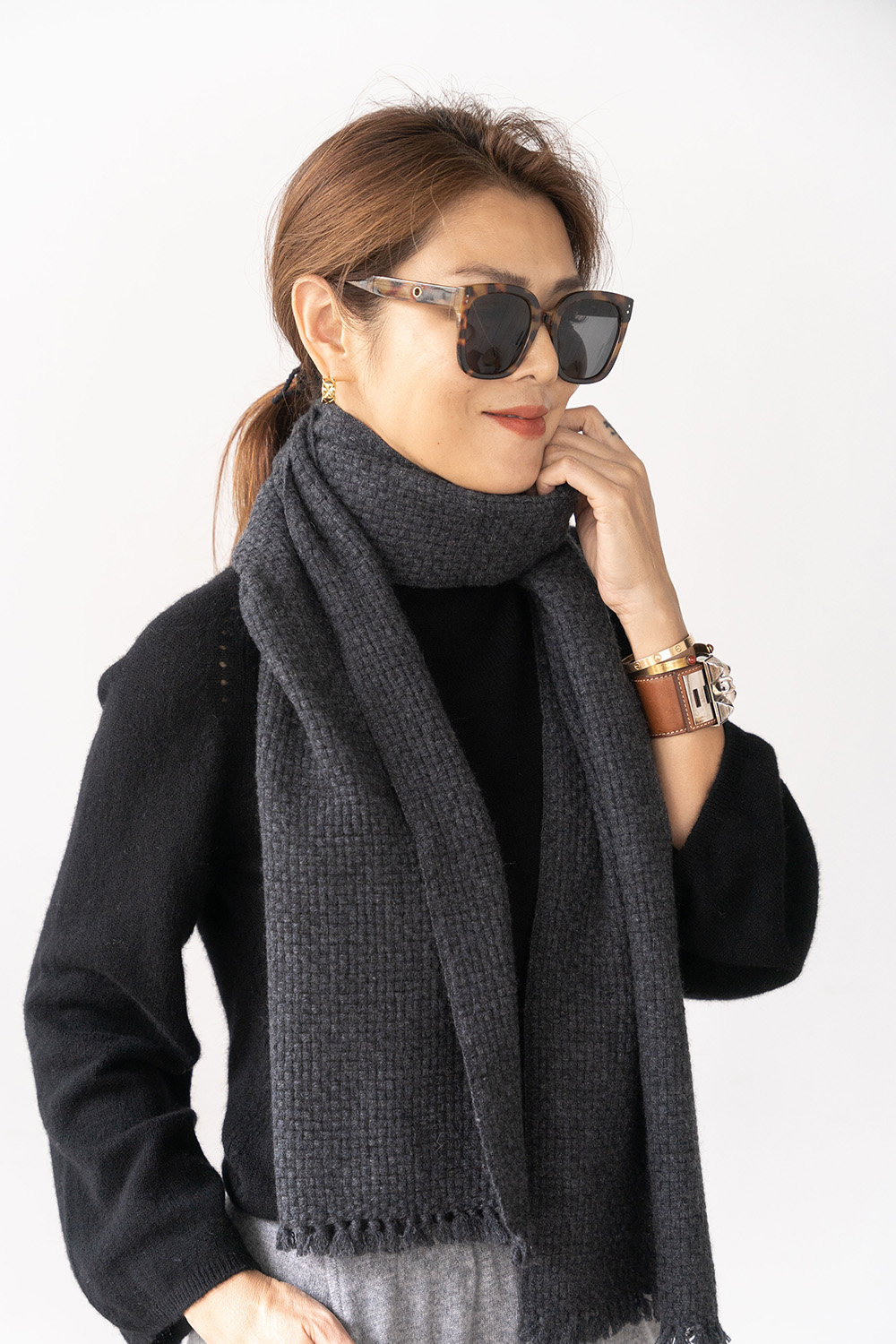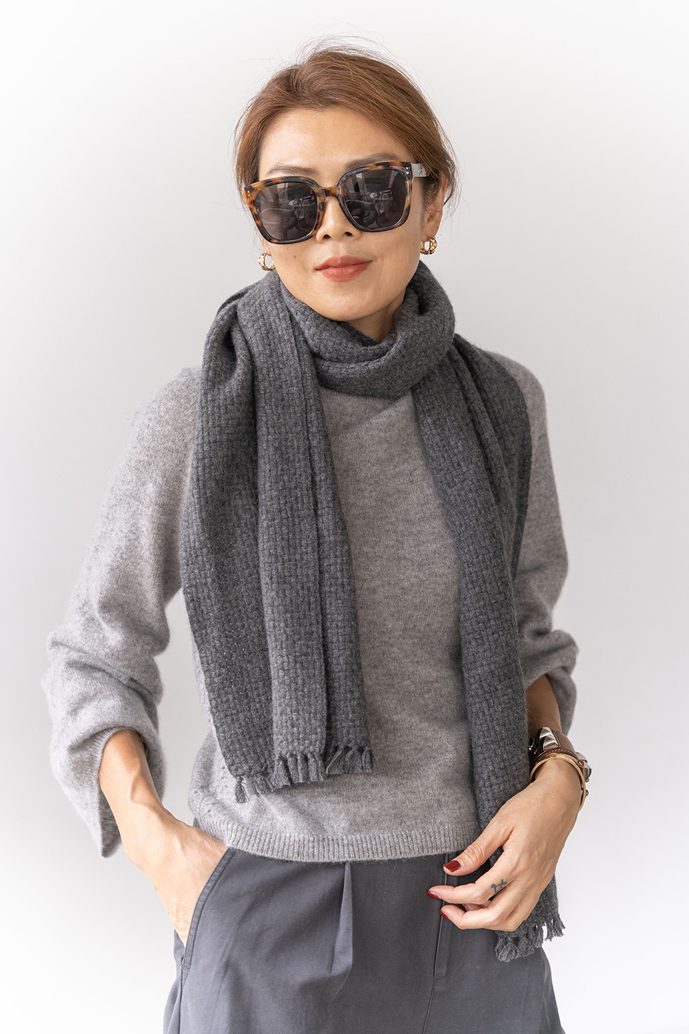 100% Cashmere 編織款圍巾 09010081