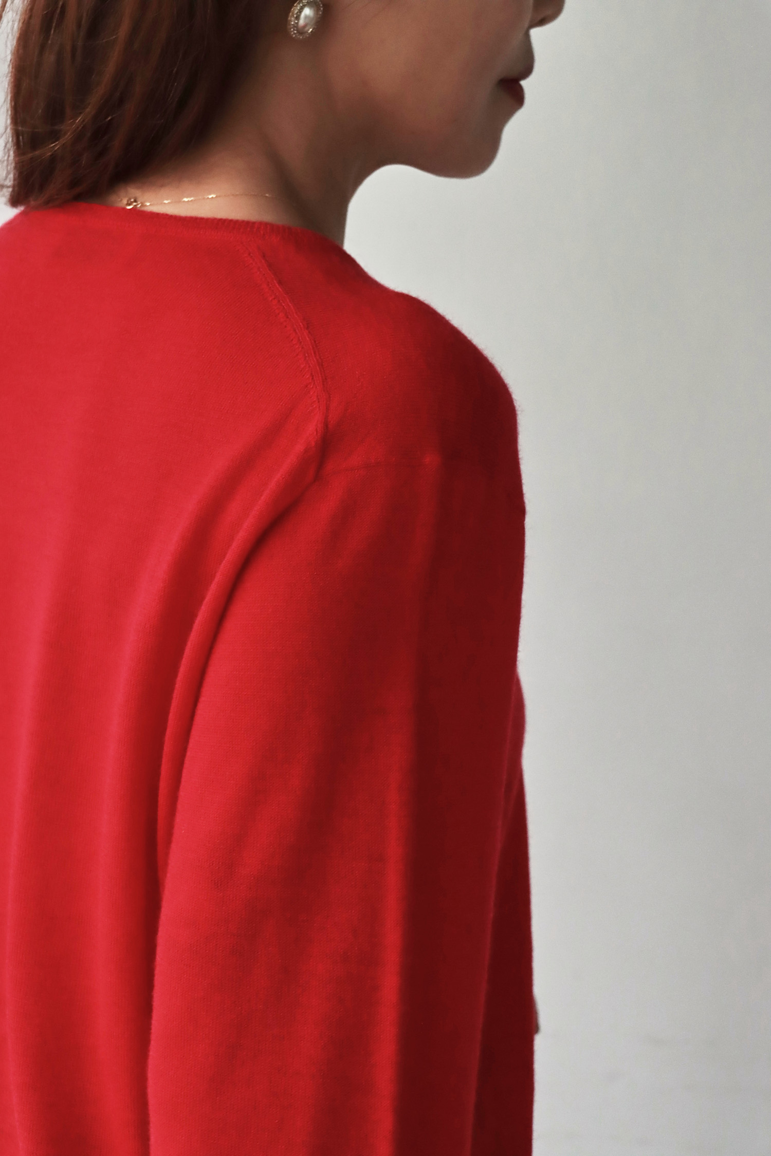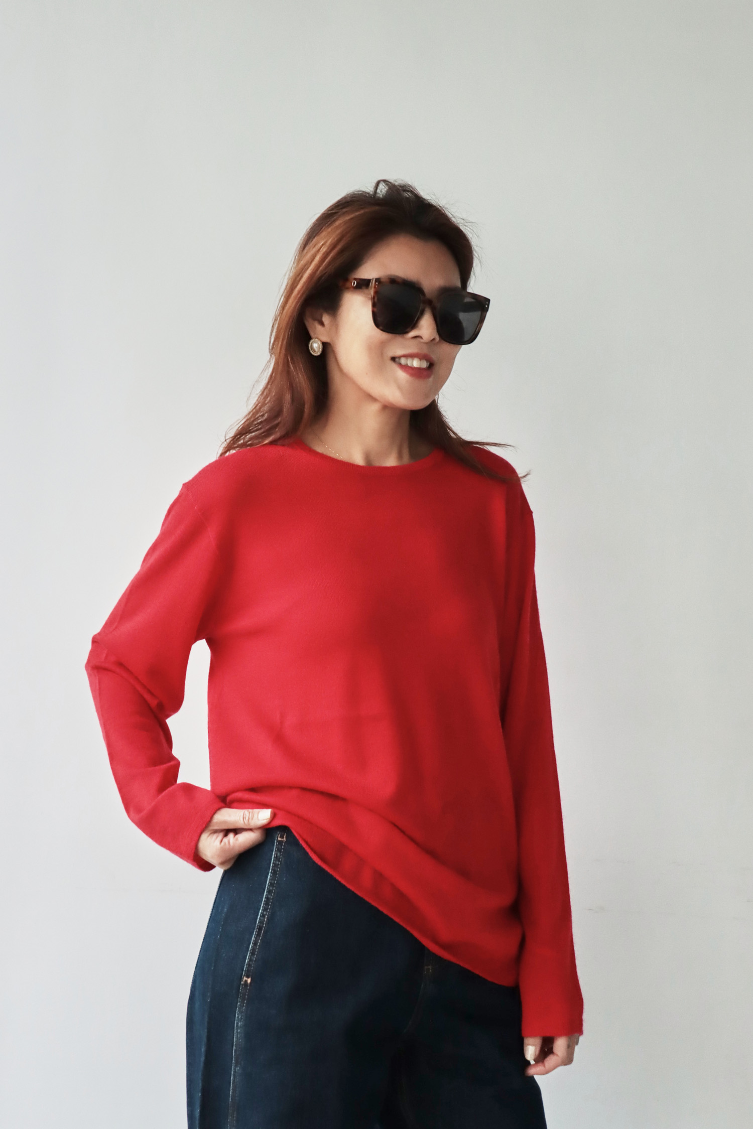 ・採用70% Wool + 30% Cashmere混紡材質,兼具羊毛的保暖結構感與羊絨的柔軟細膩,寬鬆落肩設計,輪廓自然慵懶,穿著舒適不拘束;衣身薄款密織,質感平整細膩簡約百搭,適合單穿或層次搭配,結合細緻的羅紋收邊提升整體完成度,使線條更俐落耐看。