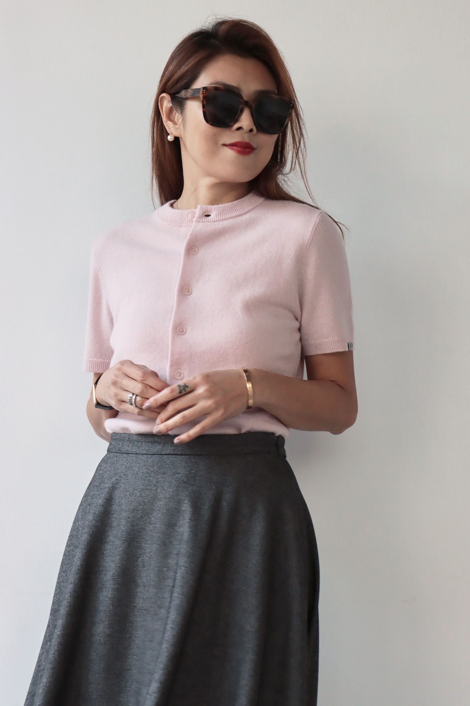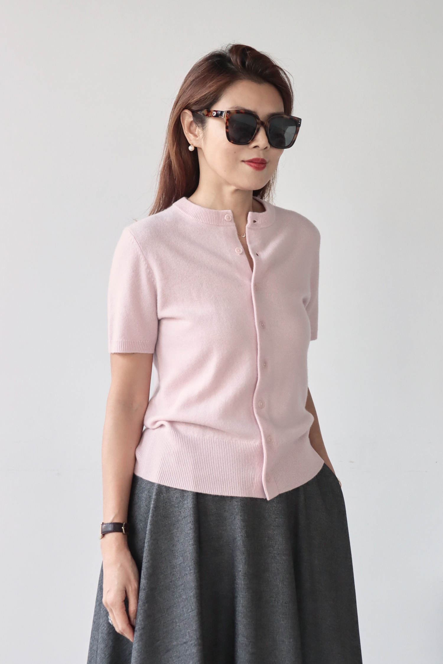 ・採用 90% 羊毛(Wool)與 10% 喀什米爾(Cashmere)混紡的細軟絨感紗線,觸感親膚柔軟、不刺癢,帶來舒適溫潤的穿著體驗;下擺螺紋縮口勾勒腰線,即使不紮衣也能保持俐落有精神,自然修飾身形並拉長整體比例;細緻袖口縫線細節,讓衣身層次更加豐富,排釦設計兼具實穿性與造型變化,不論單穿或作為外罩都合適。