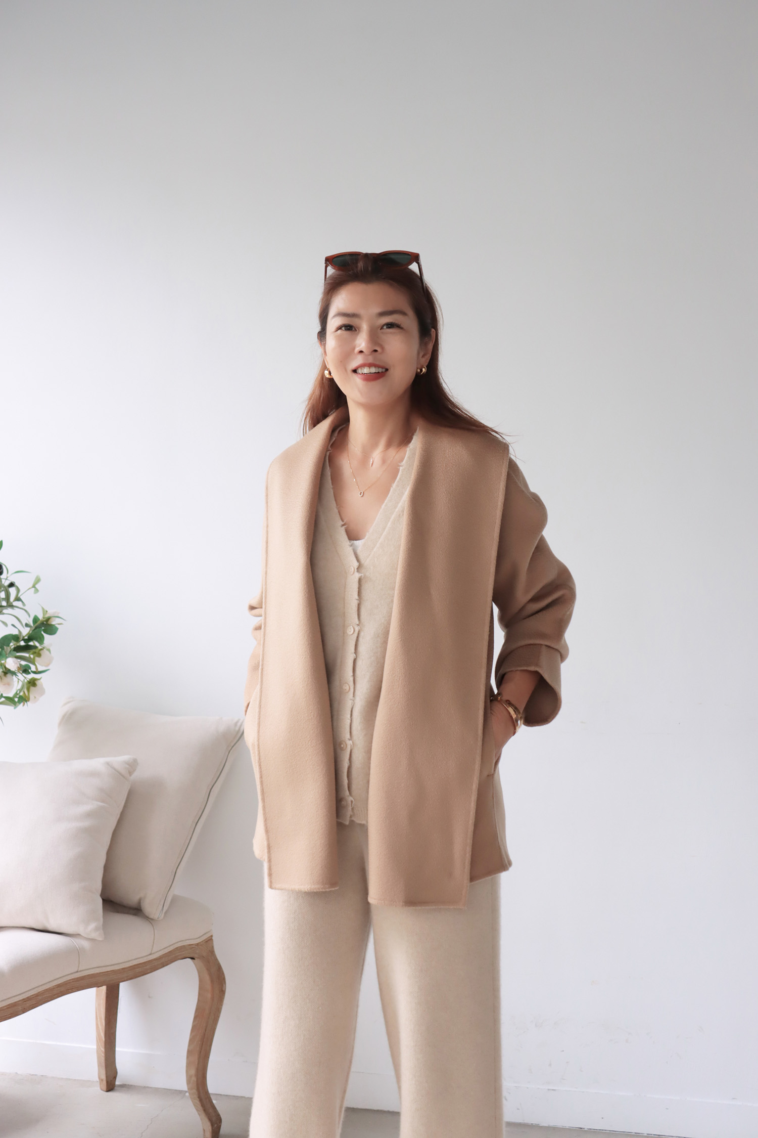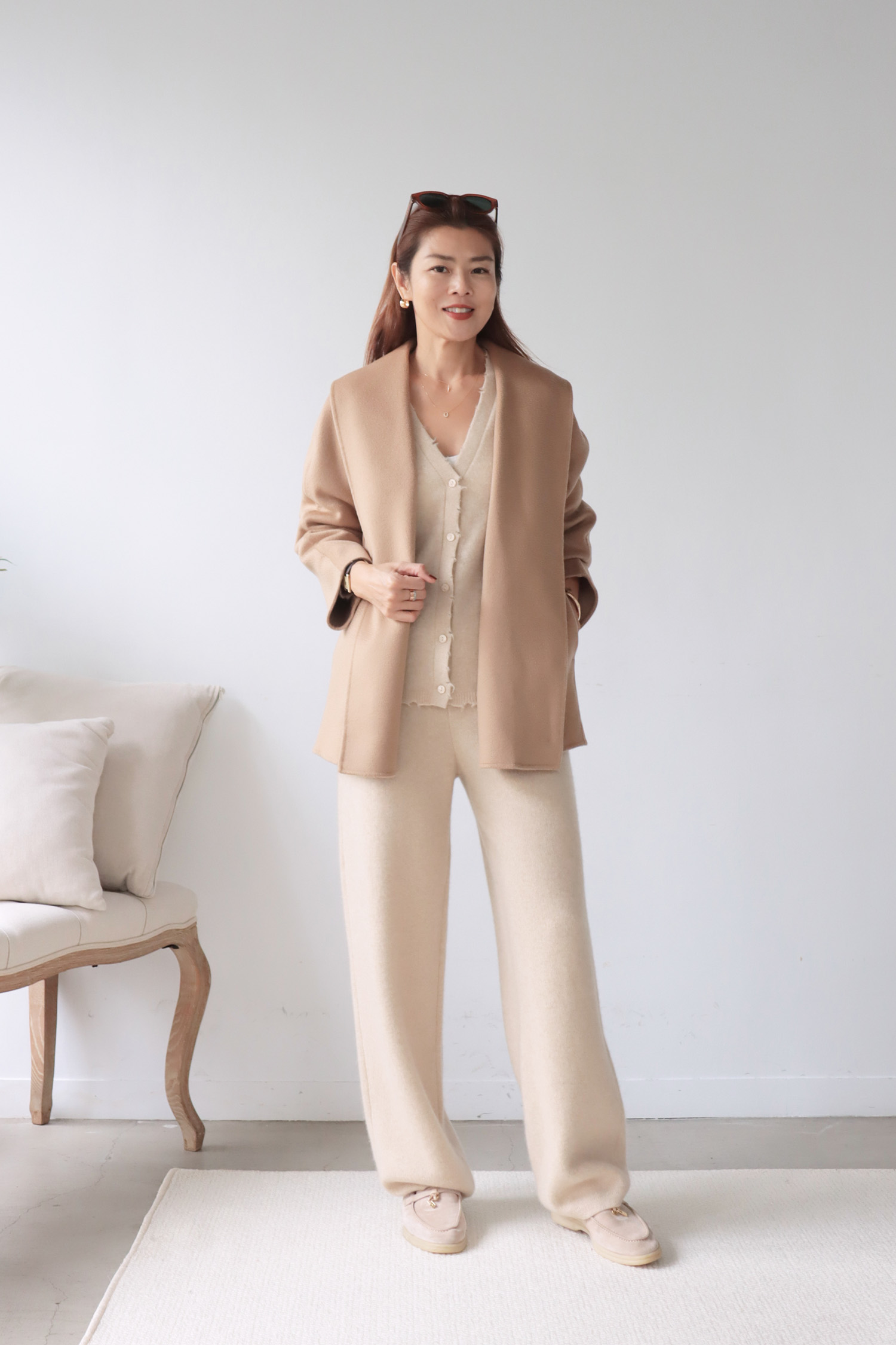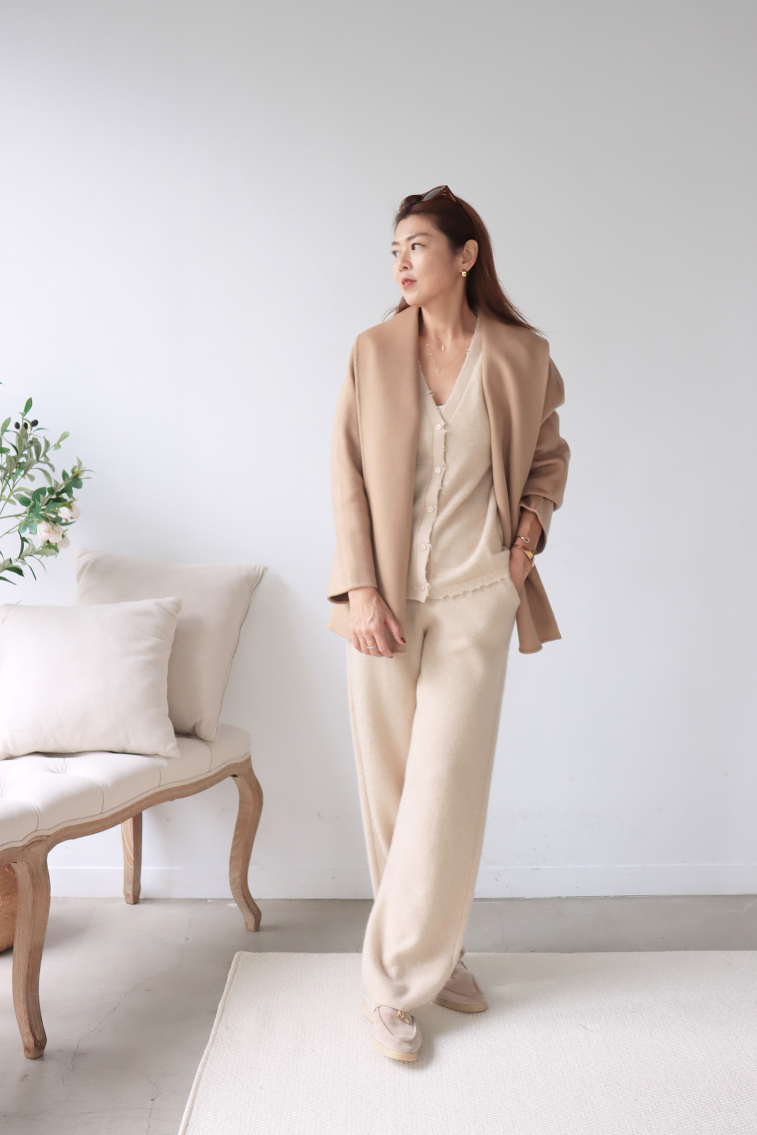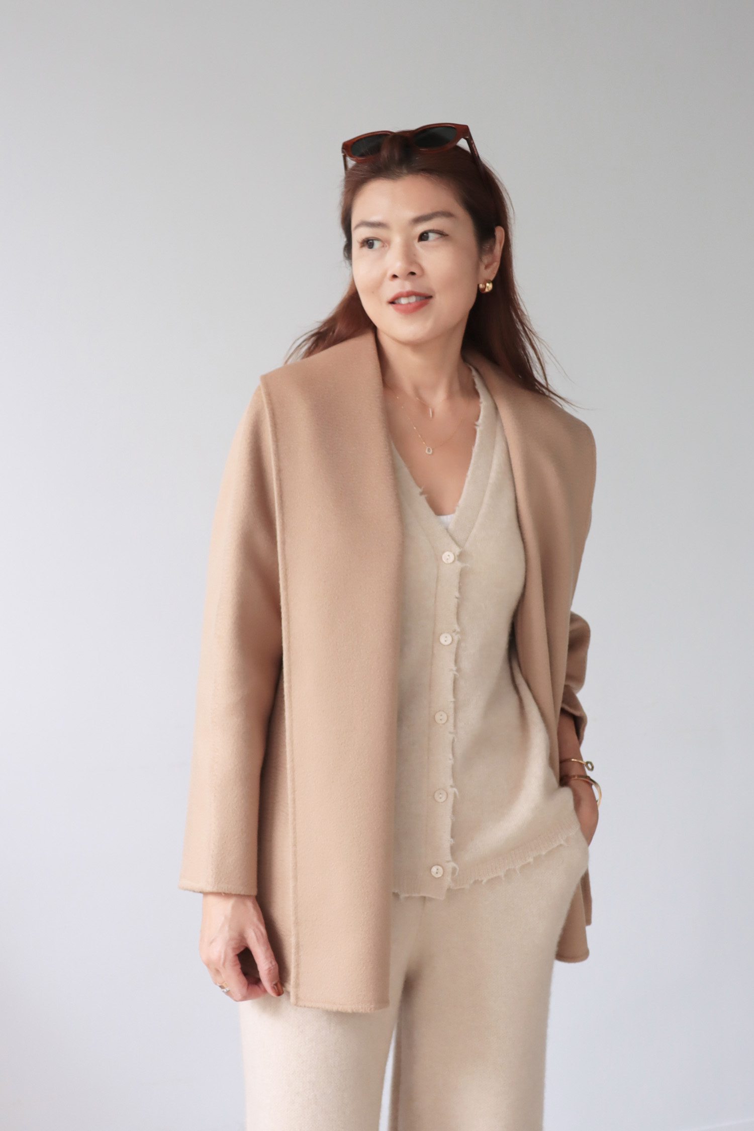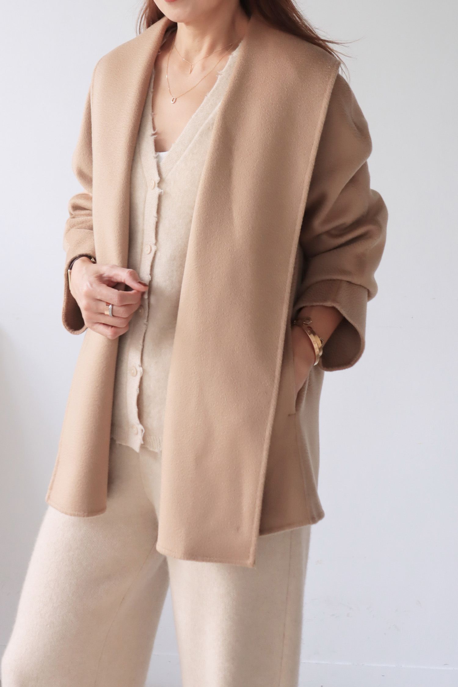 ・上衣-100% Cashmere 極簡羊絨V領開襟外套