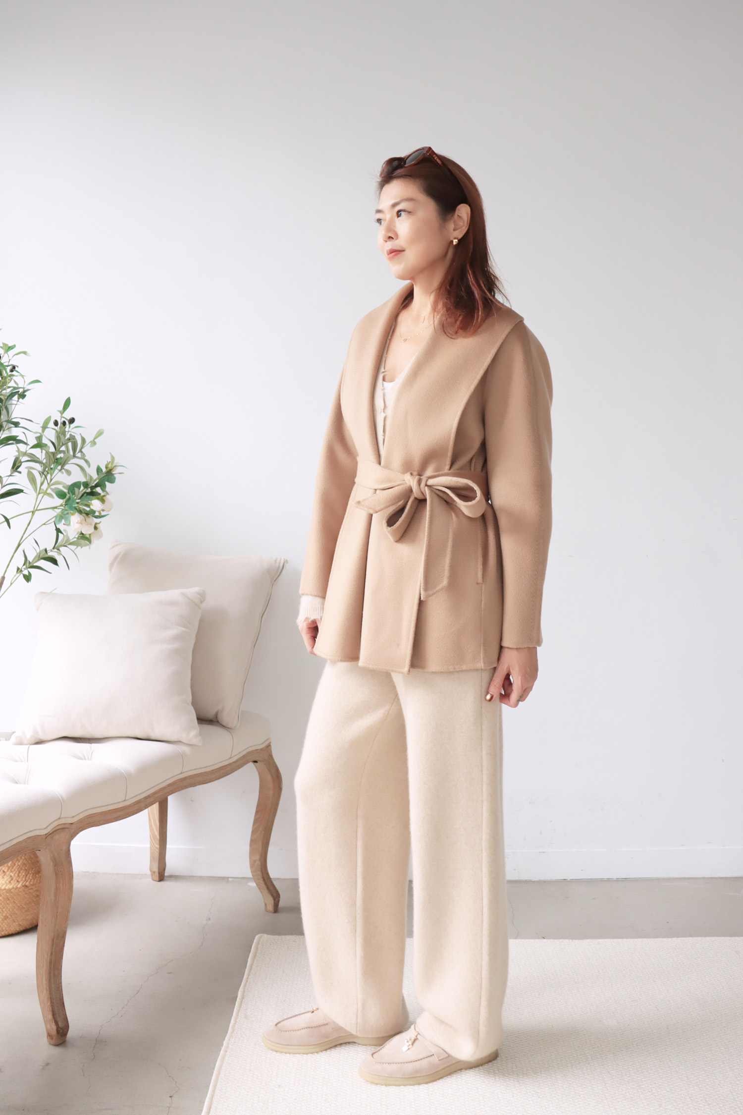 ・下身-100% Cashmere 厚磅羊絨直筒長褲—米