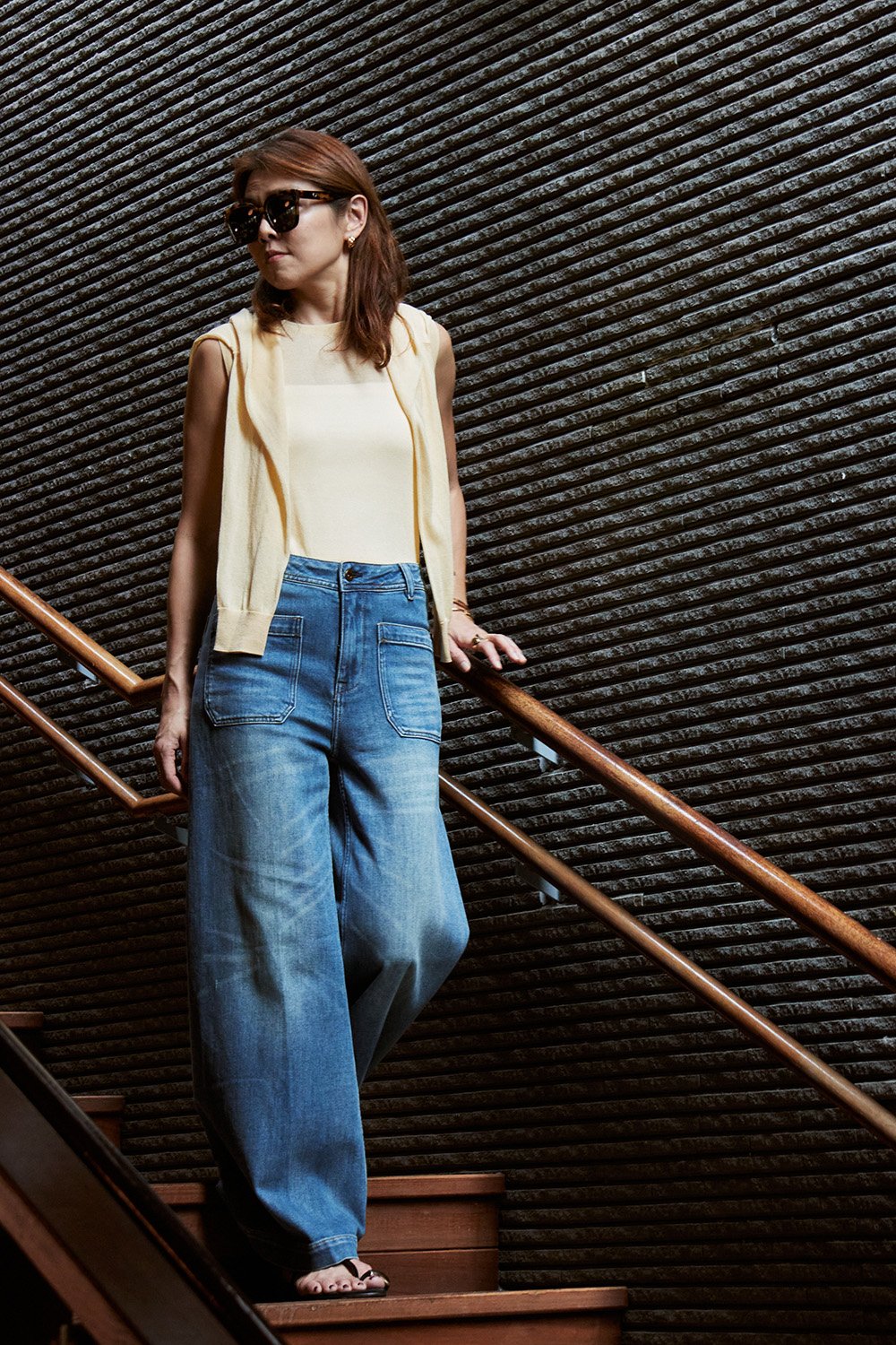 ・以細緻纖維交織出自然光澤與柔滑手感,穿上瞬間感受到輕盈貼膚的舒適,布料自然垂墜,貼合身形卻不緊繃,修飾副乳線條,下擺收邊設計讓整體更有結構感,整體線條乾淨俐落,呈現不費力的從容氣質。可與「輕透天絲醋酸開襟長袖上衣」搭配穿著,展現一致且富有層次的整體造型感。