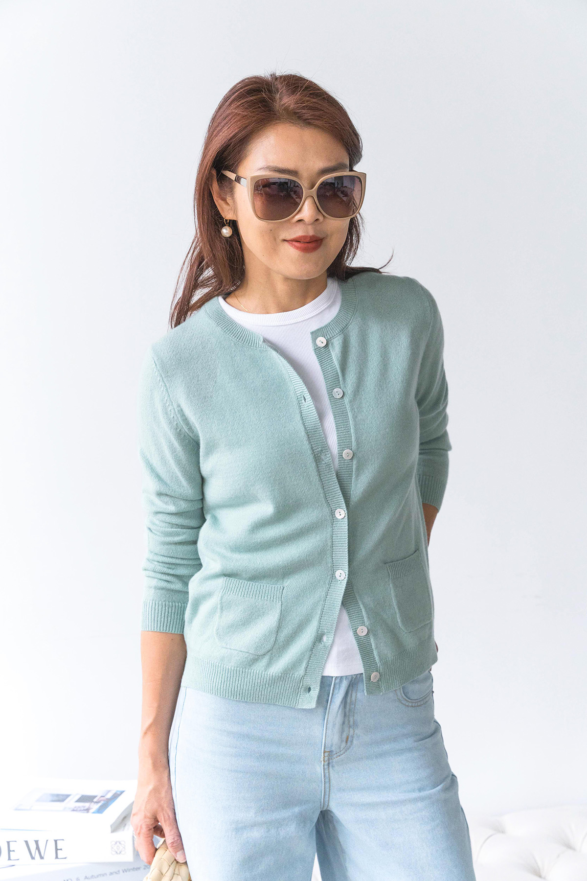 【包色優惠】100% Cashmere V領開襟輕羽短版針織外套