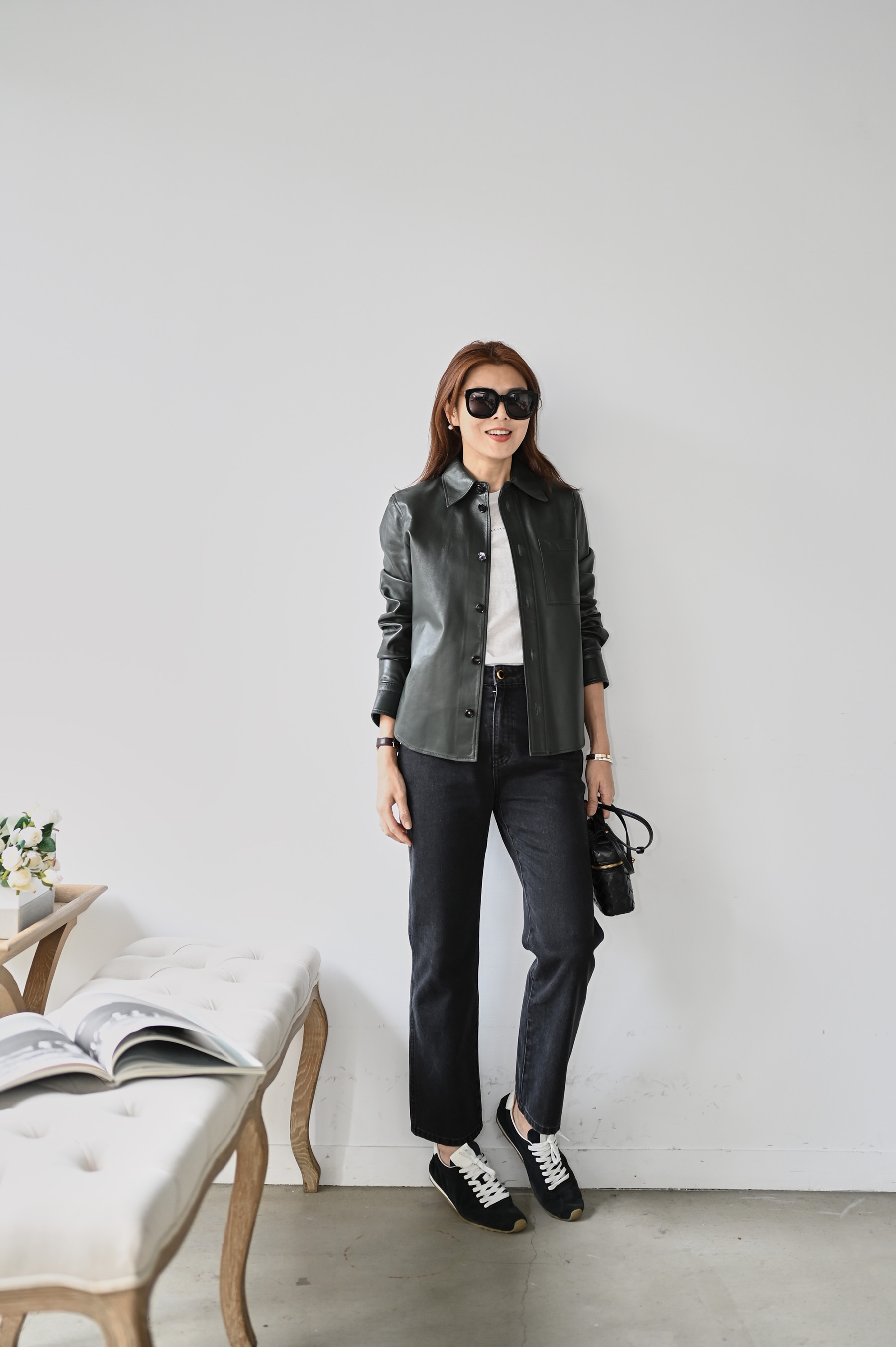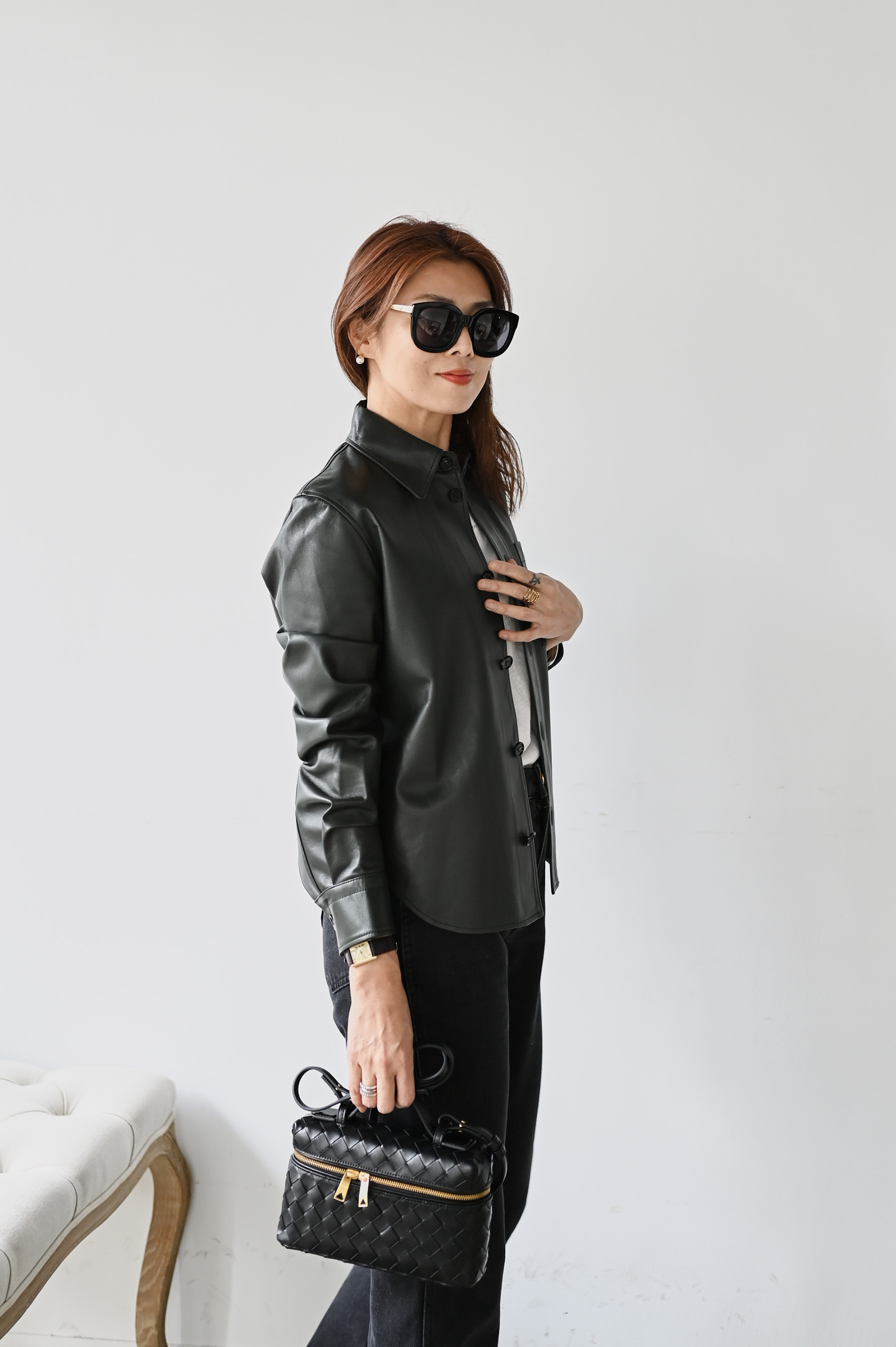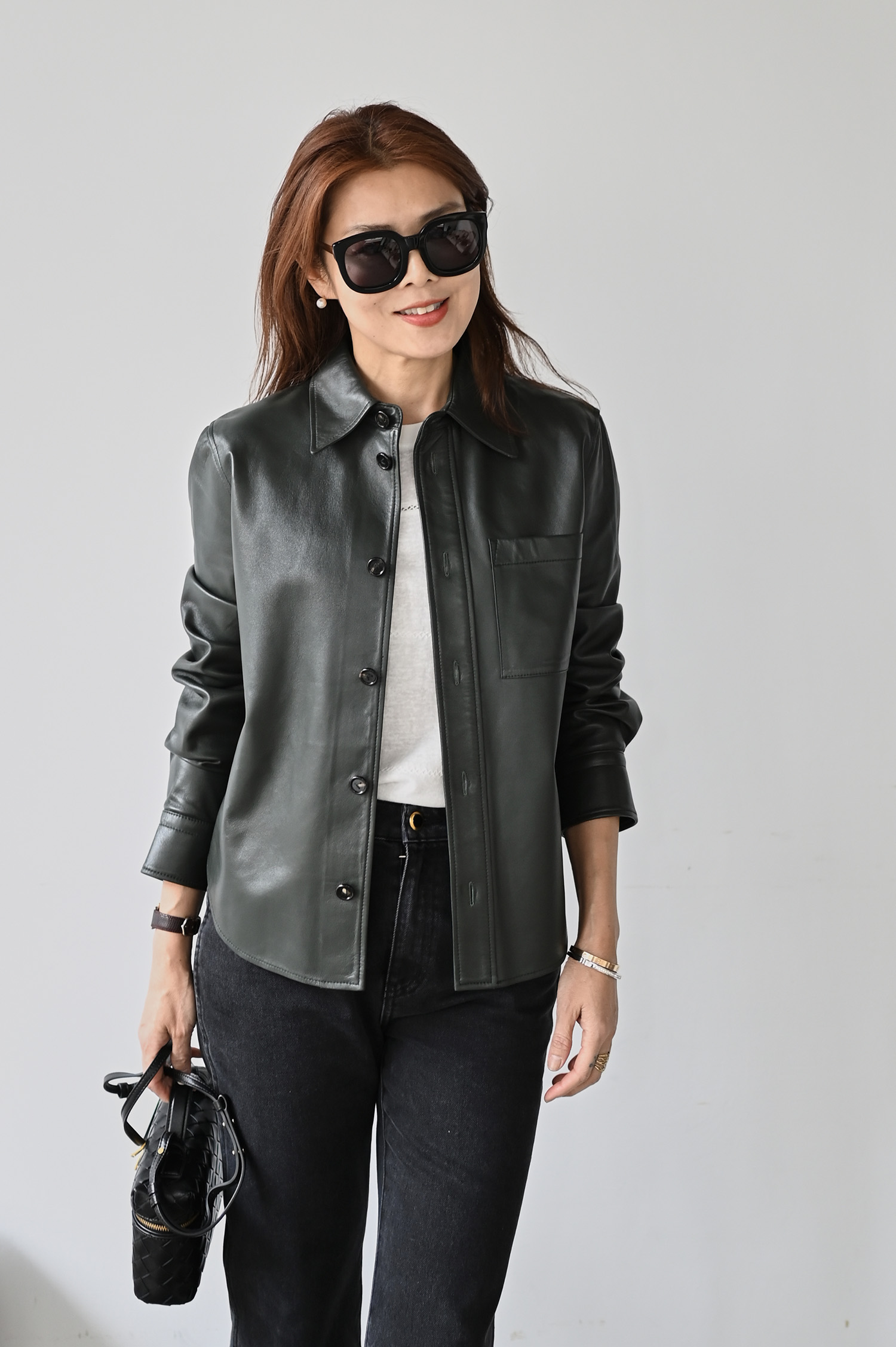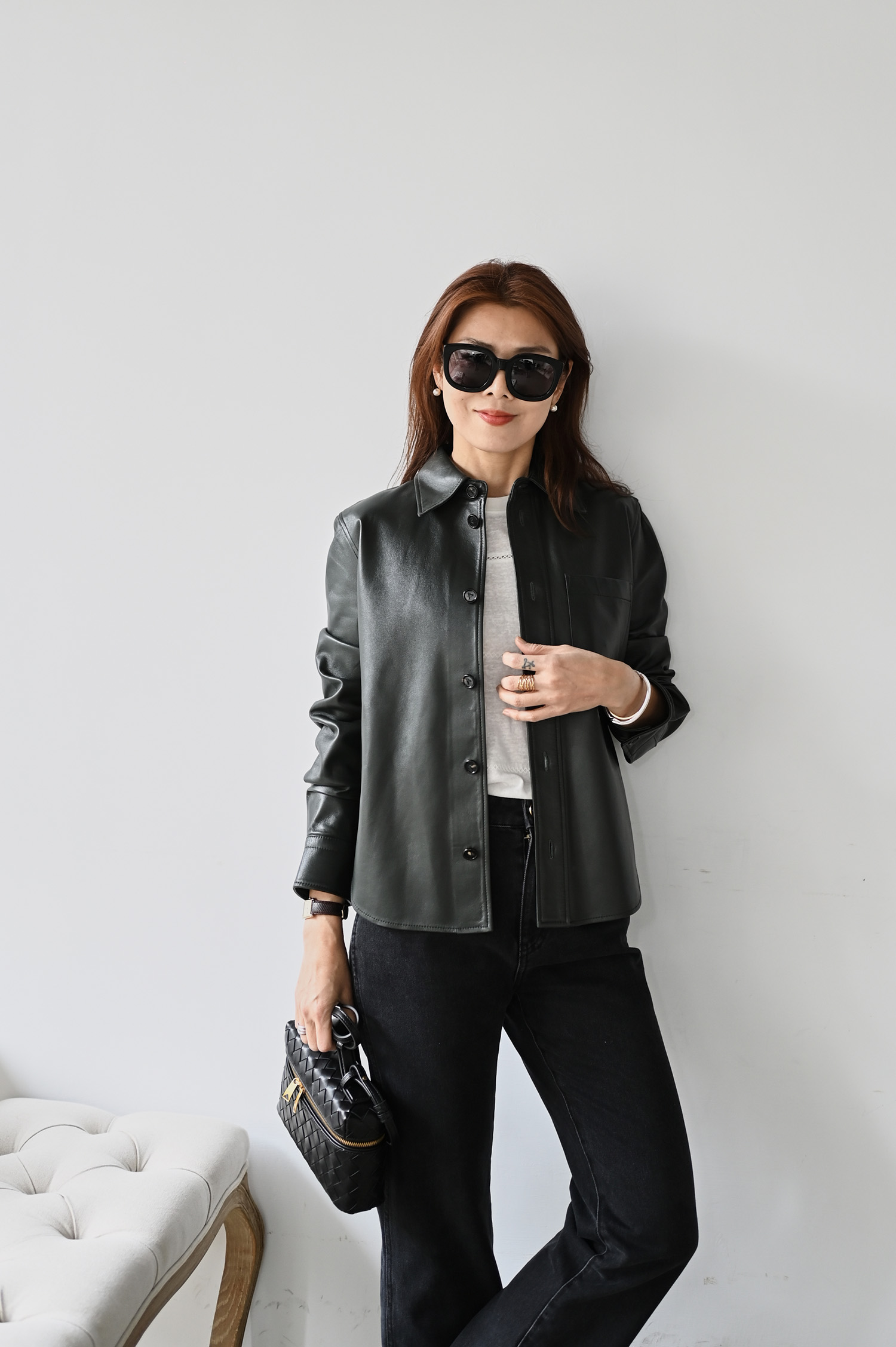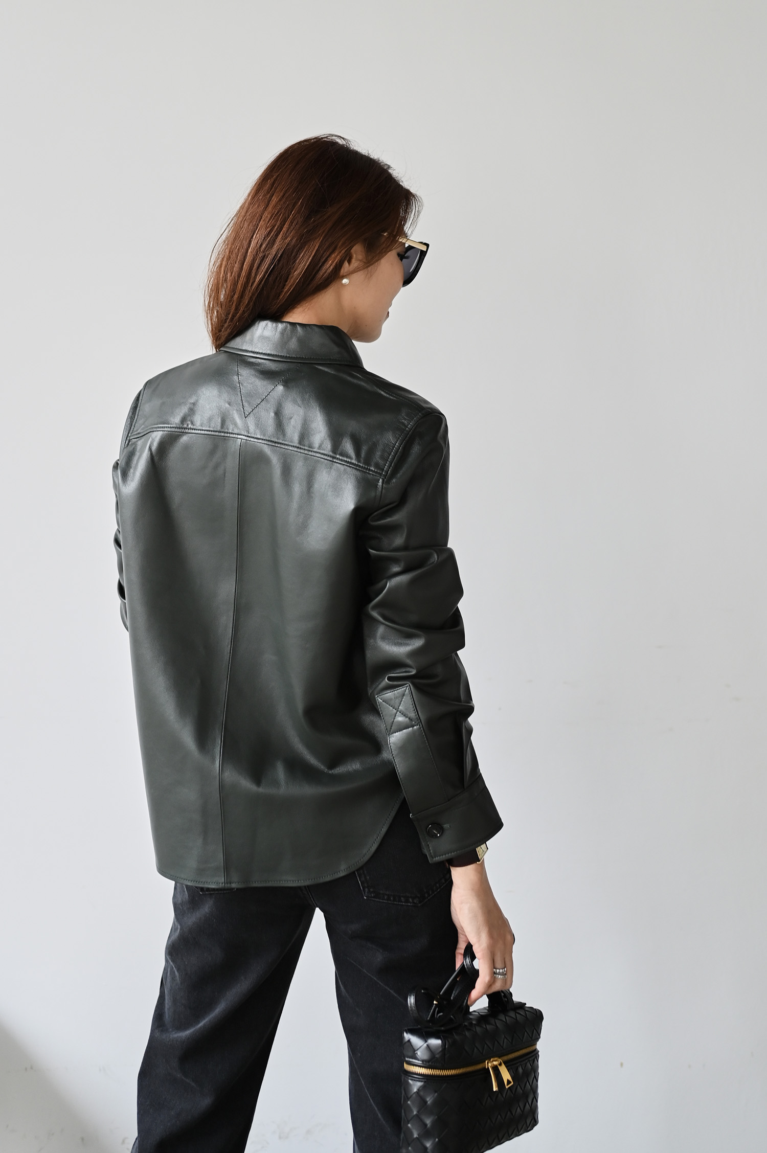 ・選用100% 真皮材質,手感柔韌卻保有挺度,不易軟塌能自然修飾身形線條,沉穩的墨綠色調散發內斂質感