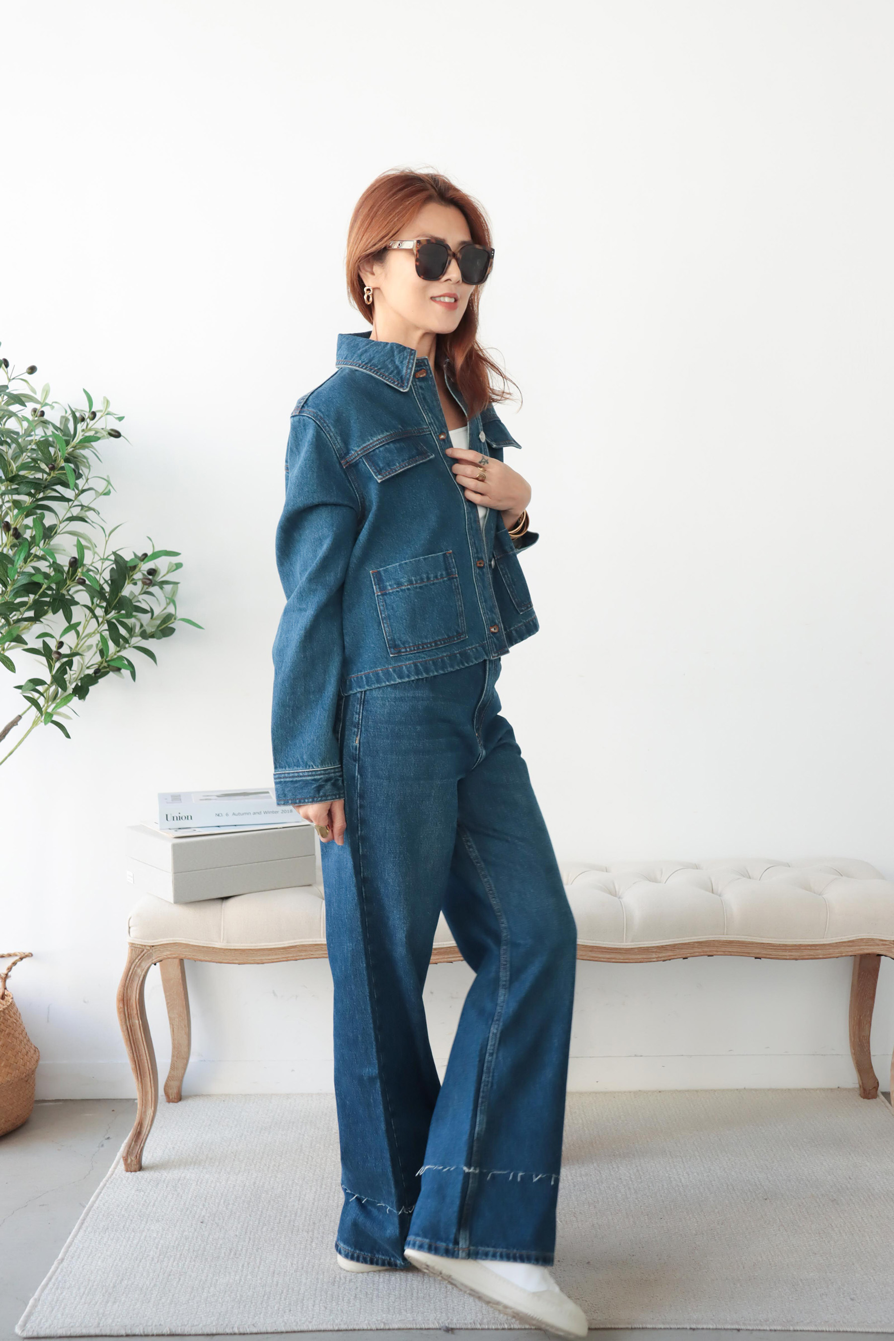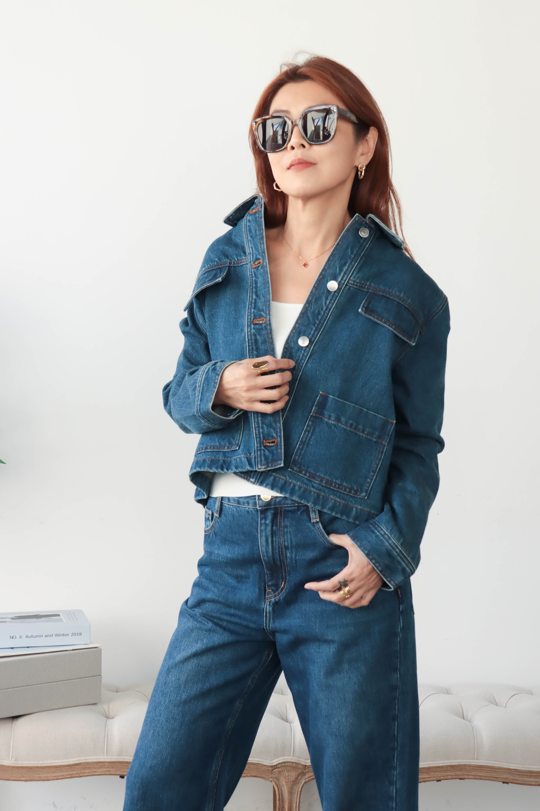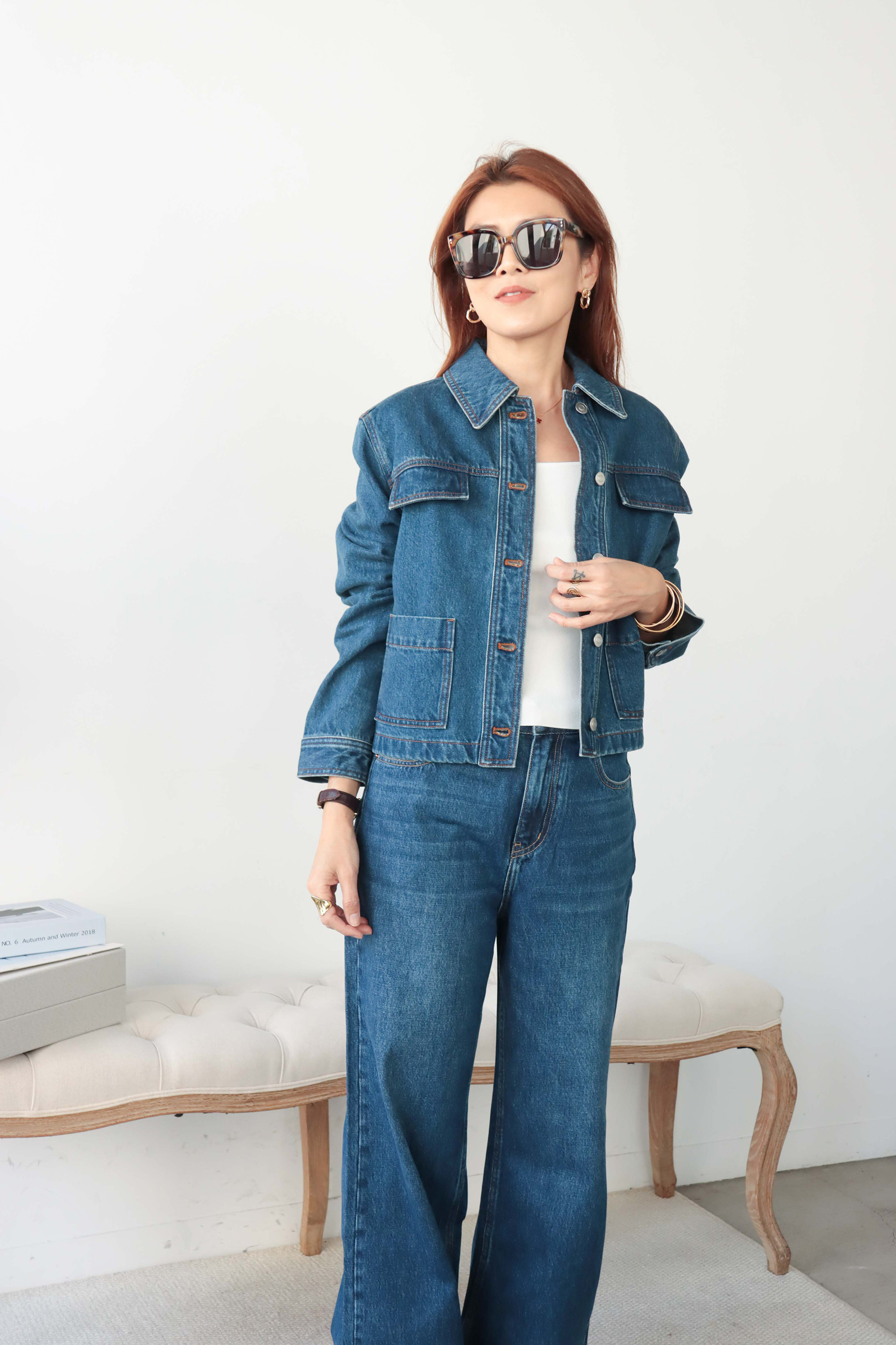 ・柔軟親膚的 100% 棉牛仔面料,穿著舒適自在,短版利落剪裁完美拉長身形比例,正面設計兩個翻蓋裝飾,增添經典牛仔層次與視覺細節,搭配兩個大貼袋,方便收納手機、錢包等日常小物,兼具實用性與設計感,搭配醒目的銀色釦子,細節中流露經典牛仔魅力。