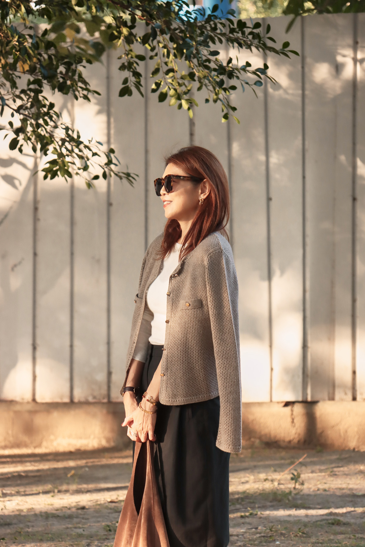 ・圓領剪裁修飾頸部線條、下擺圓弧造型優雅柔和,凸顯女性俐落氣質