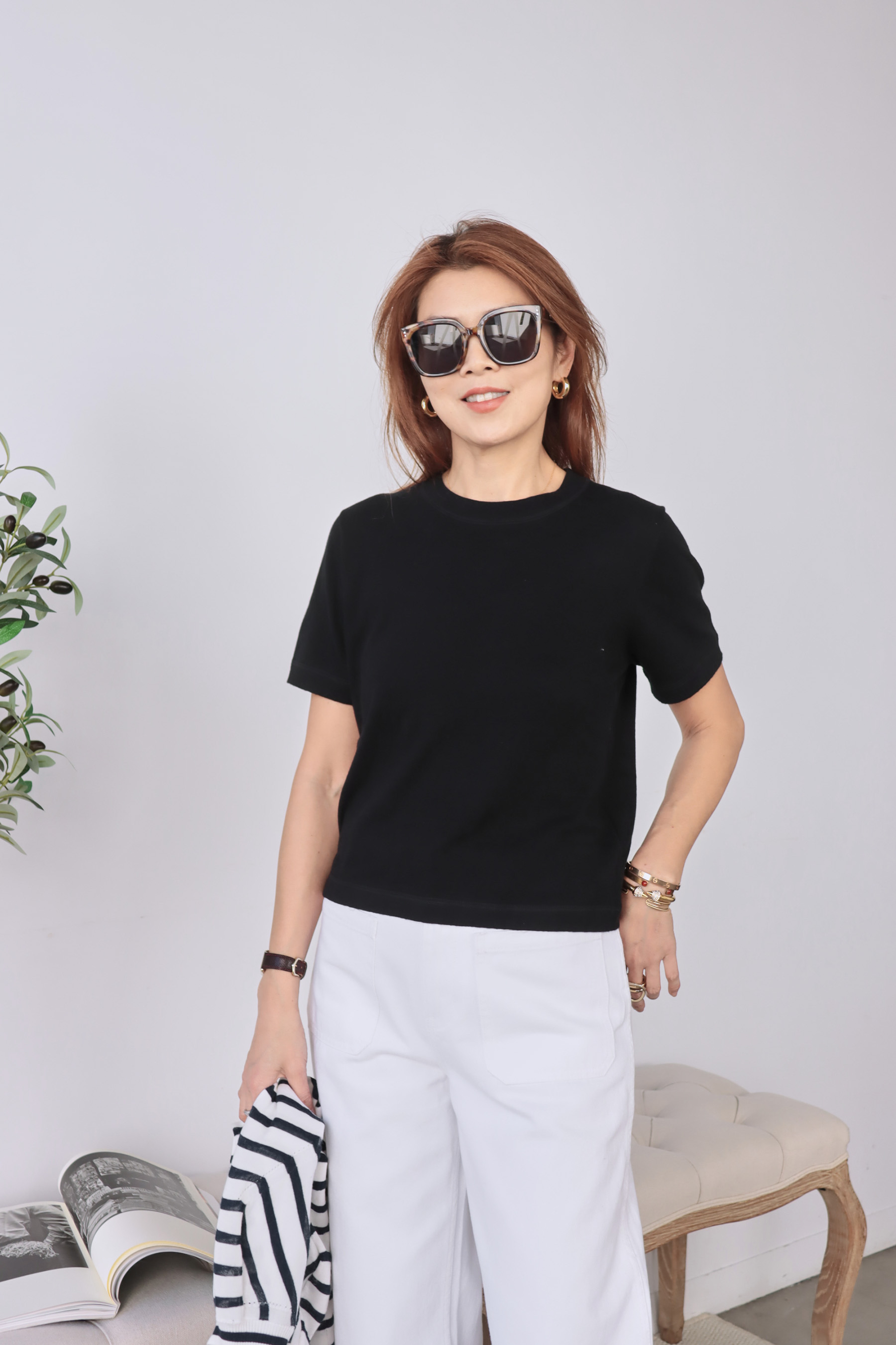 ・面料兼具棉的柔軟透氣與羊絨的細膩觸感,手感輕柔滑順、穿著舒適親膚。肩膀縫線處加入細緻的編織紋理設計,低調增添層次與工藝感,順身版型自然貼合身形,不緊繃也不過於寬鬆,以簡約設計呈現細緻質感。