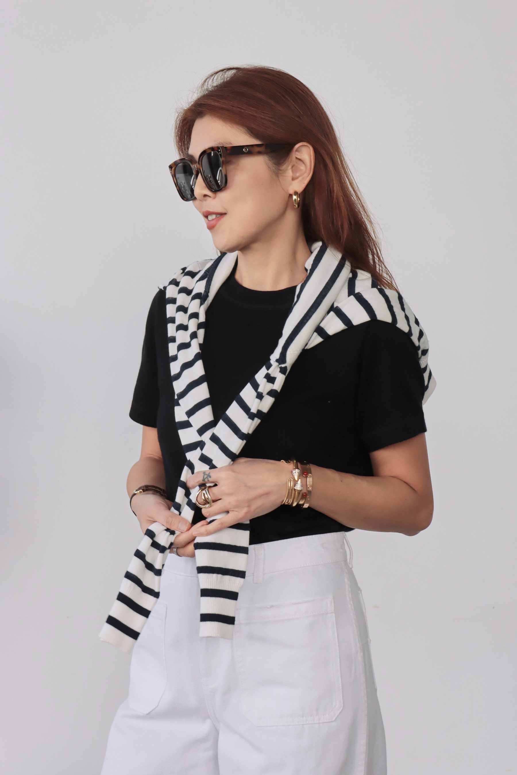 ・上衣-海軍藍白條紋長袖上衣