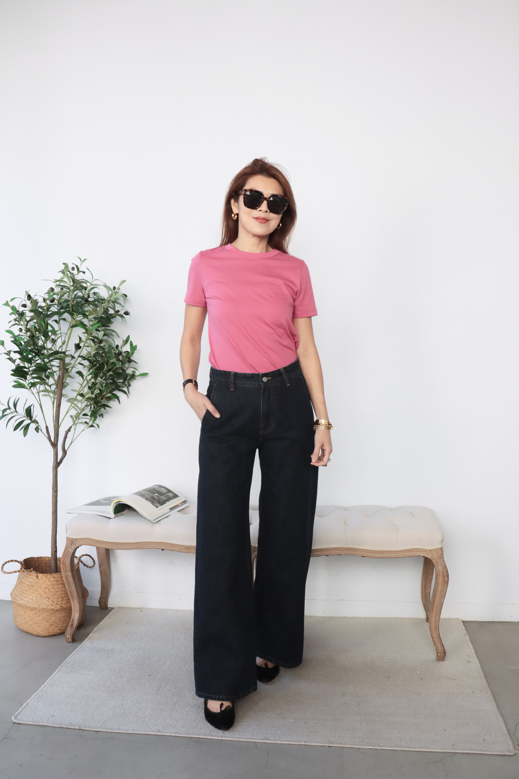 ・下身-闊腿牛仔寬褲