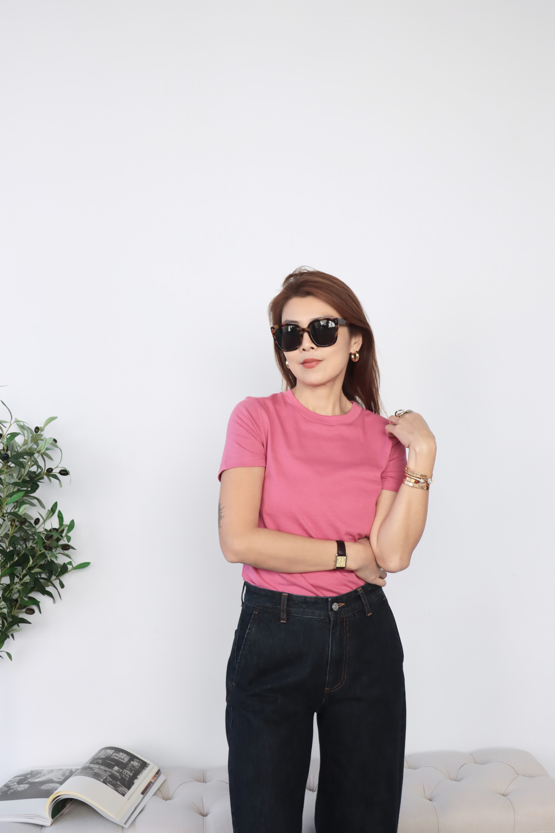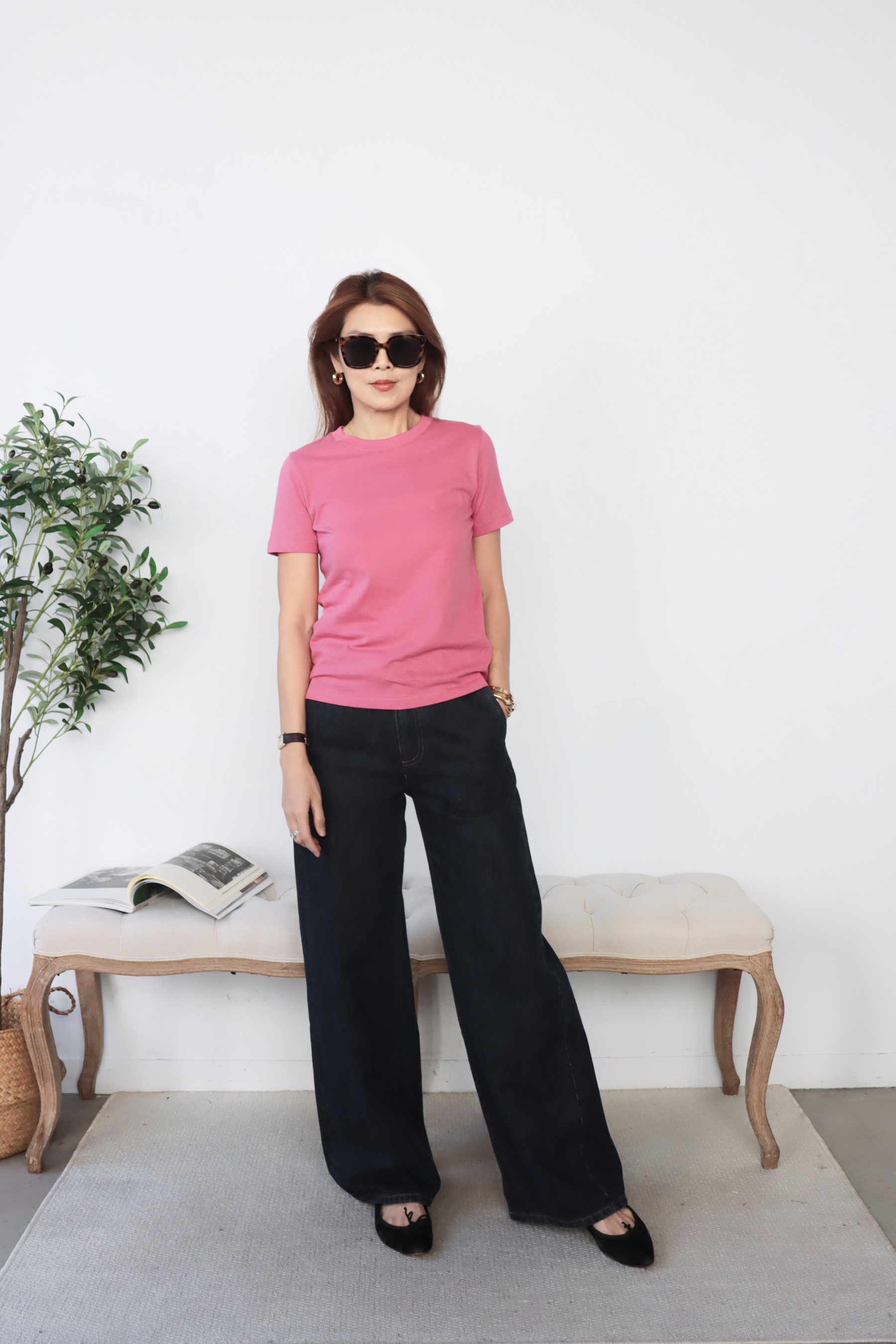 ・選用100% 純棉面料,質地柔軟親膚透氣舒適,帶來自然輕盈的穿著感受,適合長時間穿著。簡約圓領與短袖設計展現低調俐落的線條,順身剪裁不貼身、不束縛,在保有輪廓感的同時也維持自在的活動空間。