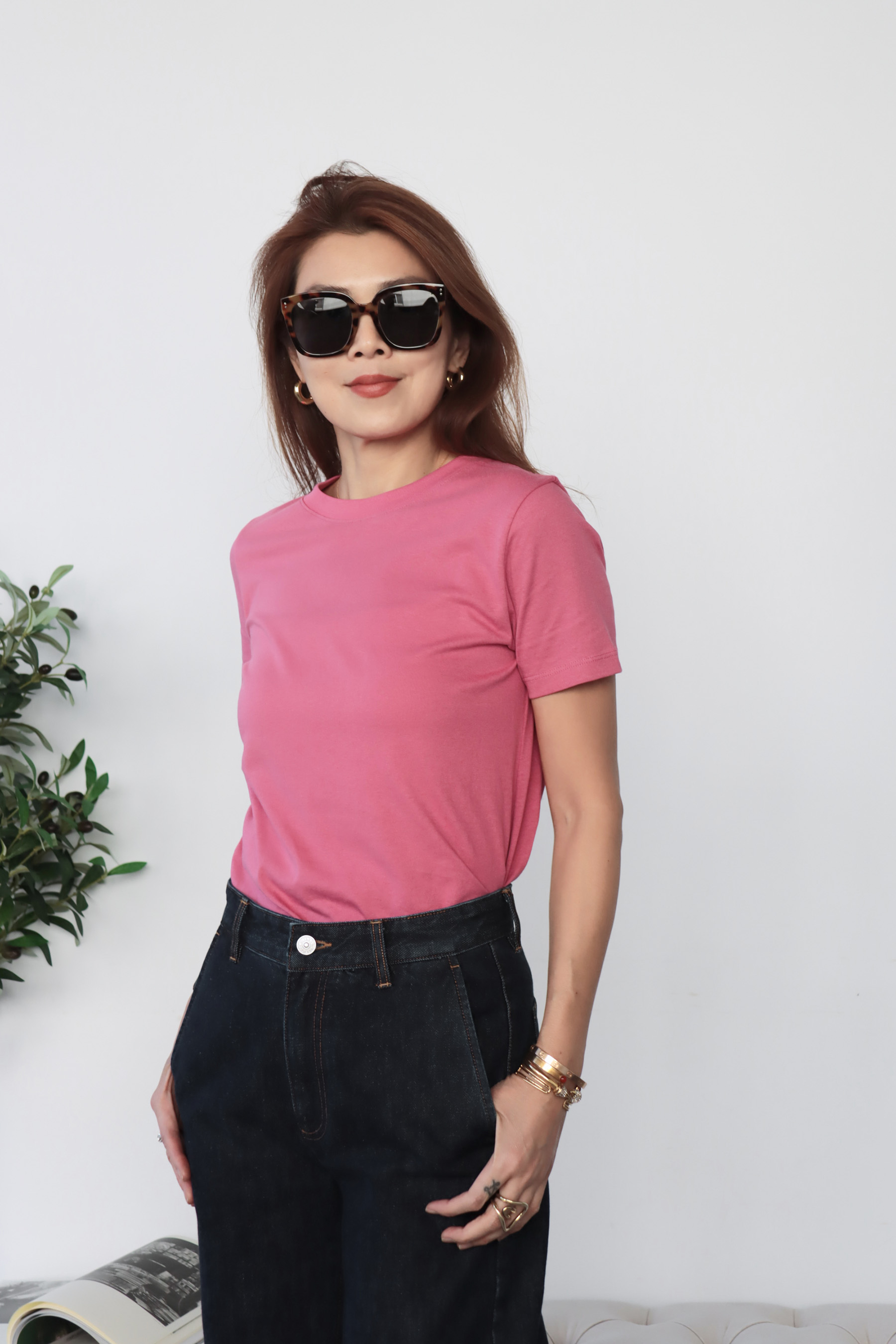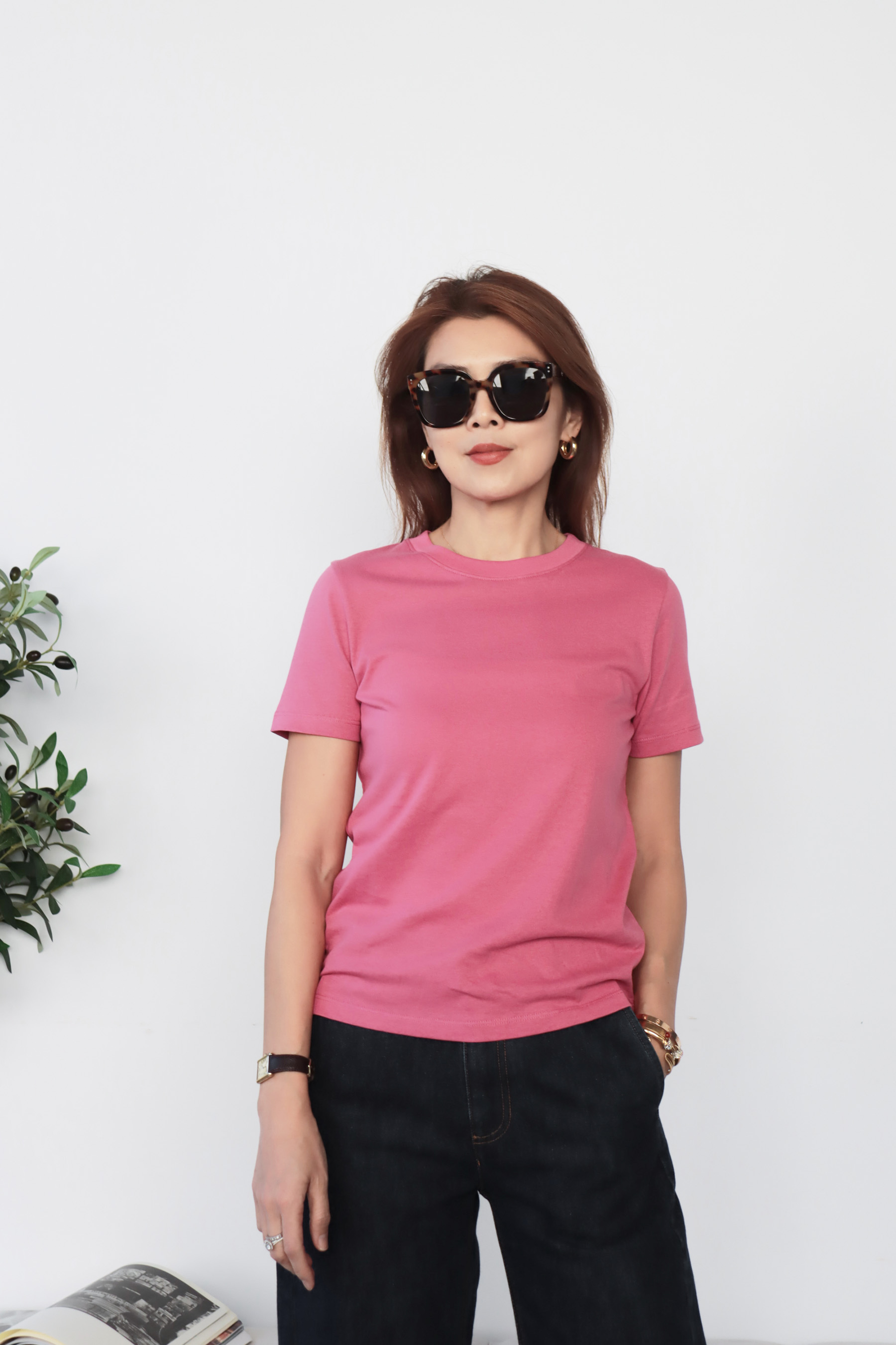 【搶先價】輕柔玫紅純棉圓領短袖上衣 01020168