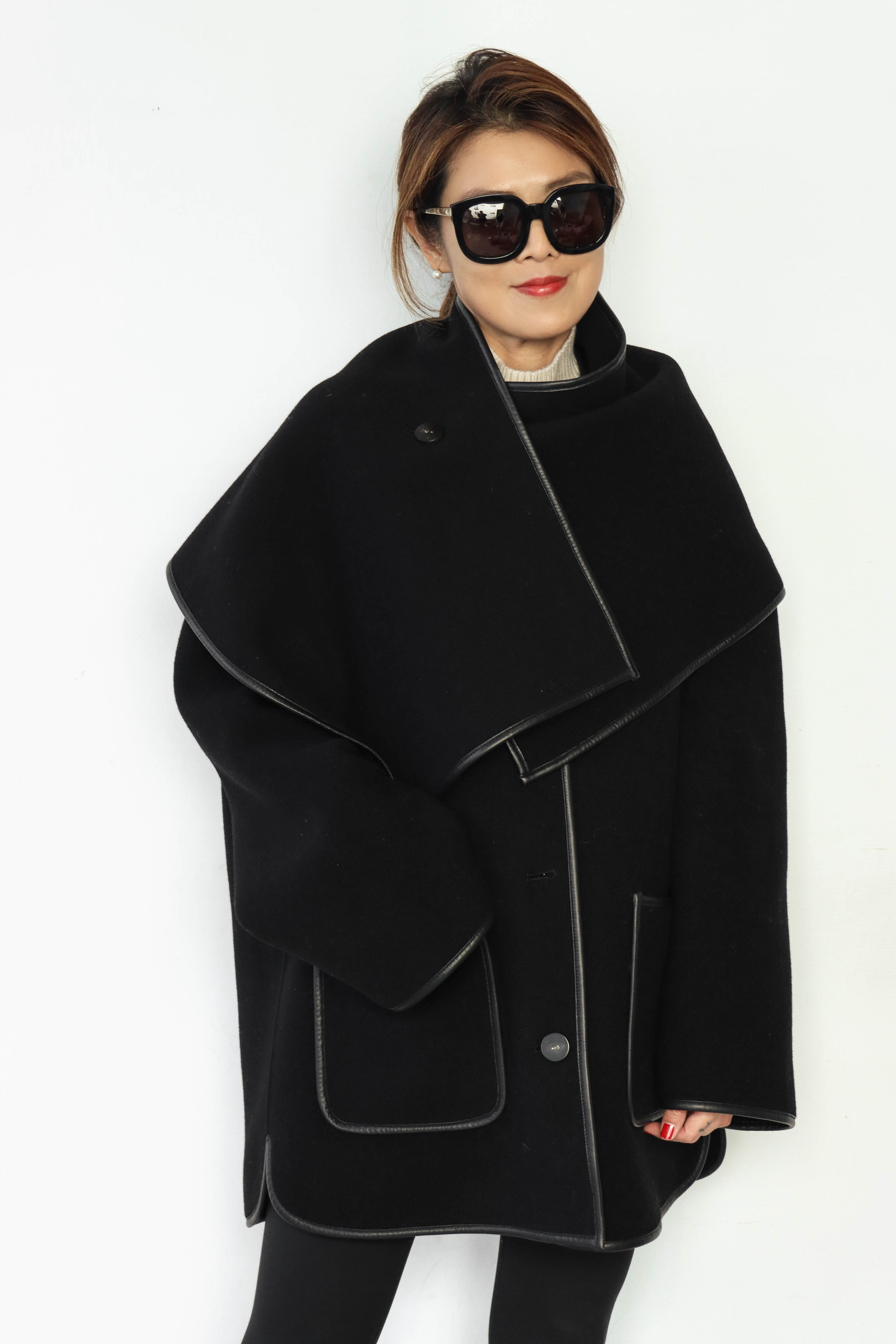 Story 黑色大衣披肩外套