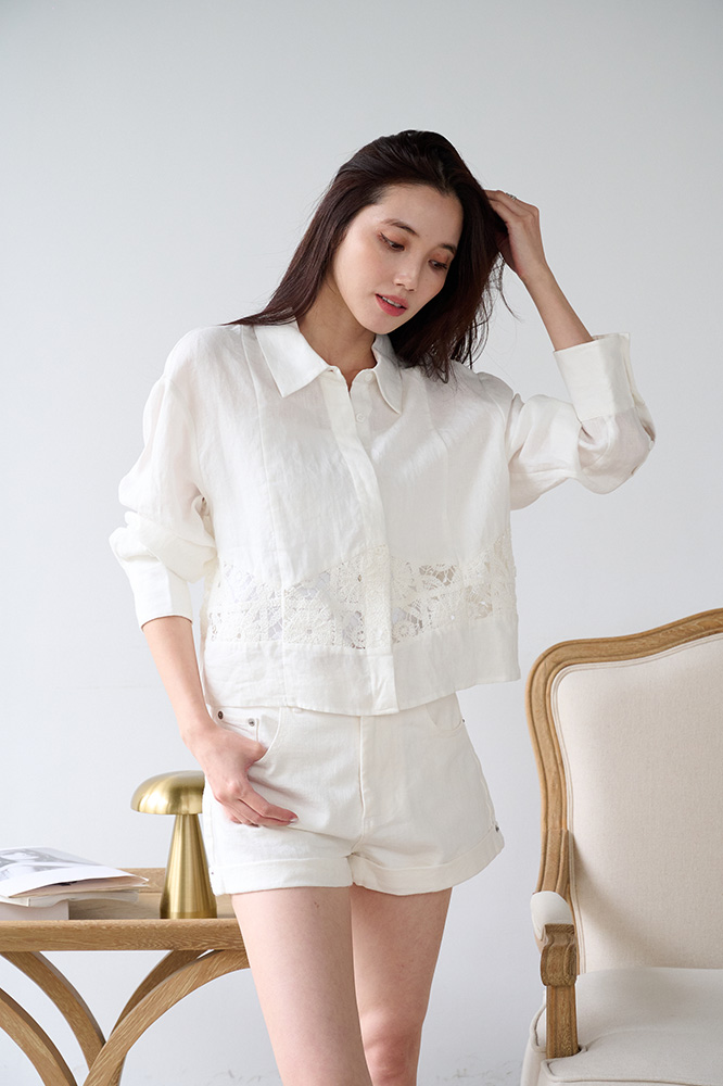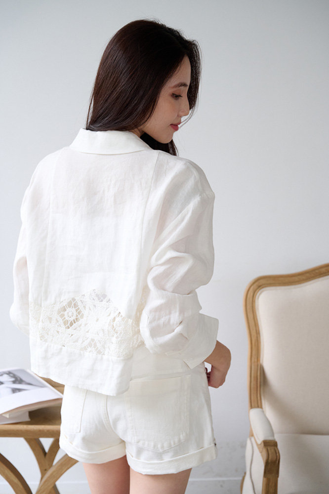 ・胸前與袖口細緻蕾絲工藝,營造整體高級浪漫效果