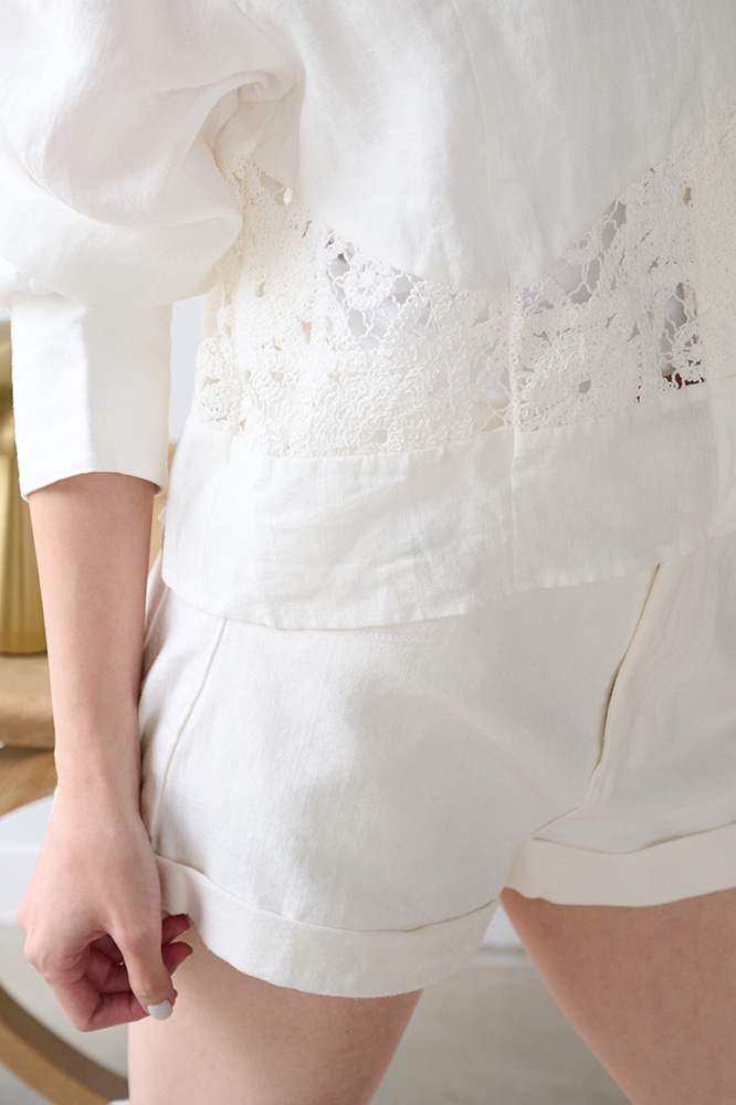 ・布料具有天然亞麻感肌理,透氣不悶熱