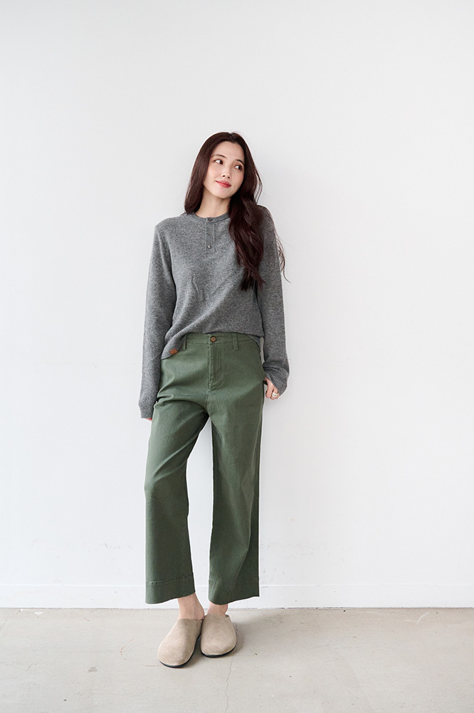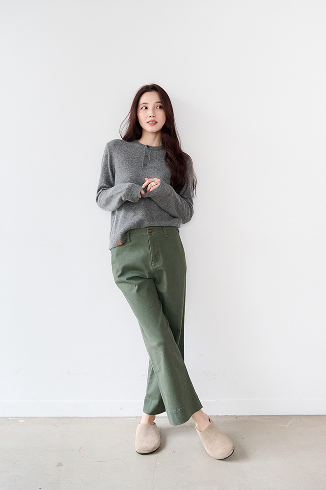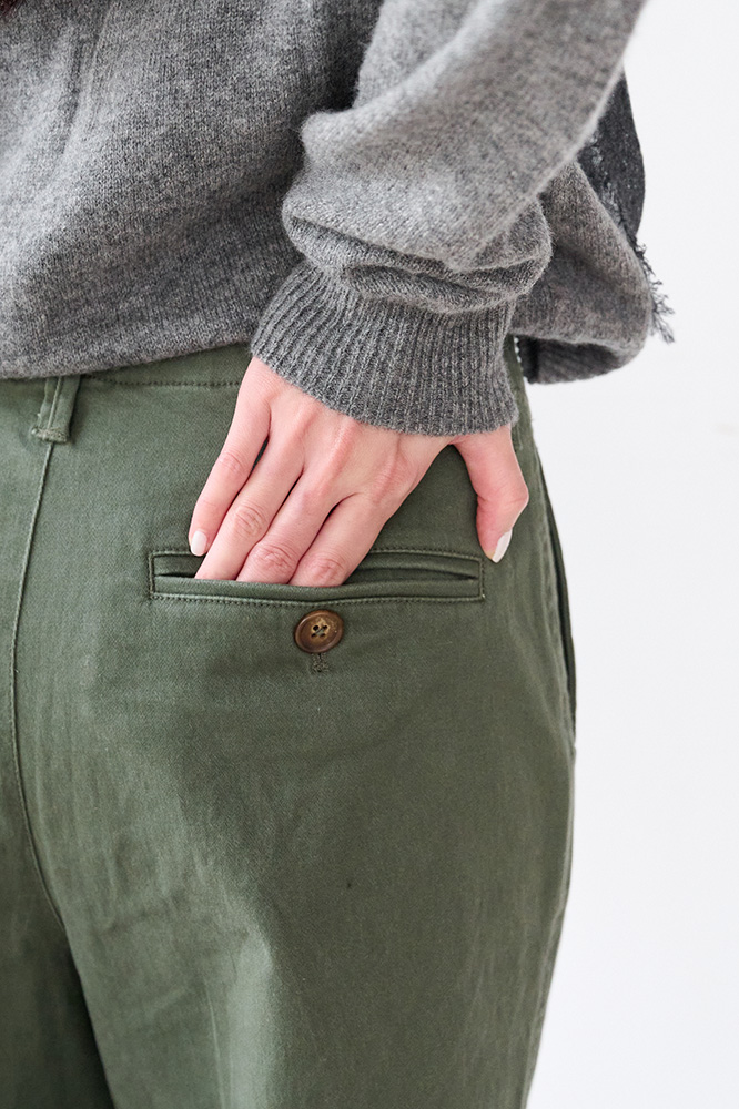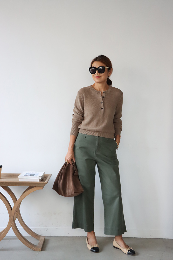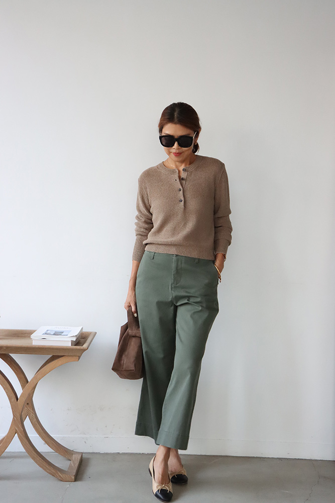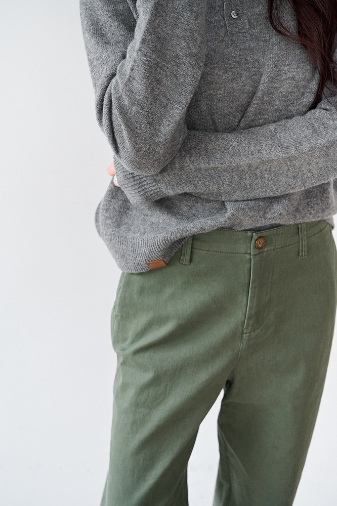 ・琥珀釦與褲管縫線設計,提升整體層次與細節