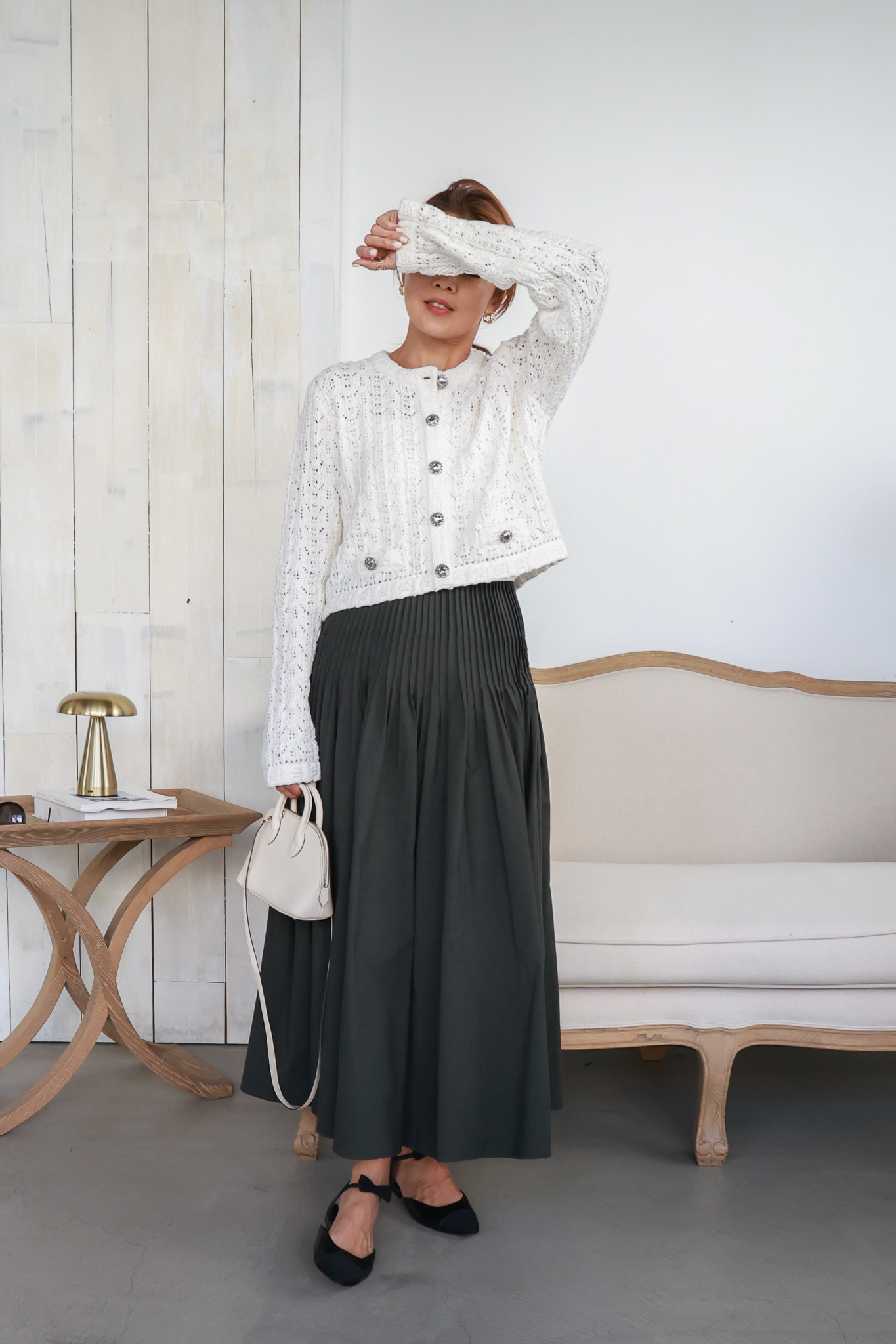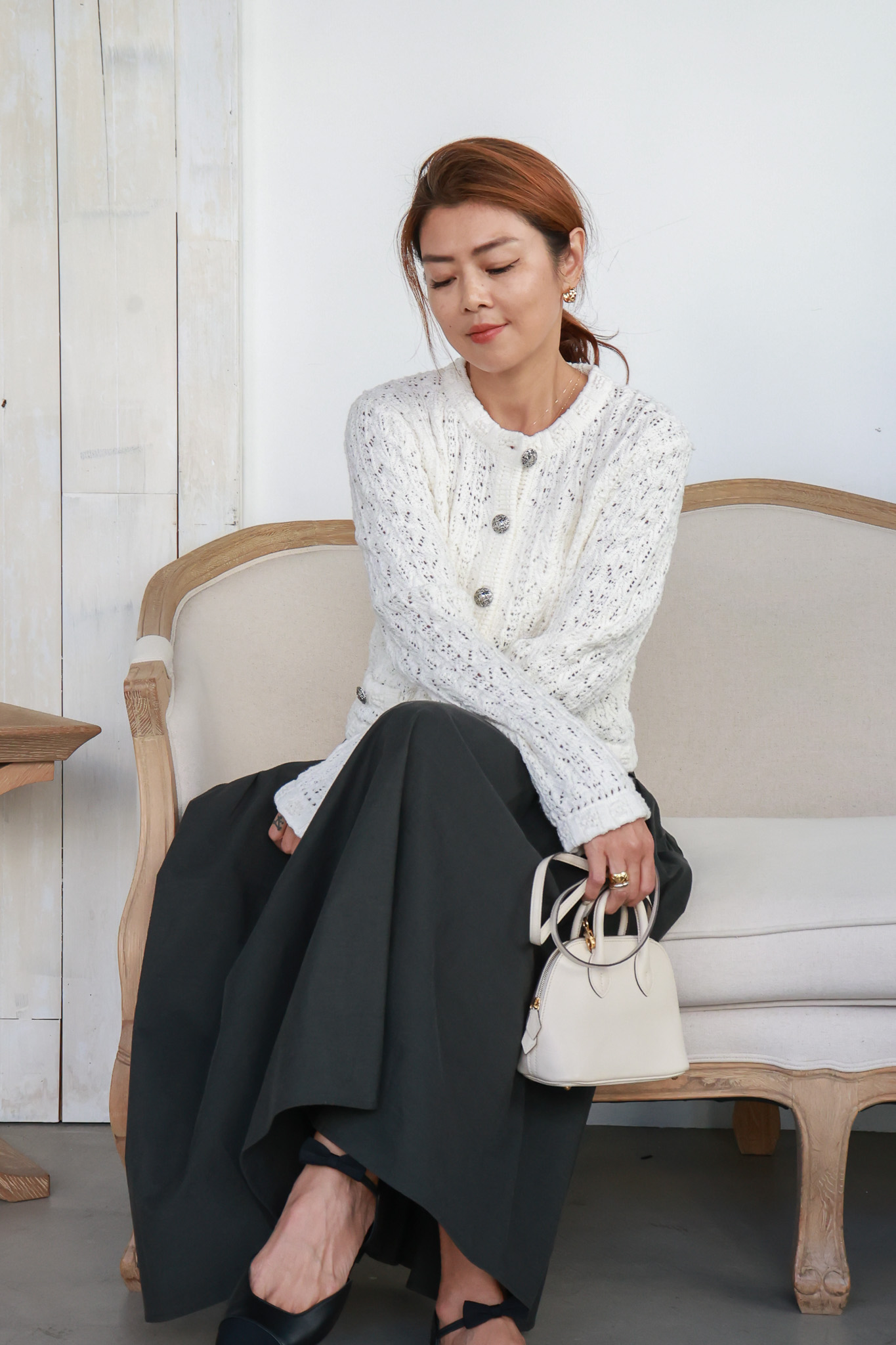 ・粗針織勾花結合金屬鈕釦設計,營造整體高級效果